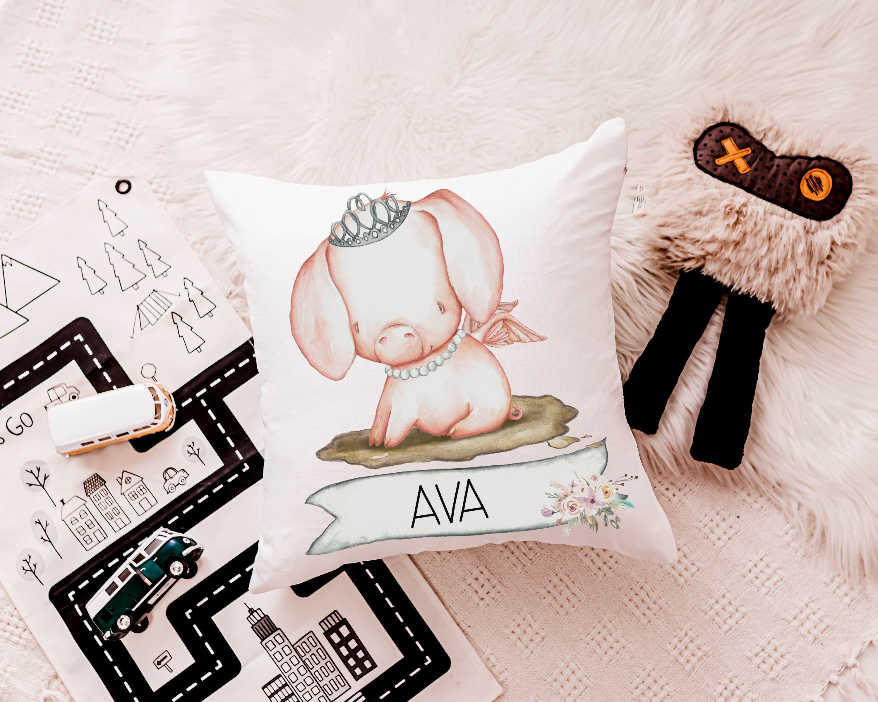 pig princess throw pillows personalized reading nook pillow covers 18 x 18, farm nursery decor girl, cute pig gifts for little girls, name