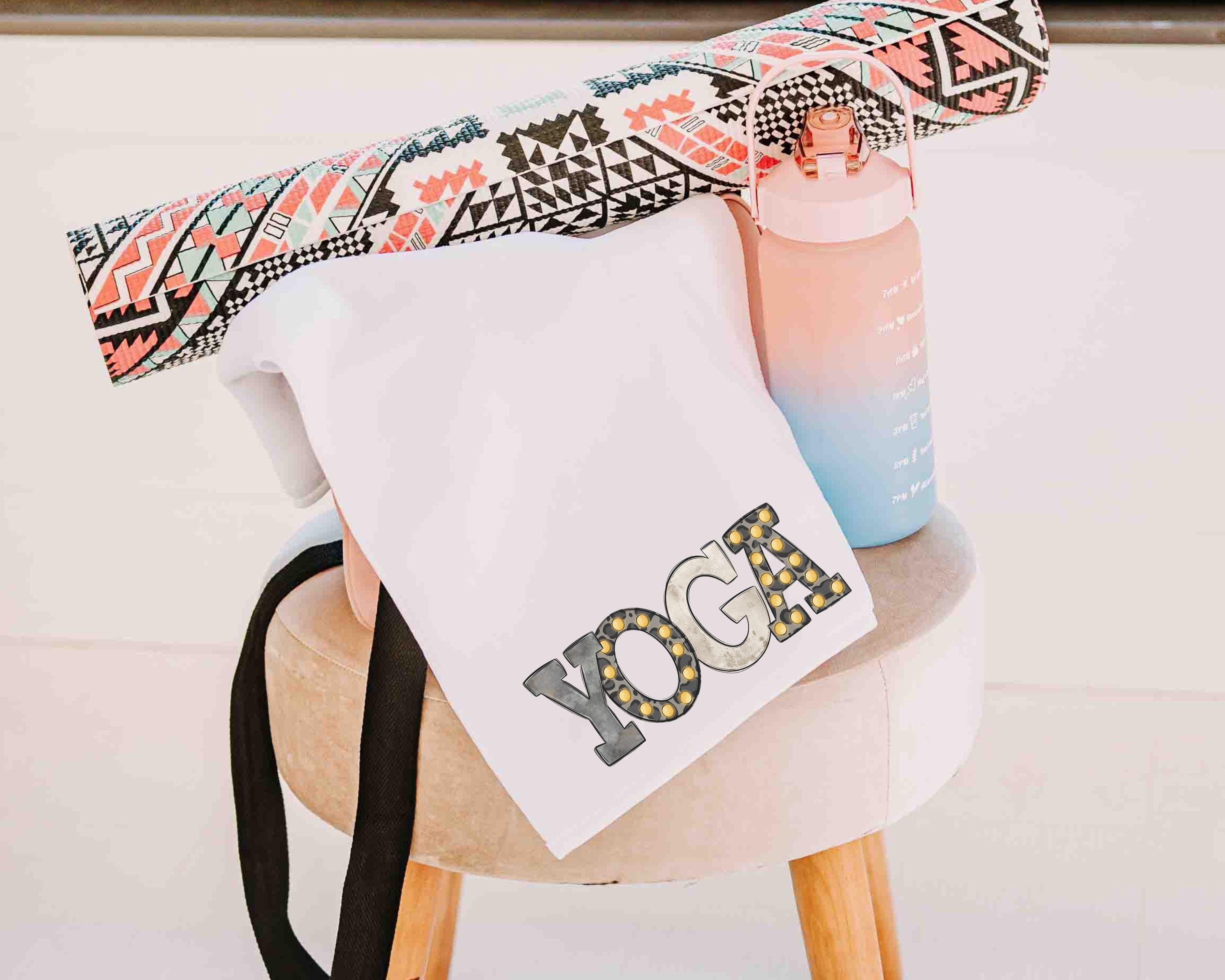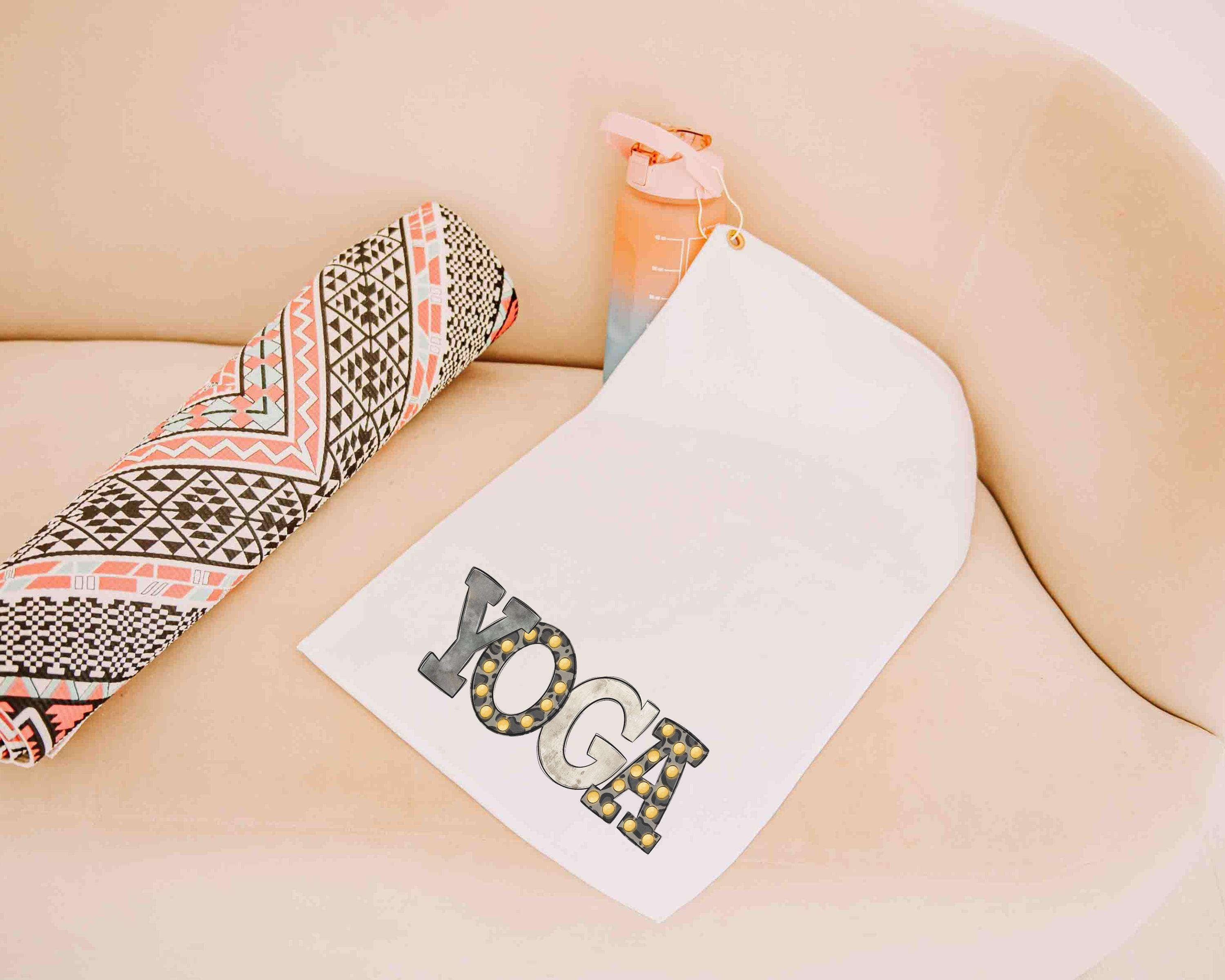 ashtanga yoga towel for hot yoga, cute yoga gifts for her, yogi girl yoga sweat towel with grommet, vinyasa yoga teacher gifts for women