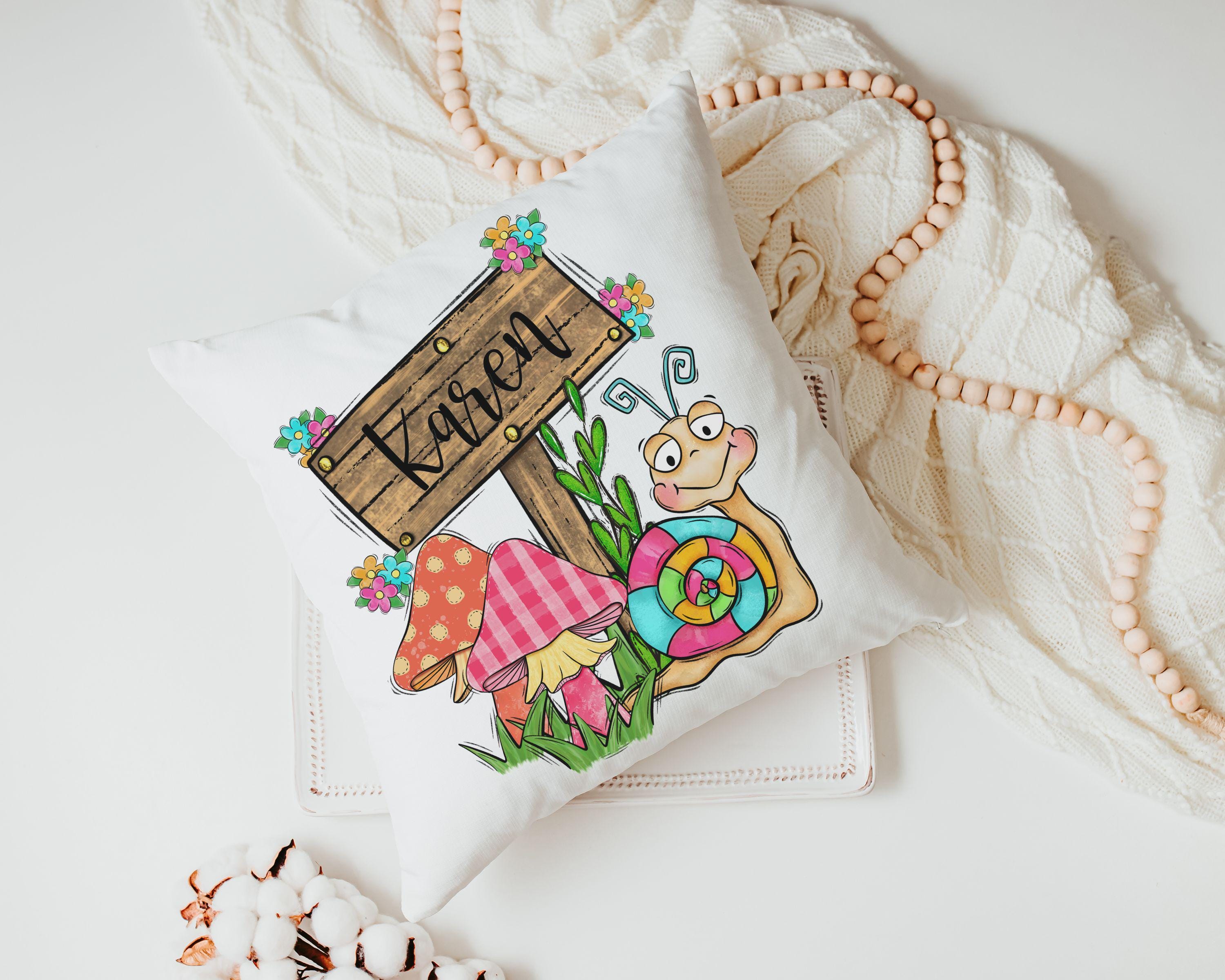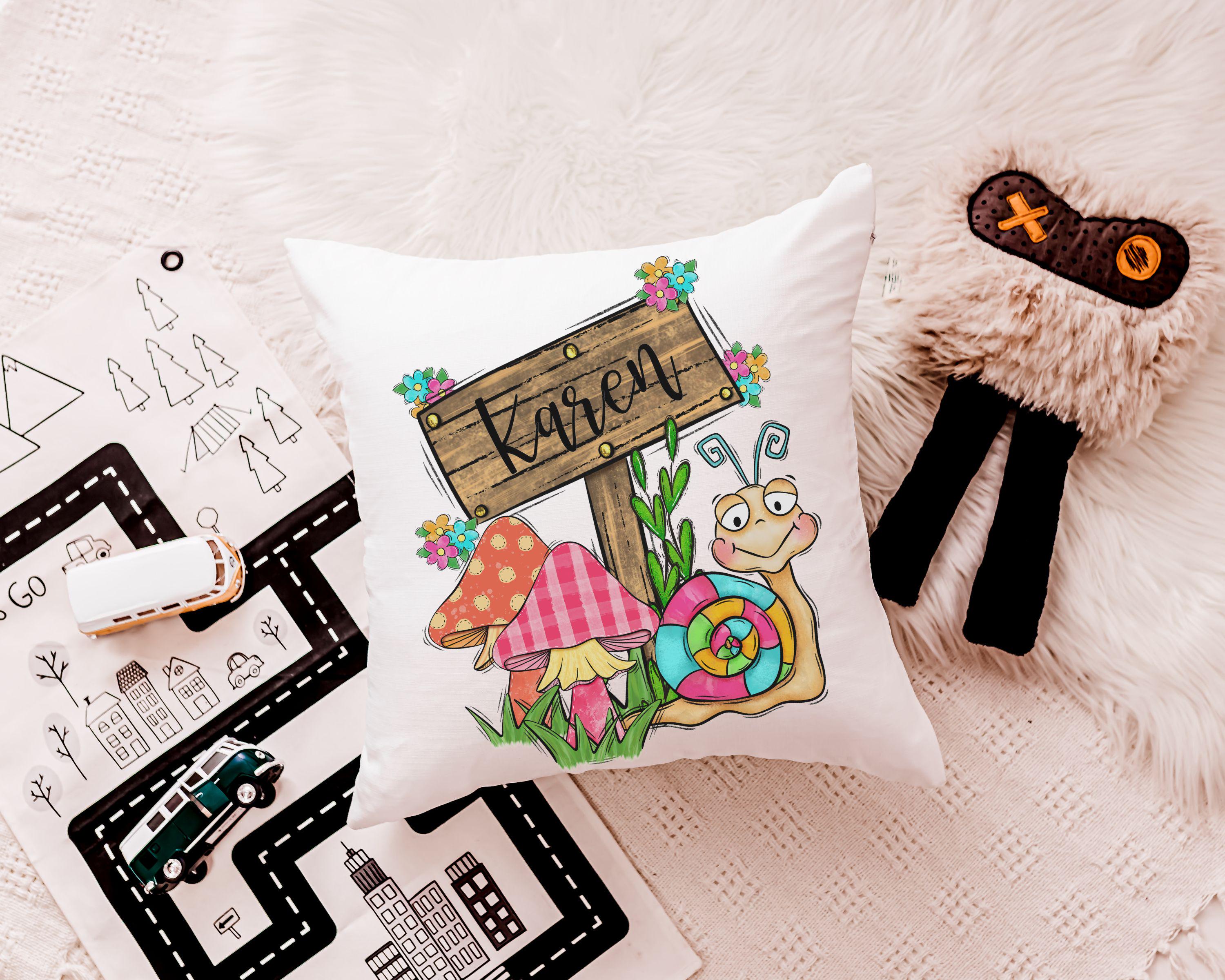 personalized whimsical mushroom nursery throw pillows for reading nook, snail decor kids room decor, Spring decor for home, cute mushroom