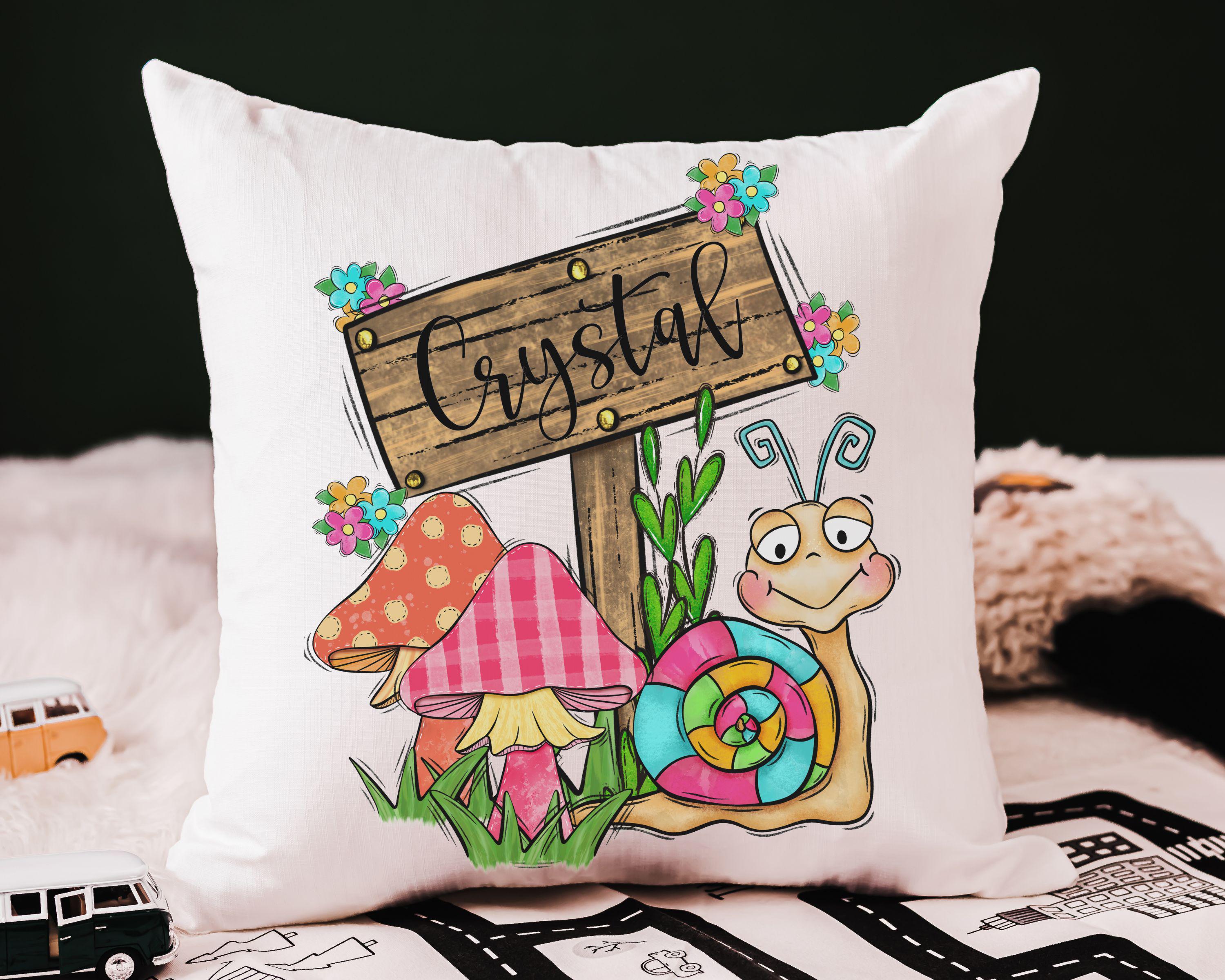 Add an adorable touch to any space with this personalized mushroom throw pillow—perfect for a woodland nursery, cozy reading nook, or kids’ room. Featuring a sweet mushroom and snail design, it makes a thoughtful gift for little girls or a charming accent for mushroom-themed decor.