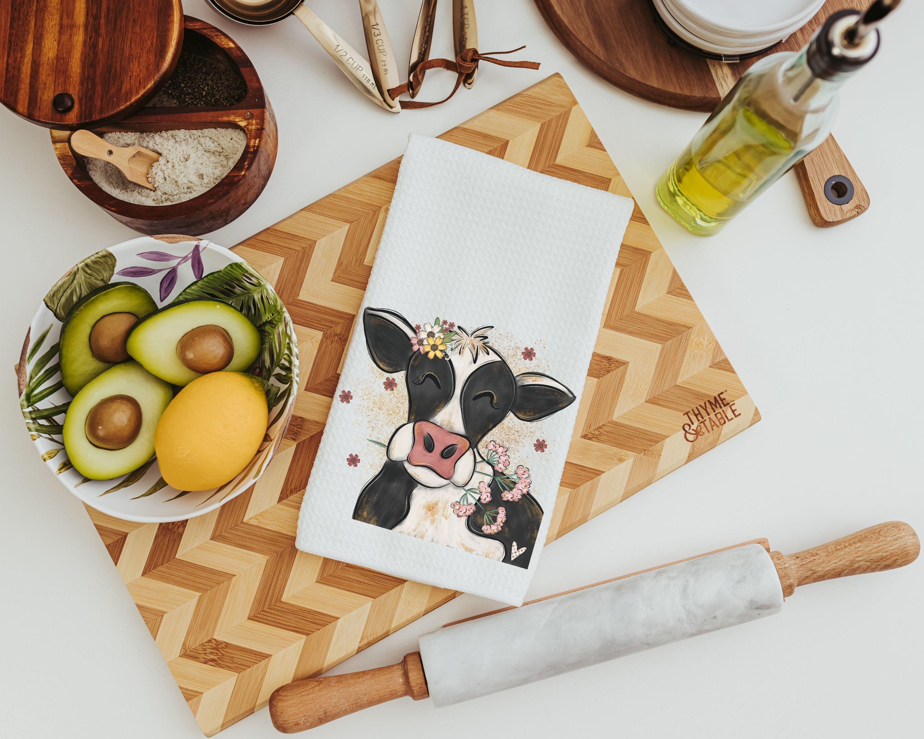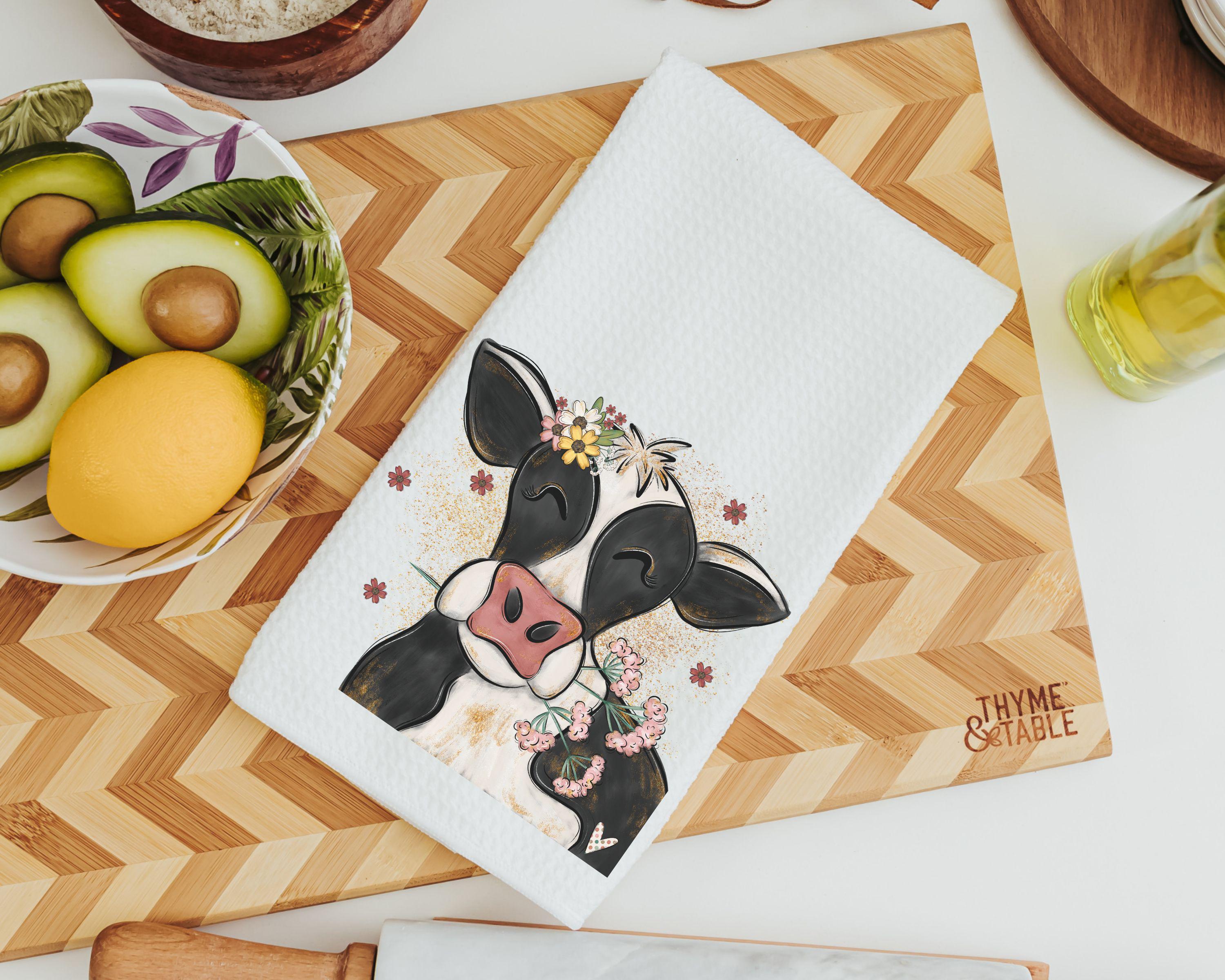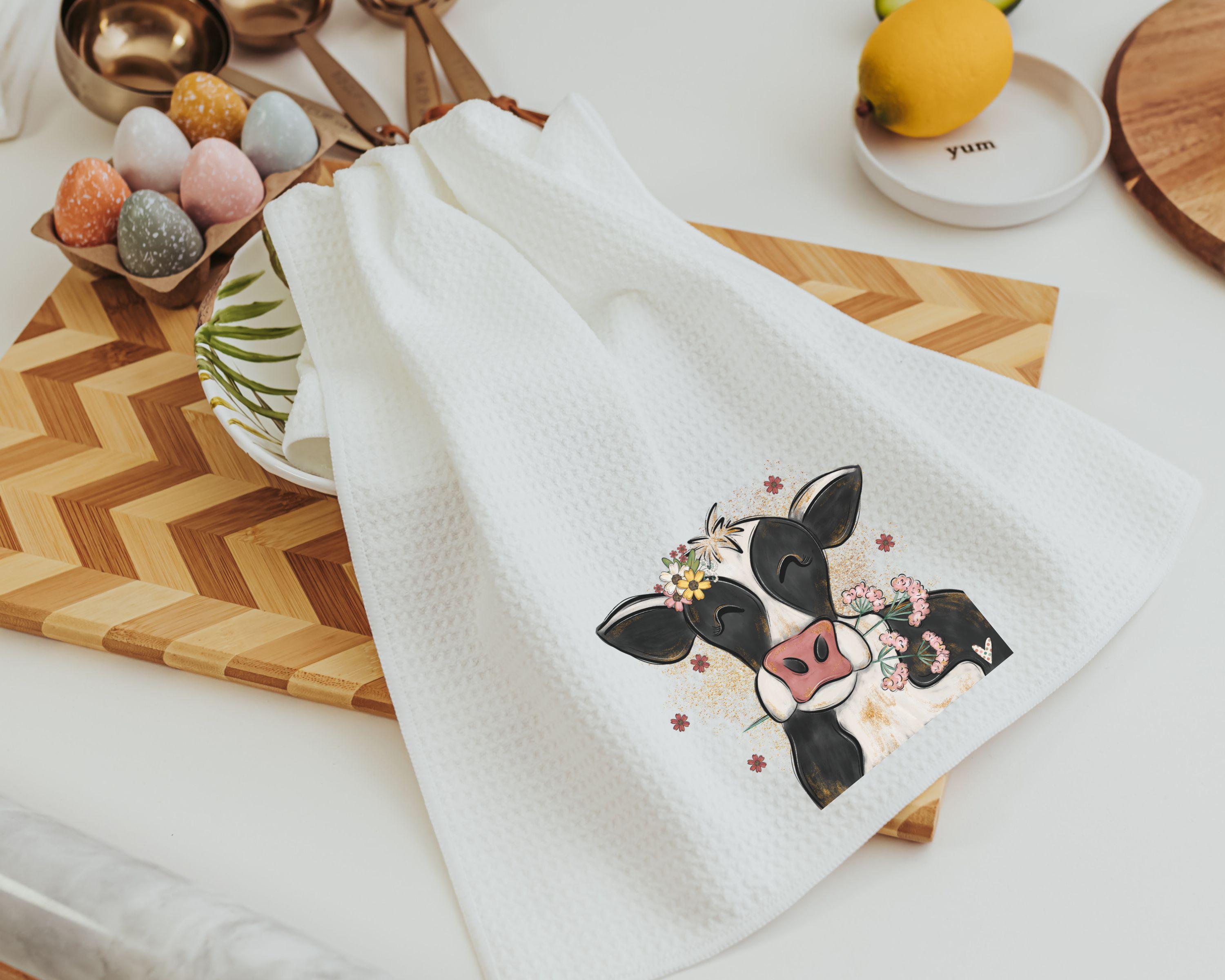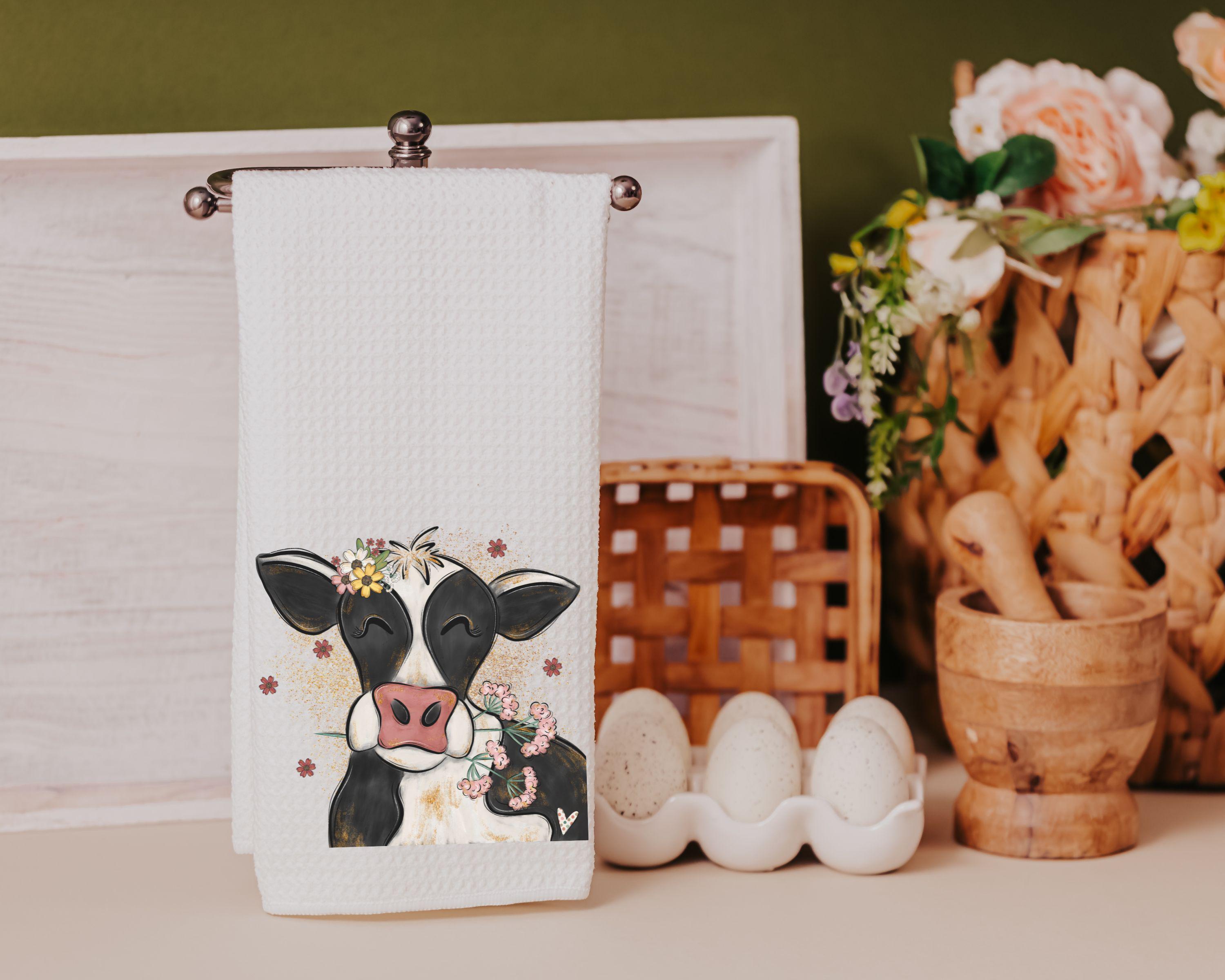 Decorate your home with floral cow towels, perfect for the bathroom or farmhouse kitchen. This cute cow makes great spring kitchen gifts for a friend, thoughtful cow gifts for a daughter, or the best gifts for anyone who loves farmhouse charm.