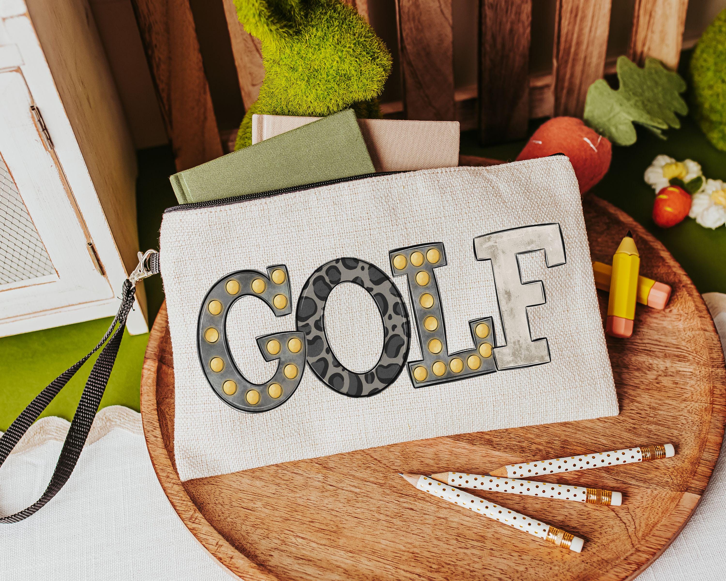 Add some style to your game with our black leopard print & marquee letters golf bag accessory holder or makeup bag. Great for carrying essentials on or off the course, these make cute golf mom gifts, fun bachelorette surprises, or thoughtful Mother's Day gifts for golfers.