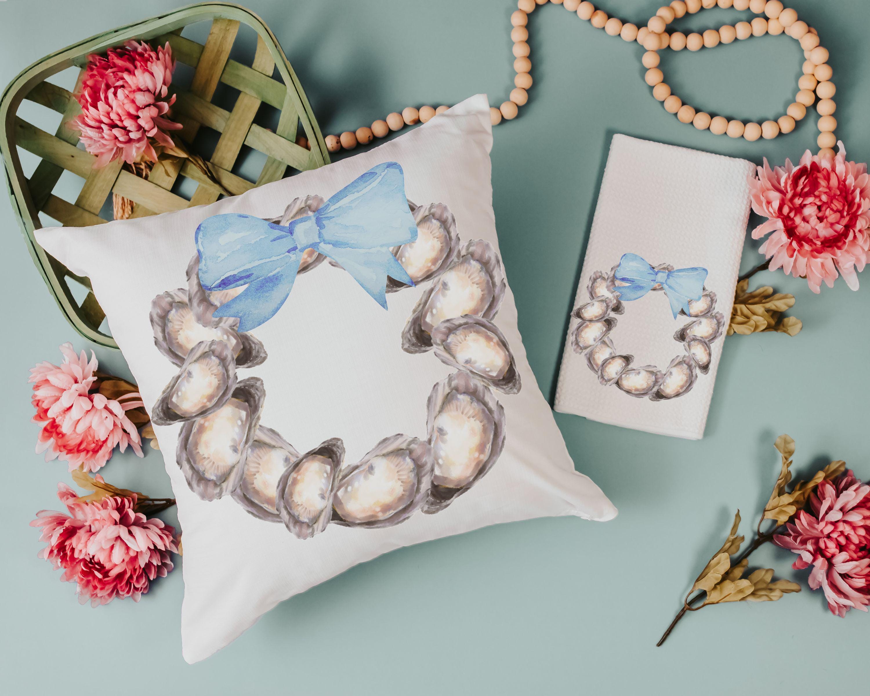 Give your space a fresh coastal feel with our beach coquette hand towels and matching throw pillows. Featuring soft oyster shell details, these pieces make thoughtful Cape Cod hostess gifts, coastal kitchen updates for Mom, or sweet housewarming gifts for beach lovers. Purchase individually or save with the set.