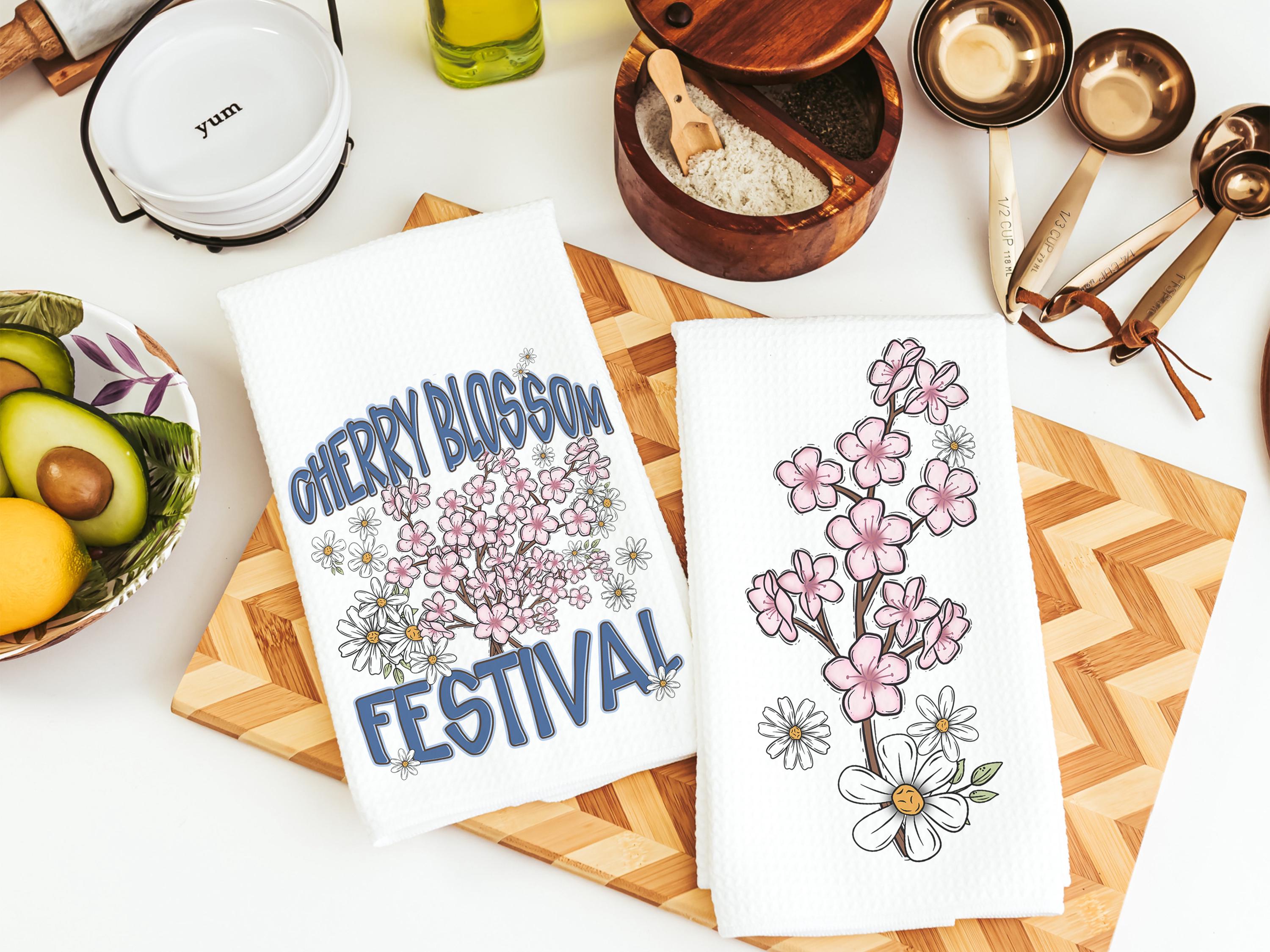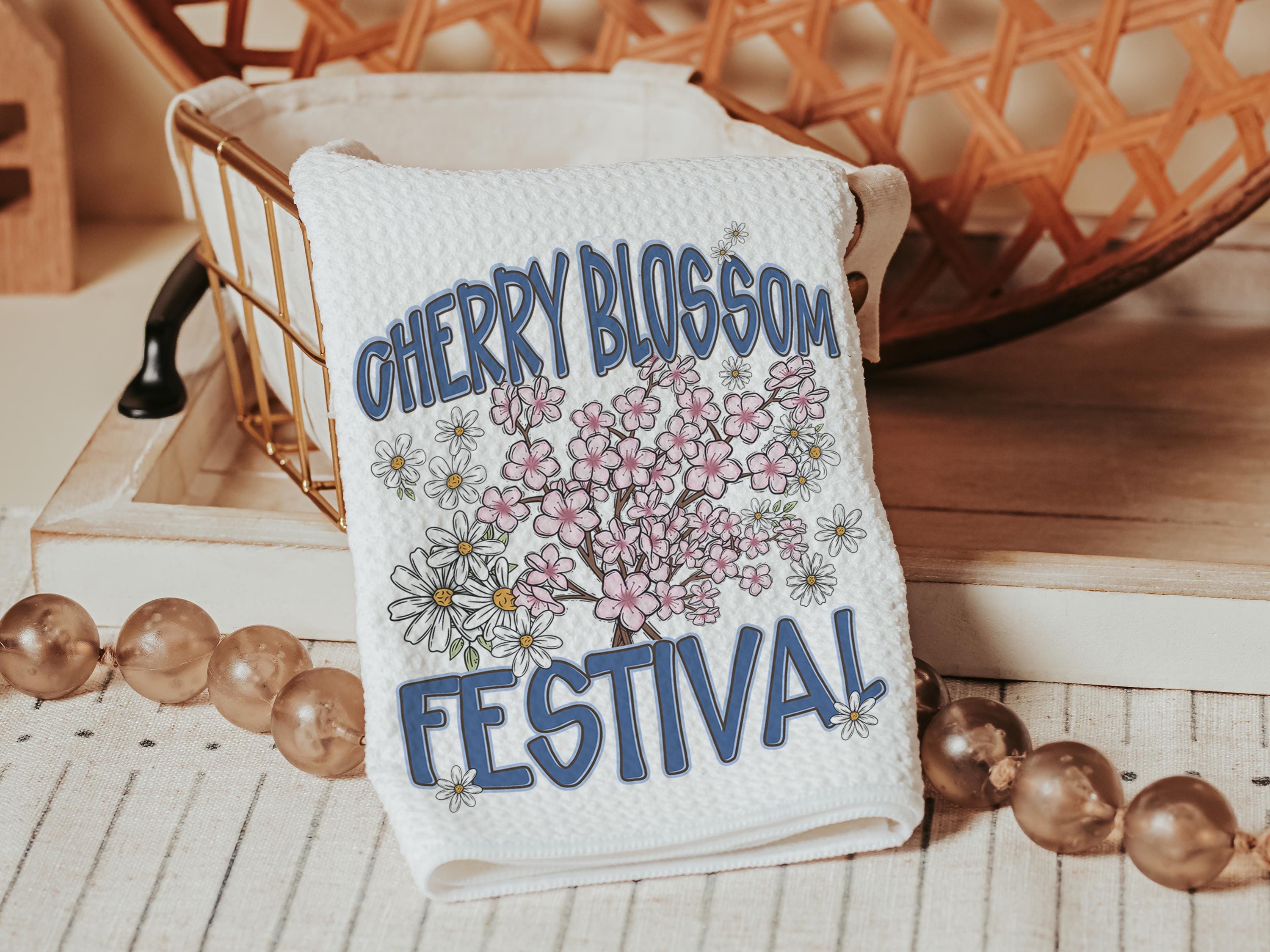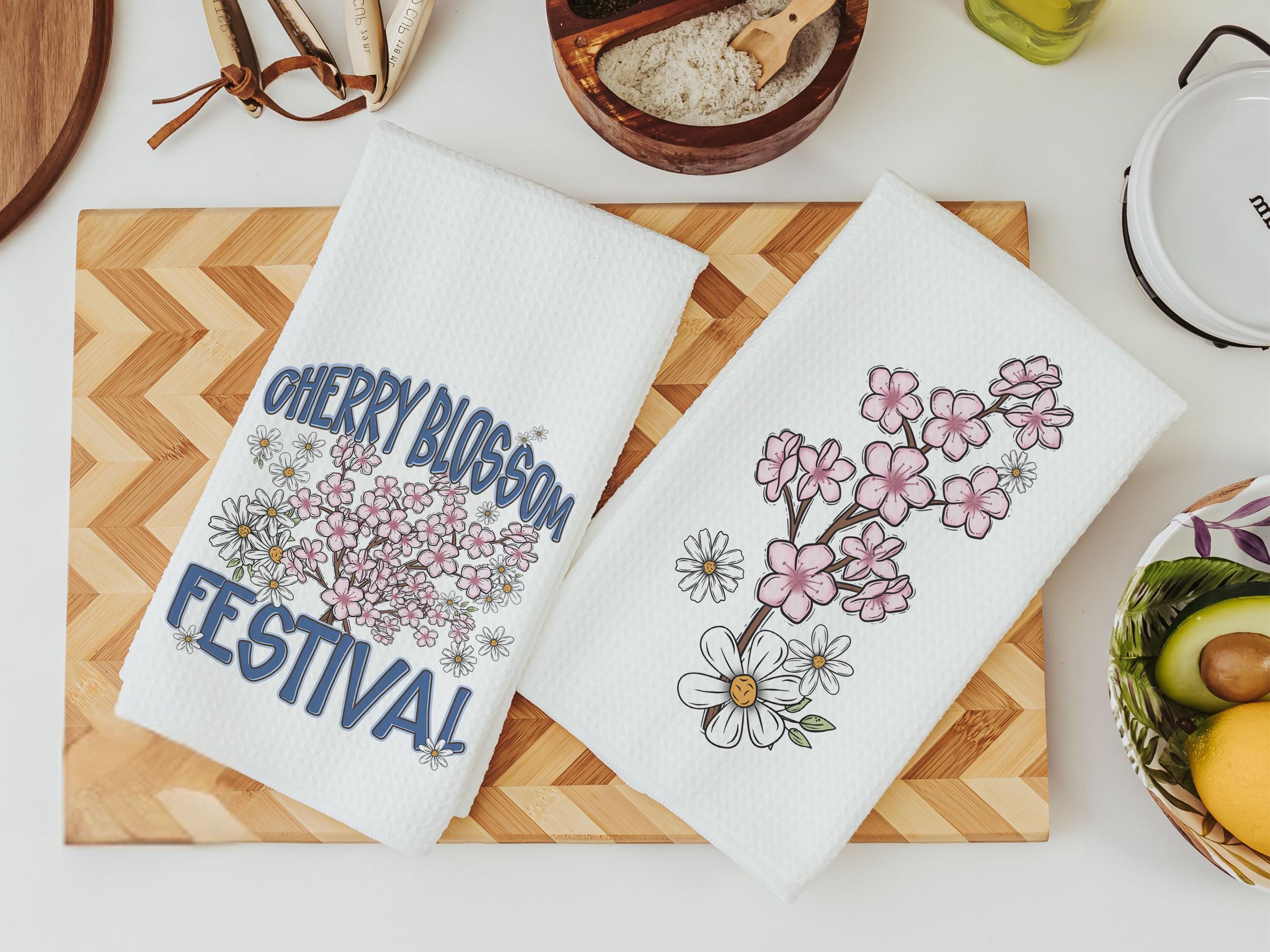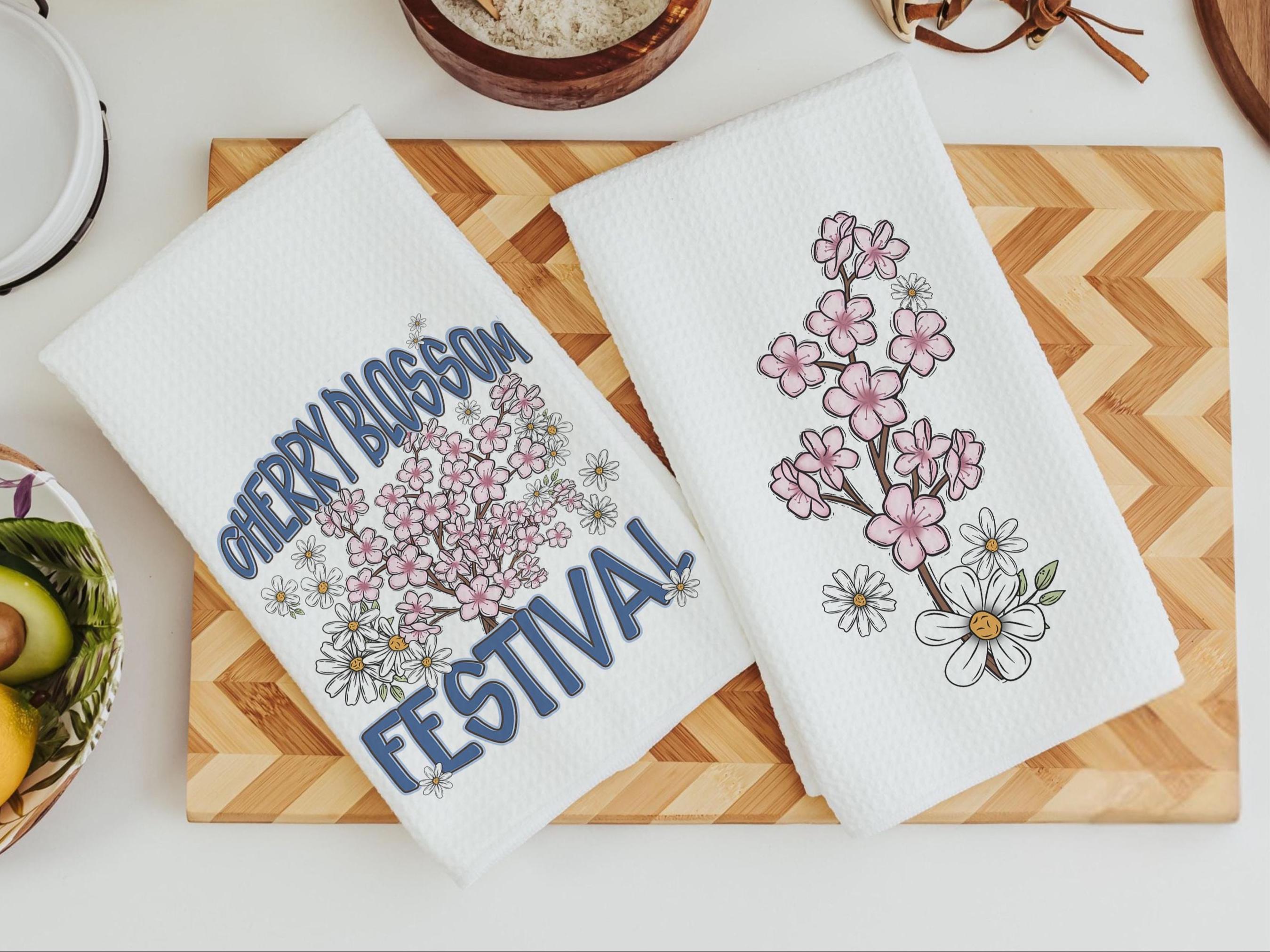 cherry blossom festival Sakura kitchen towels for summer hand towels for bathroom, Japanese aesthetic floral kitchen decor, Washington DC