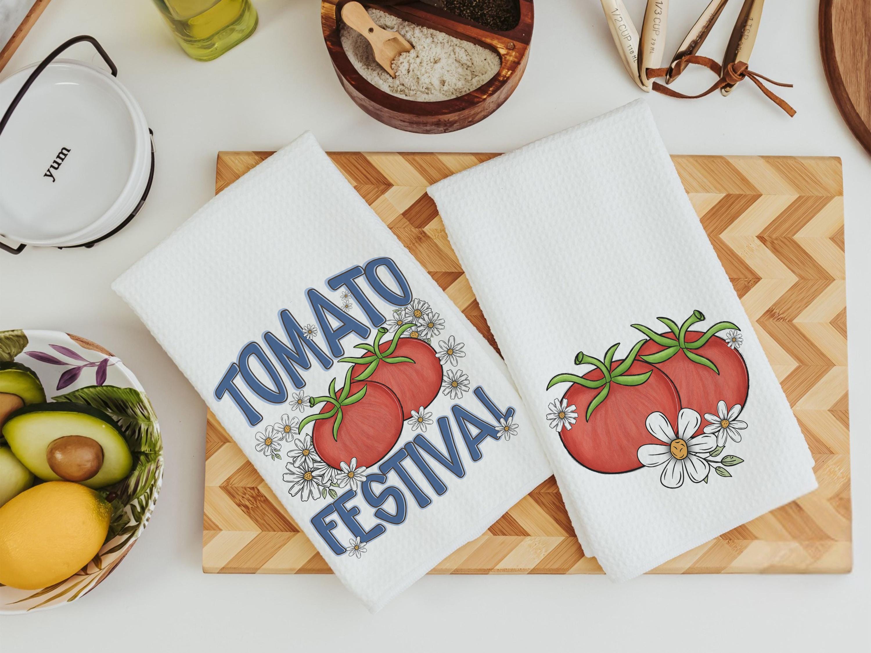 Celebrate tomato girl summer with our Tomato Festival kitchen towels—just the right mix of charm and function for the kitchen or guest bath. A cute gift for Mom or the gardener in your life, these hand towels bring a playful touch to summer decor.