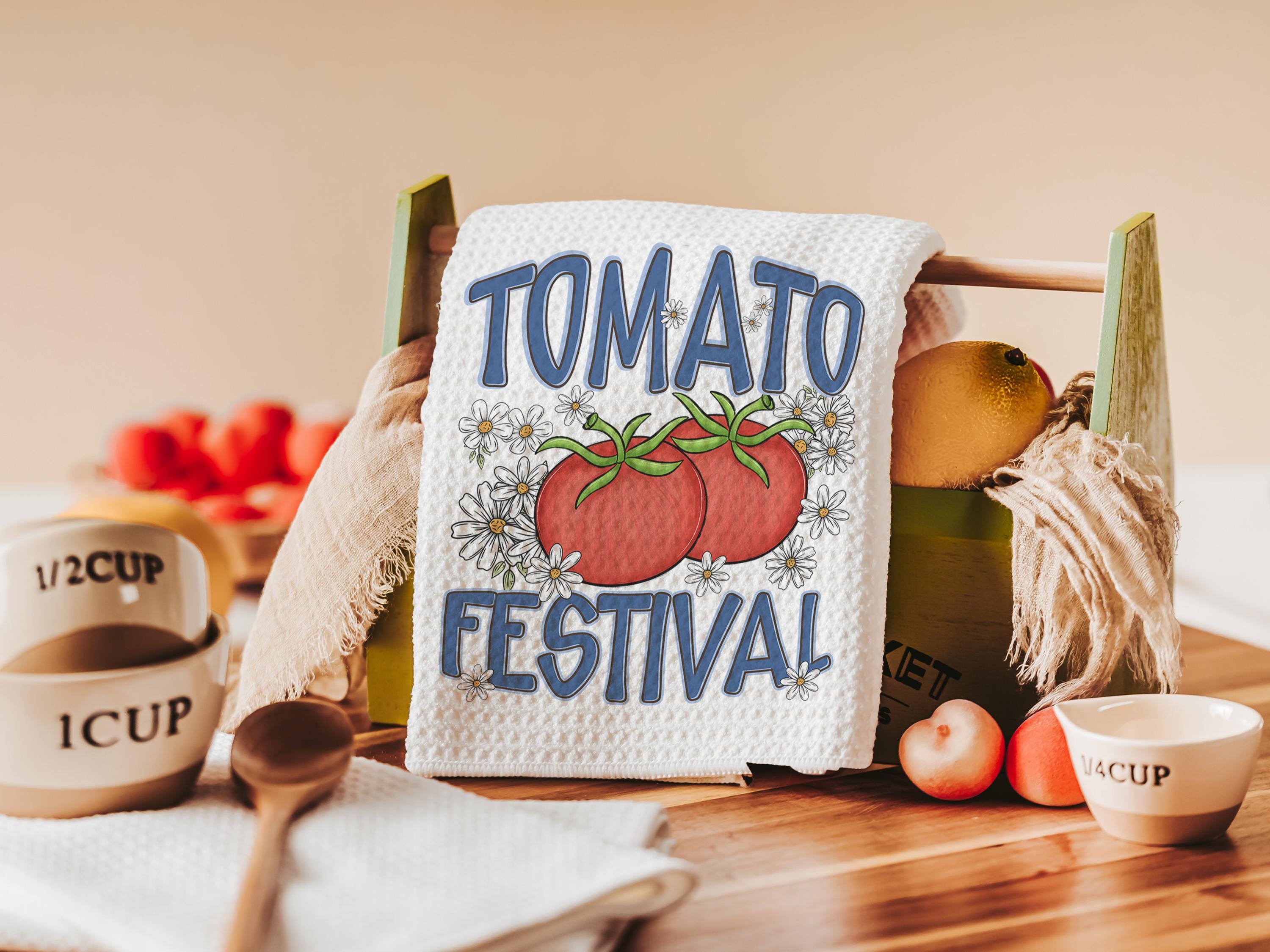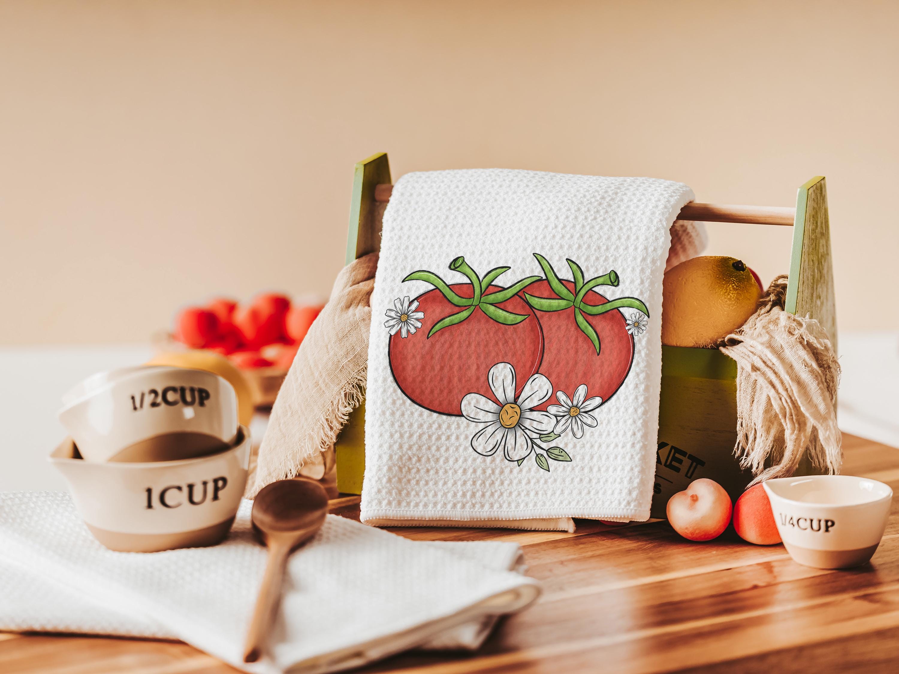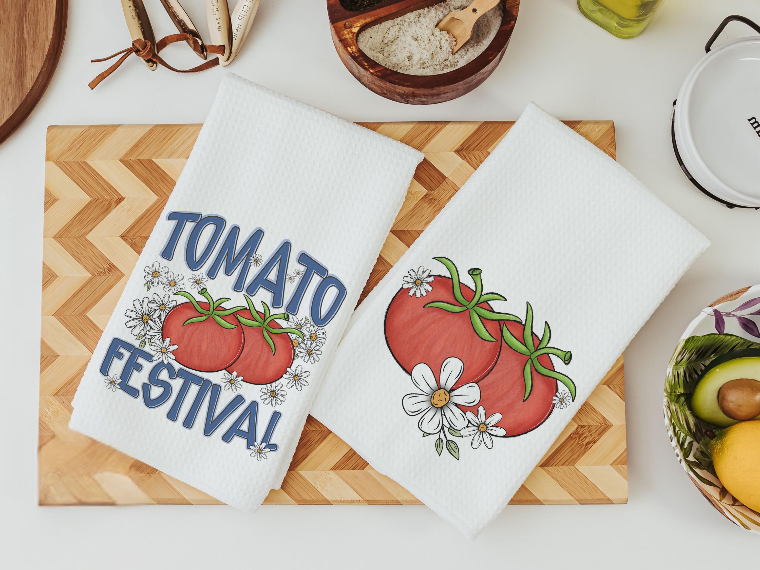 tomato festival tomato kitchen towels for mom, gardening gifts for women, tomato girl summer kitchen decor, cute hand towels guest bath