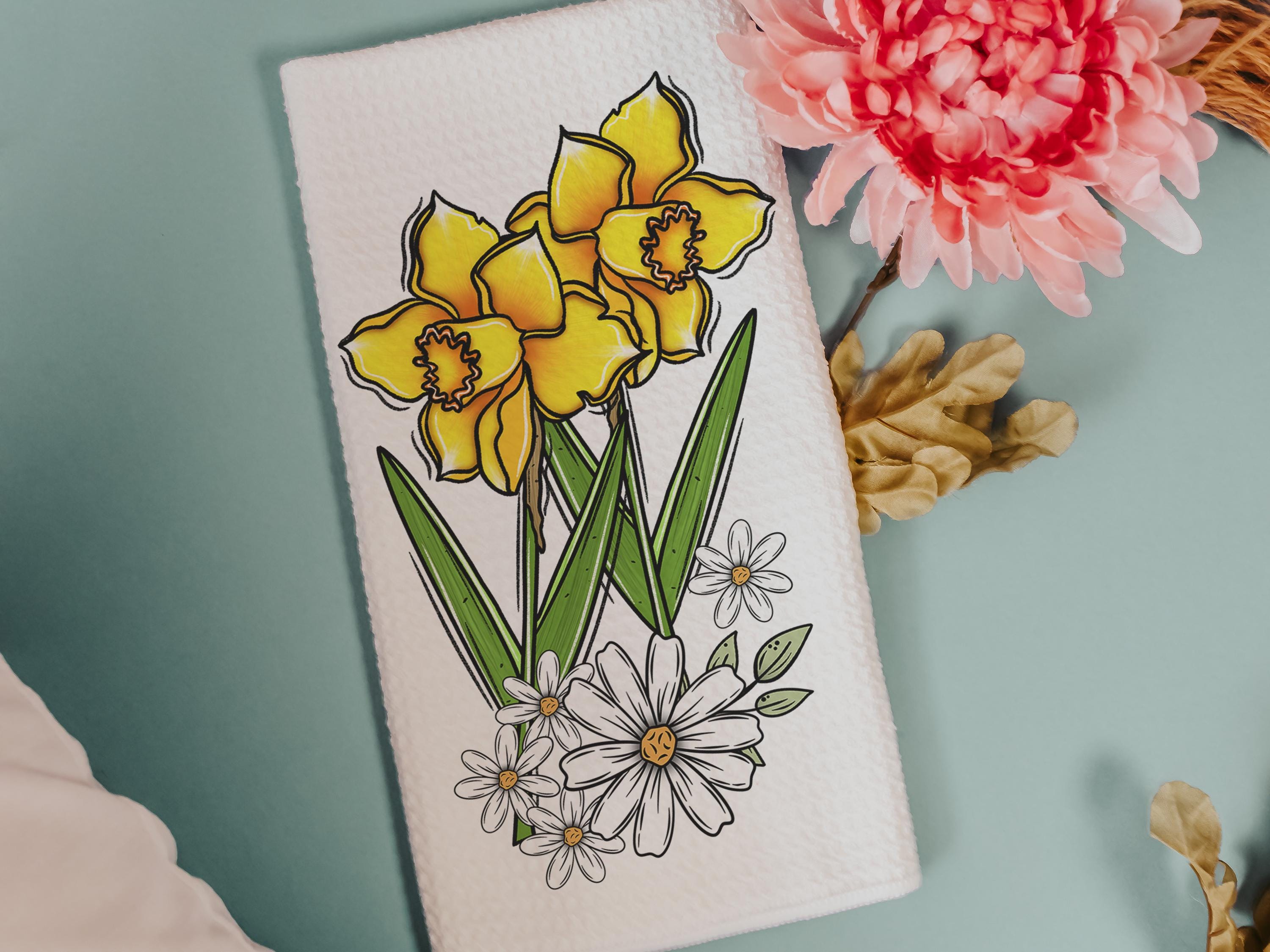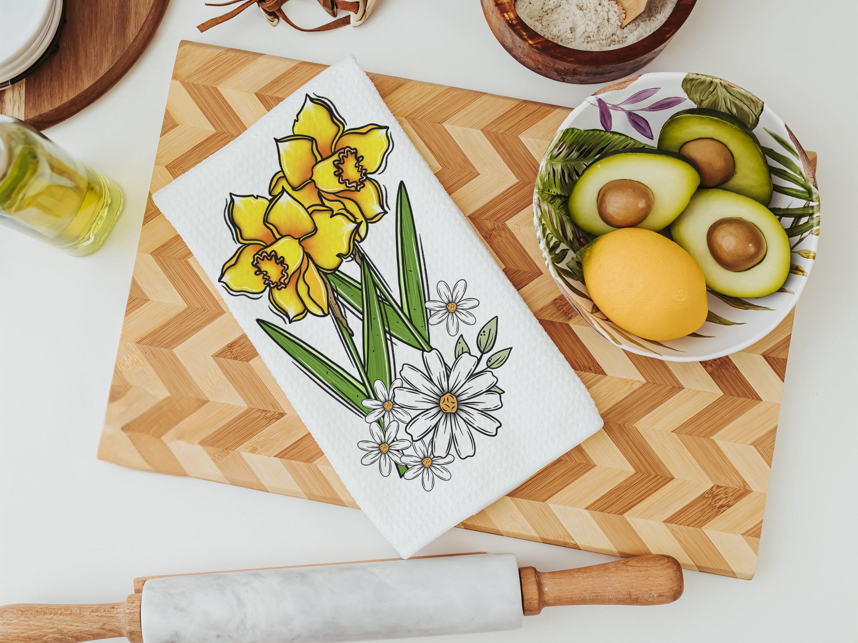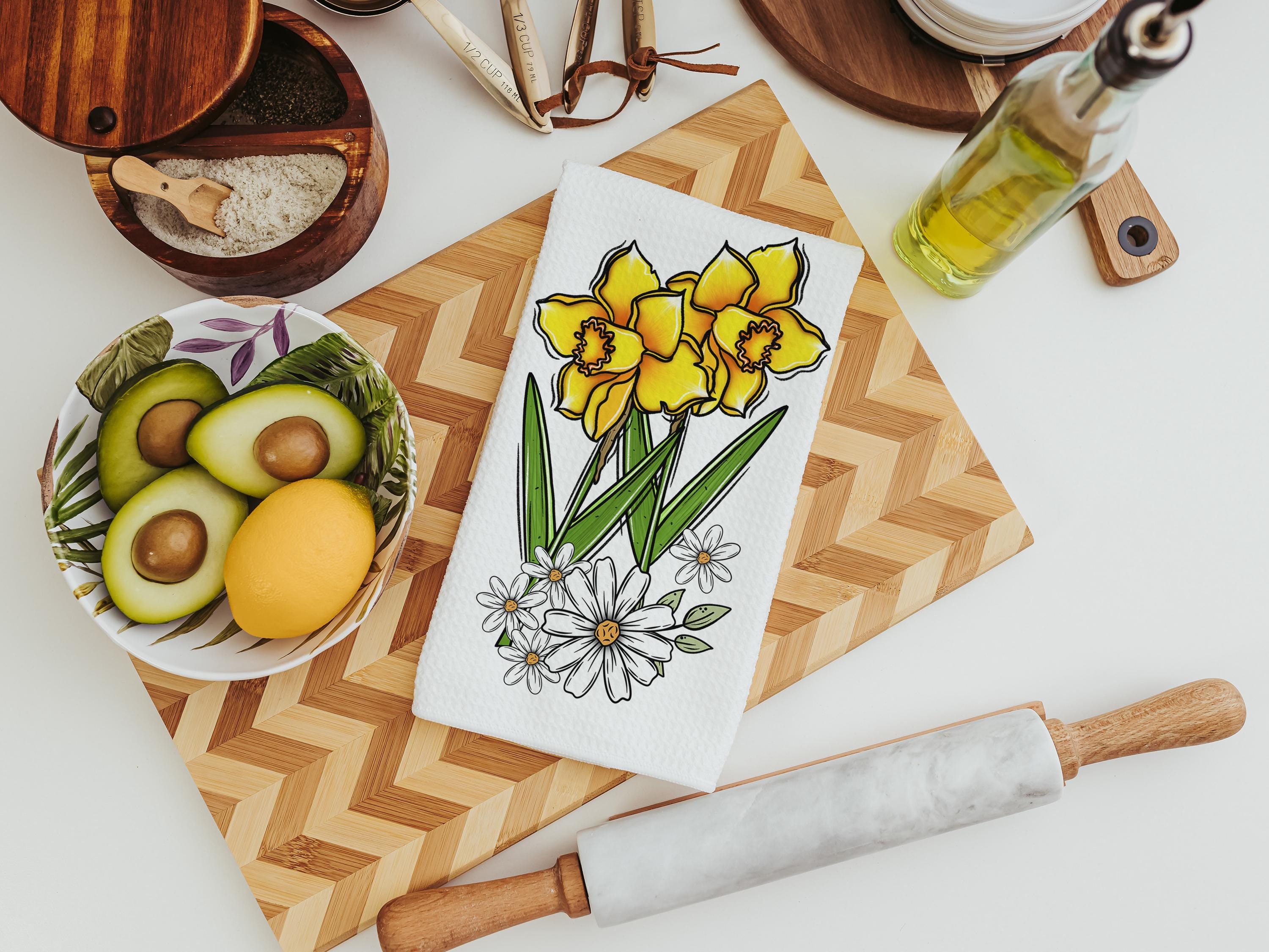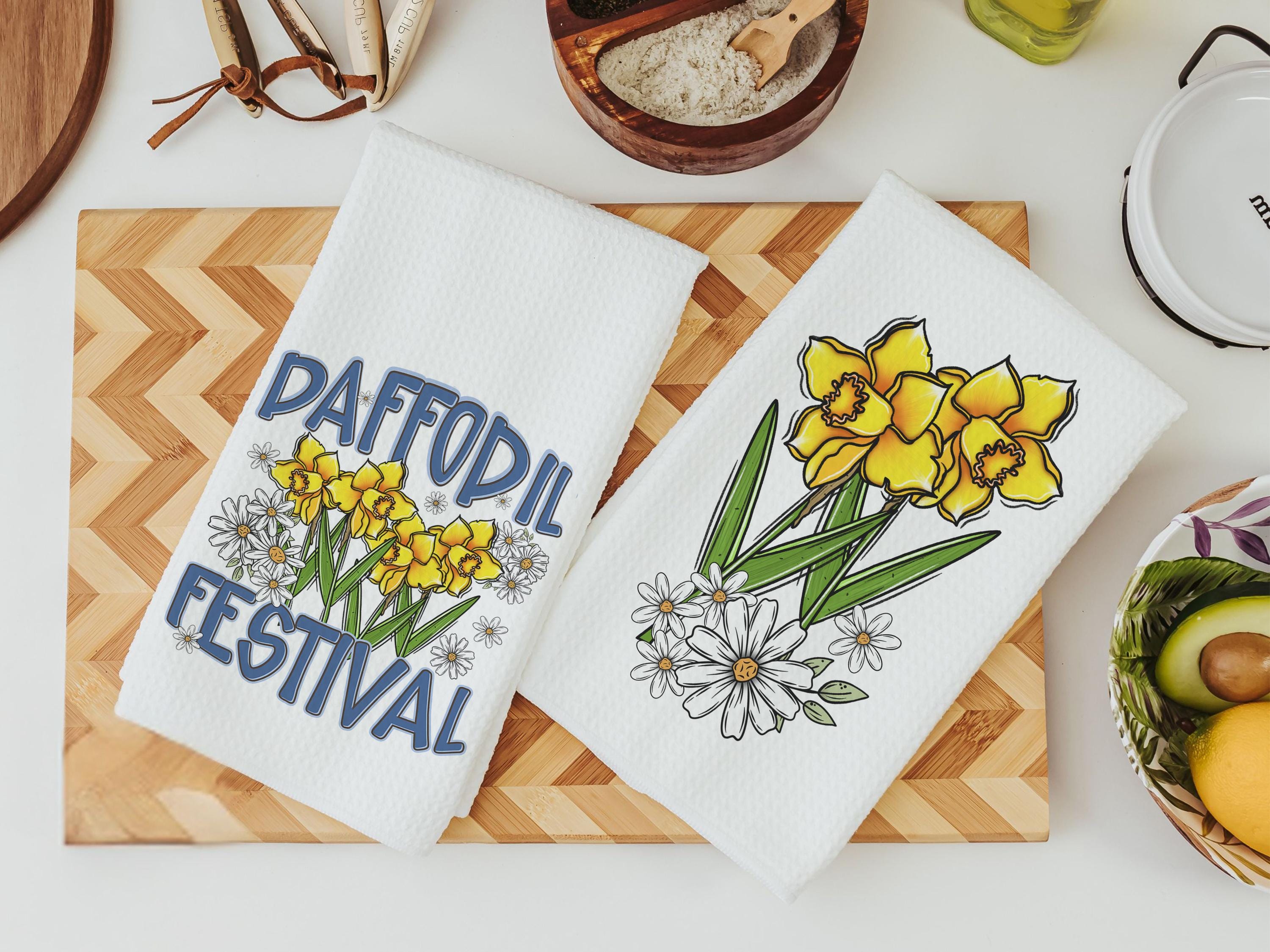 daffodil festival daffodil kitchen towels for summer hand towels for bathroom, floral kitchen decor, Nantucket gifts, gardener gifts for