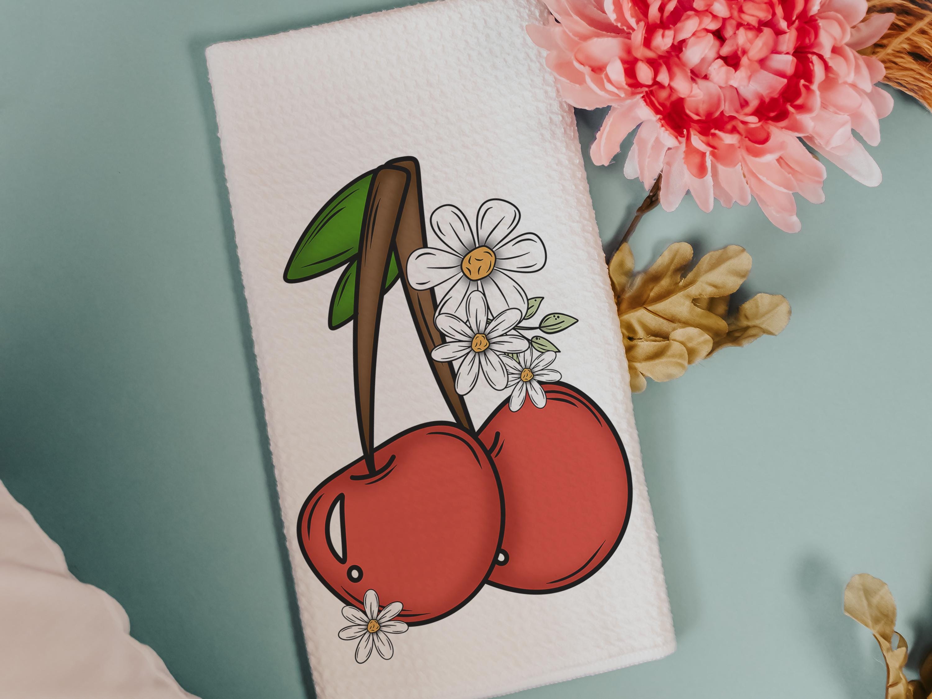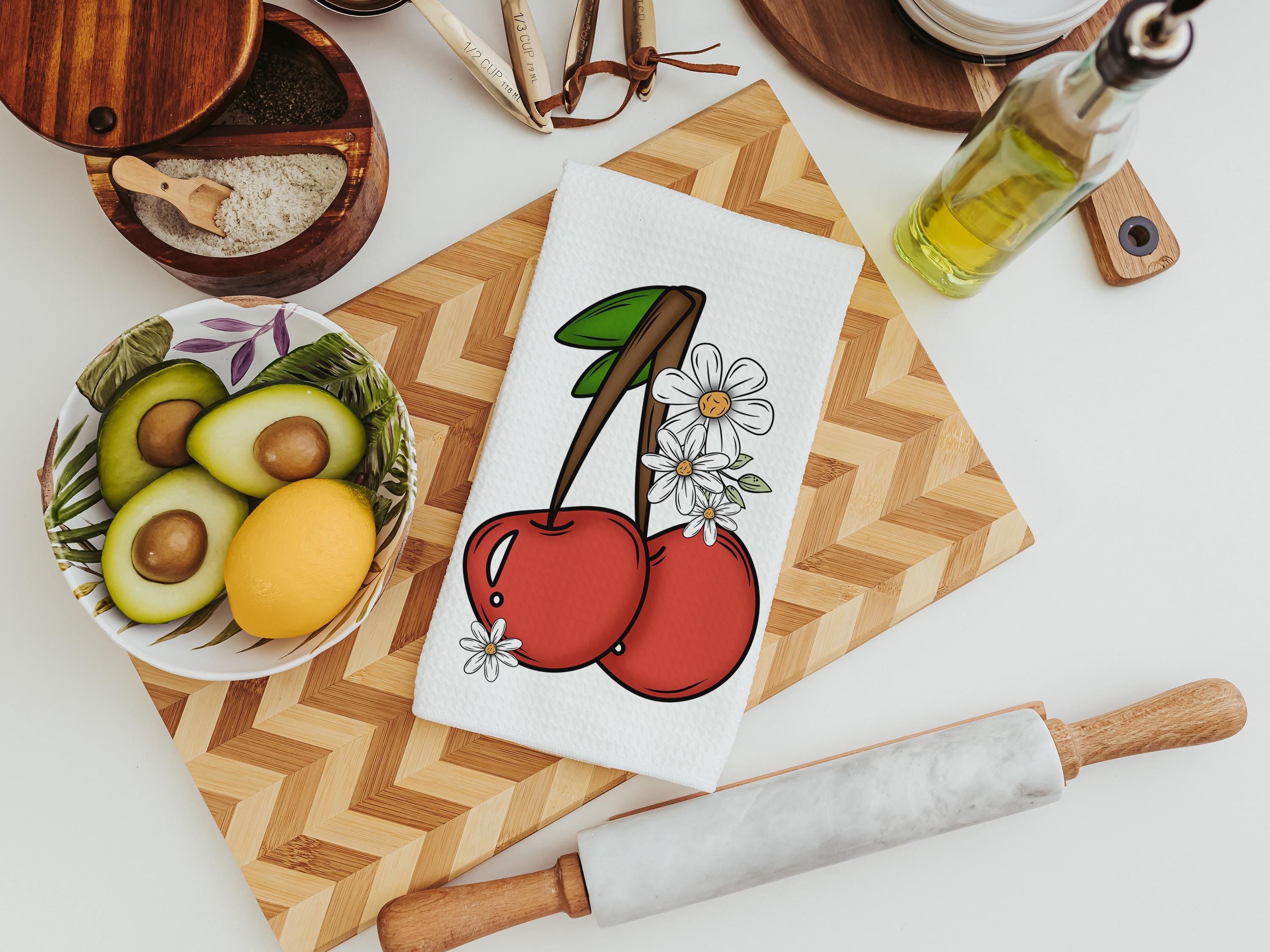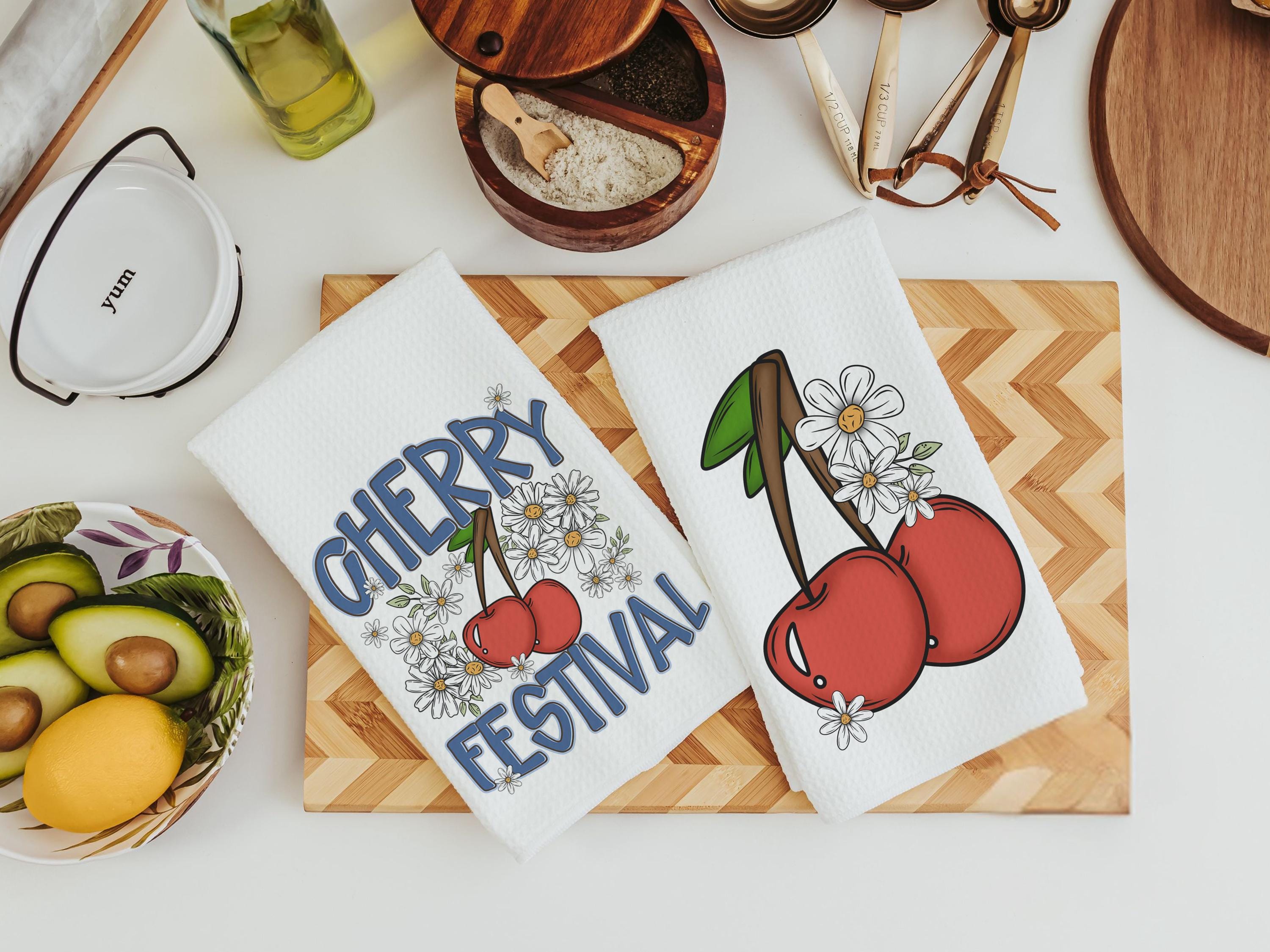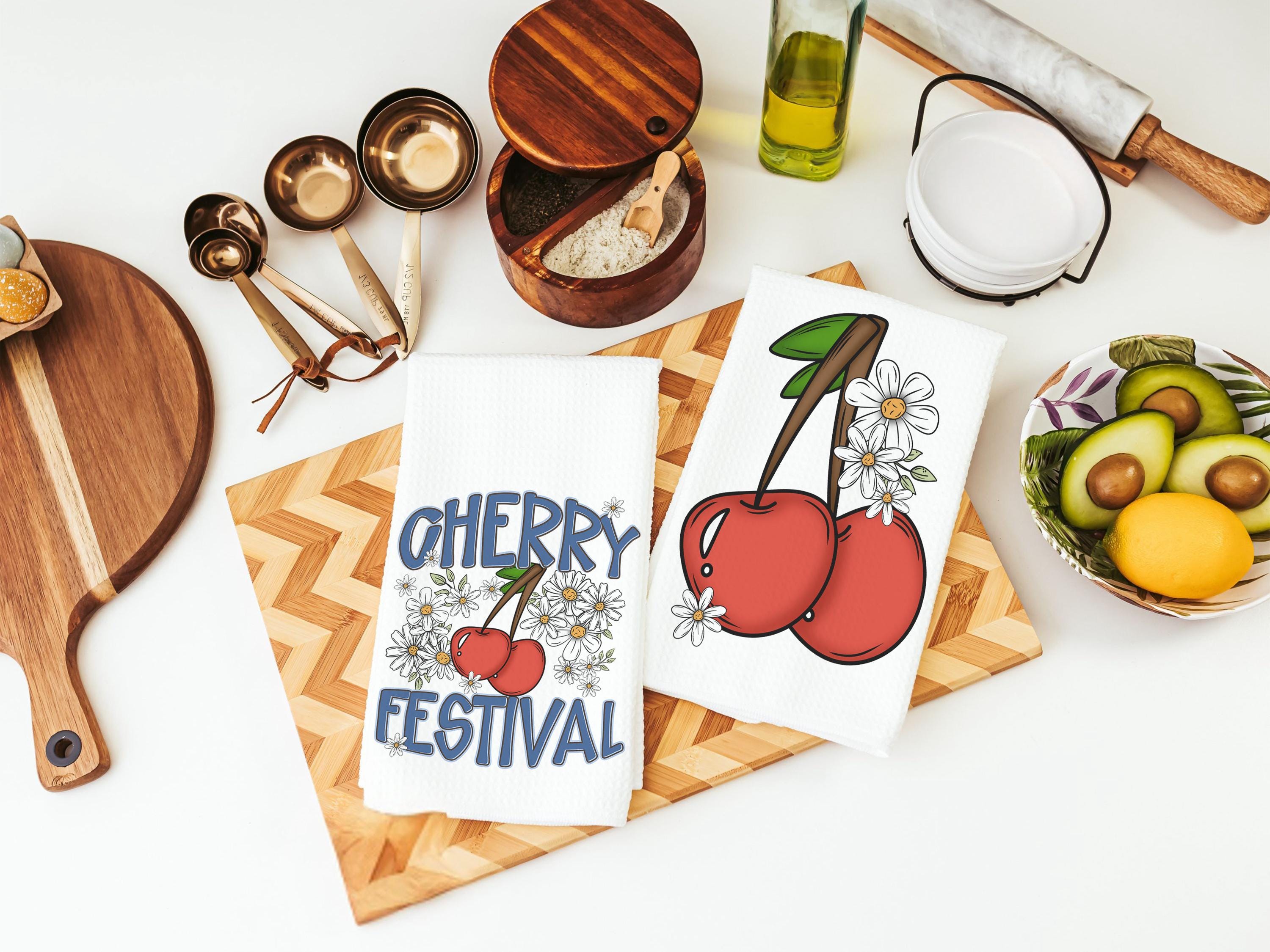 cherry festival fruit kitchen towels for summer hand towels for bathroom, cherry kitchen decor, Michigan gifts for adults, trendy kitchen