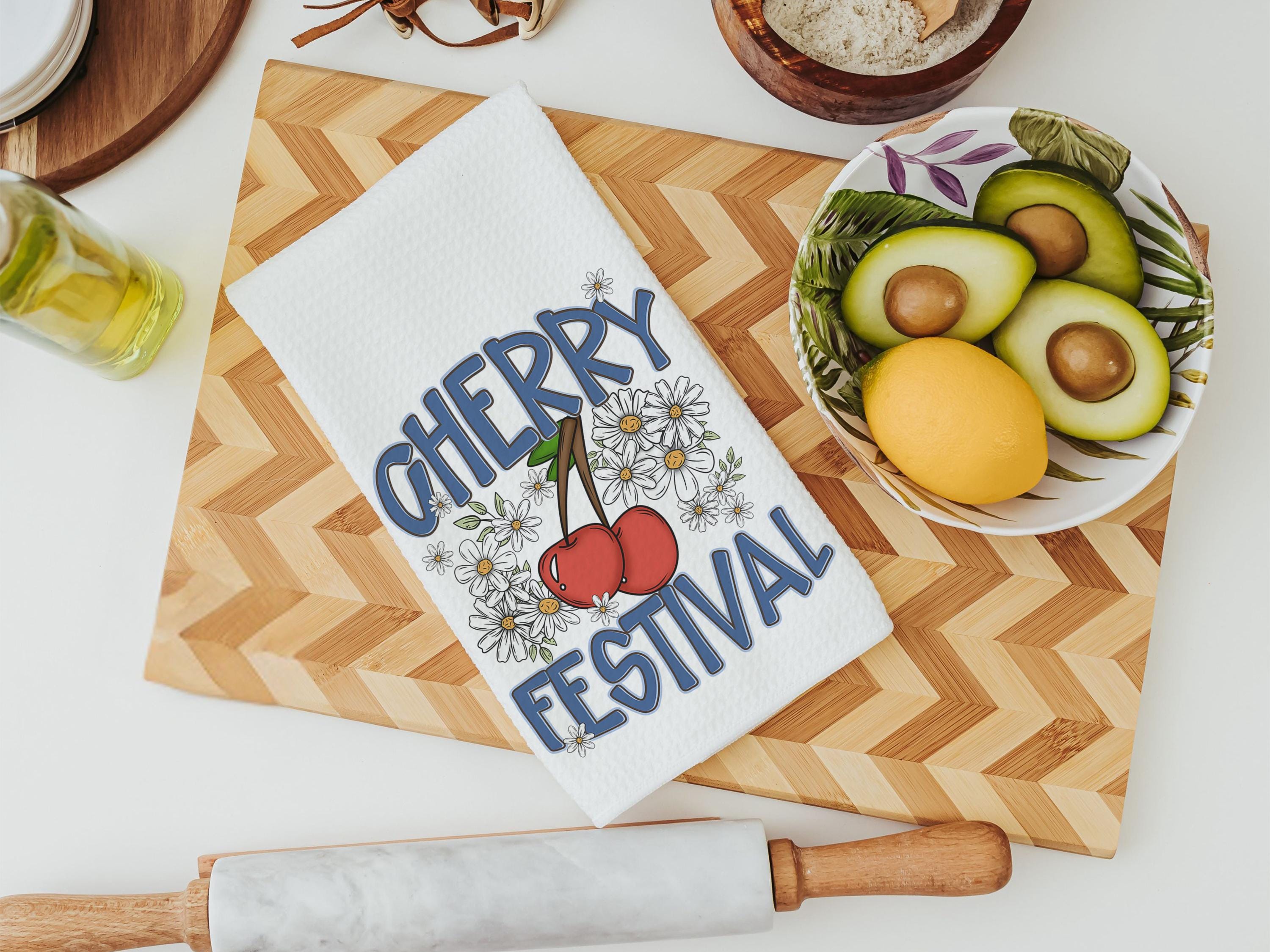 Celebrate summer with our Cherry Festival kitchen towels—perfect for brightening up your kitchen or bathroom. These hand towels feature cheerful cherry designs and make great Michigan gifts for adults, fruit lovers, or anyone with trendy kitchen taste.
