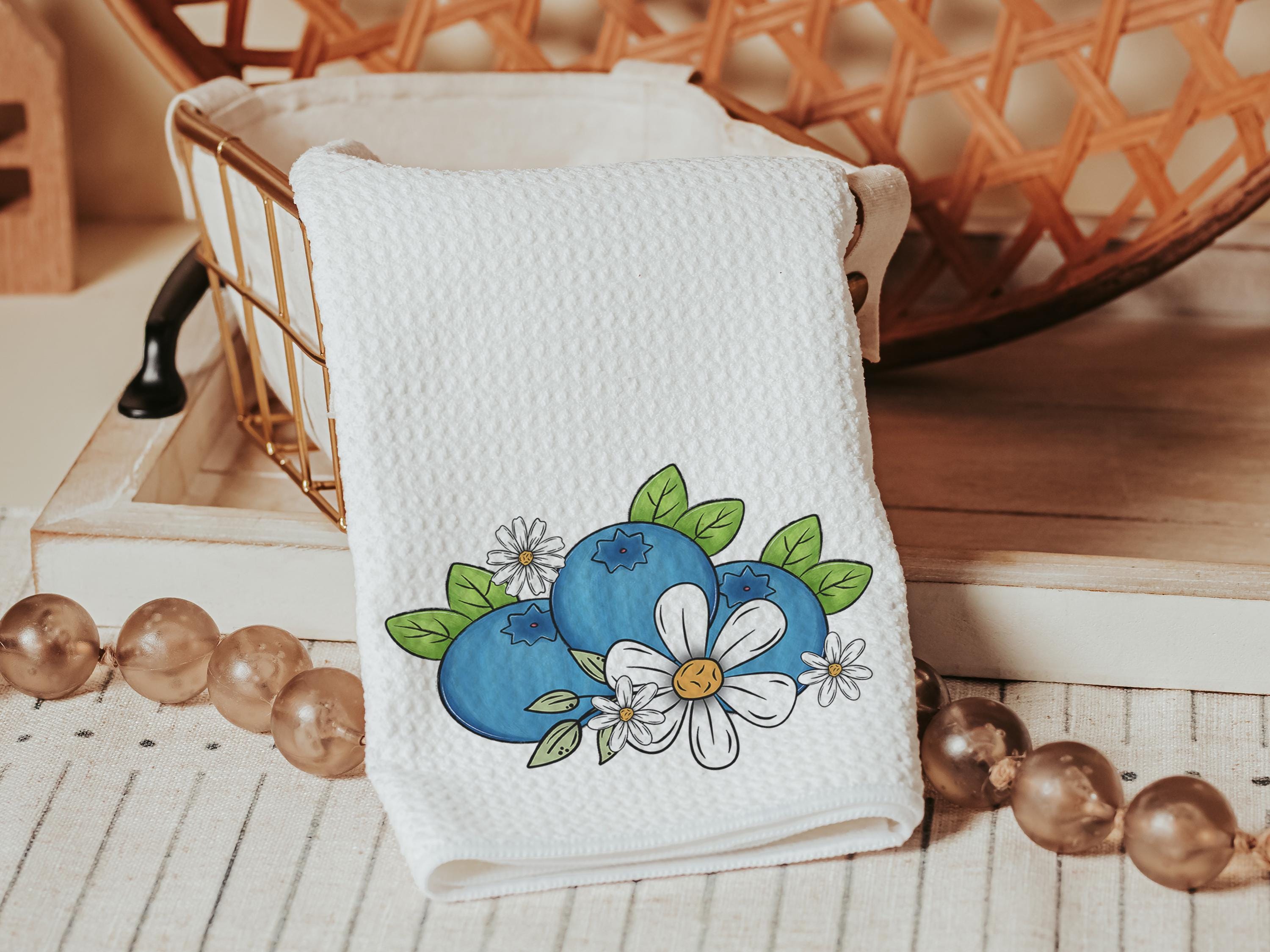 Celebrate blueberry season with this Blueberry Festival kitchen towel, perfect for adding a fruity touch to your summer kitchen or bathroom. Featuring Maine and Florida blueberry-inspired design, it's a sweet gift for her or a fun seasonal accent for your own home.