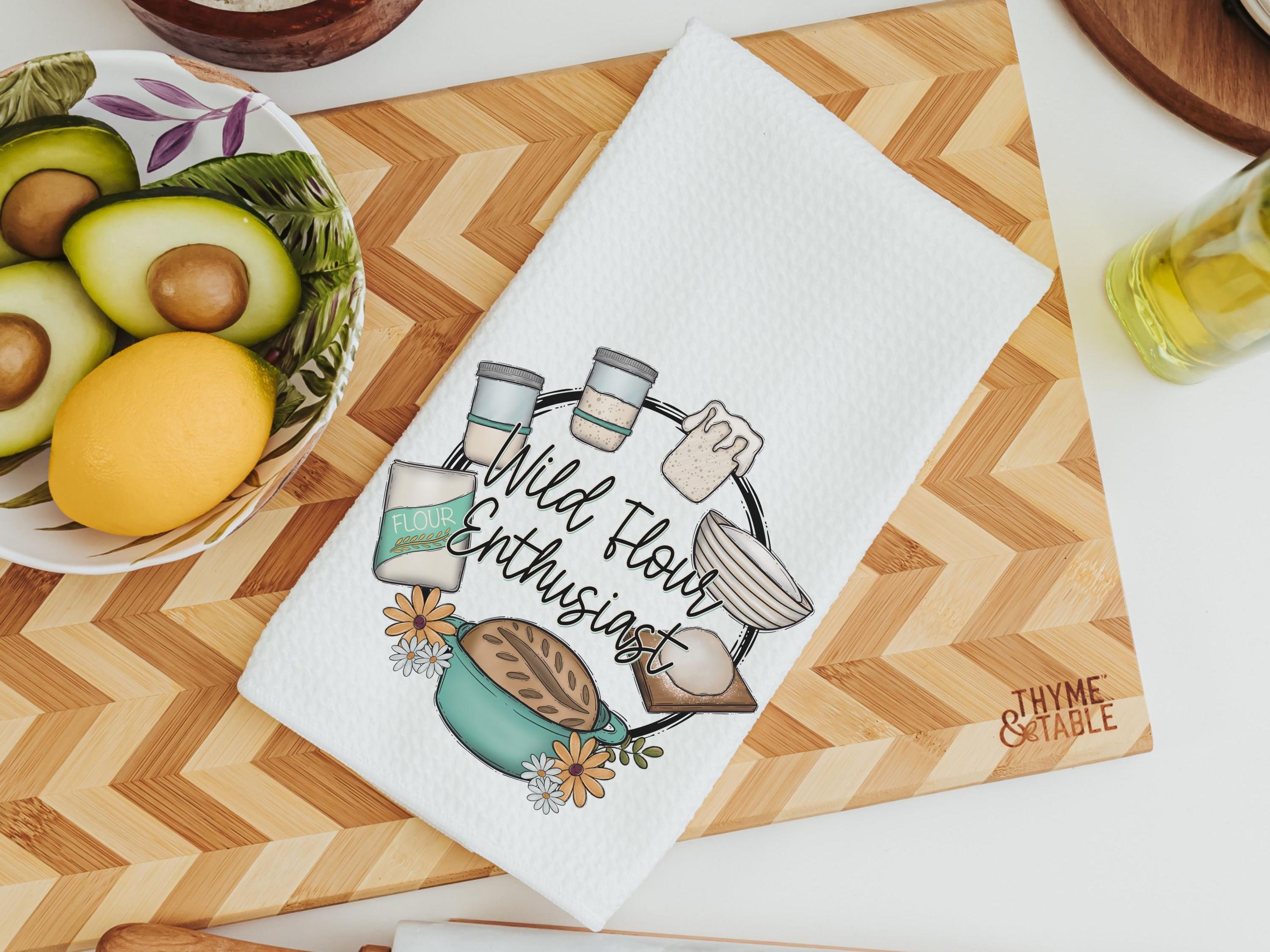 wild flour enthusiast baking kitchen towels for bridal shower, cottage bakery bread baker merch, sourdough mama sourdough kitchen decor
