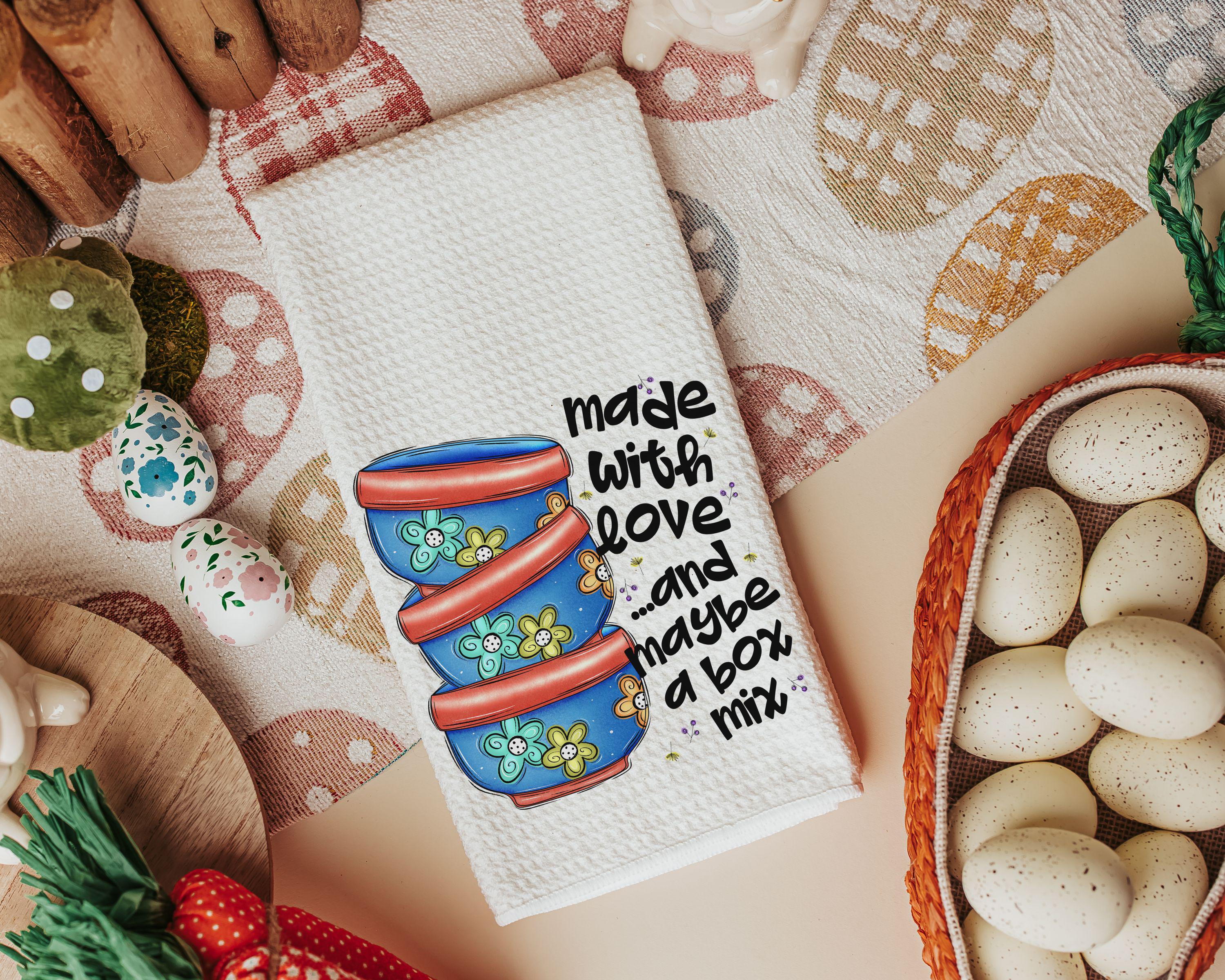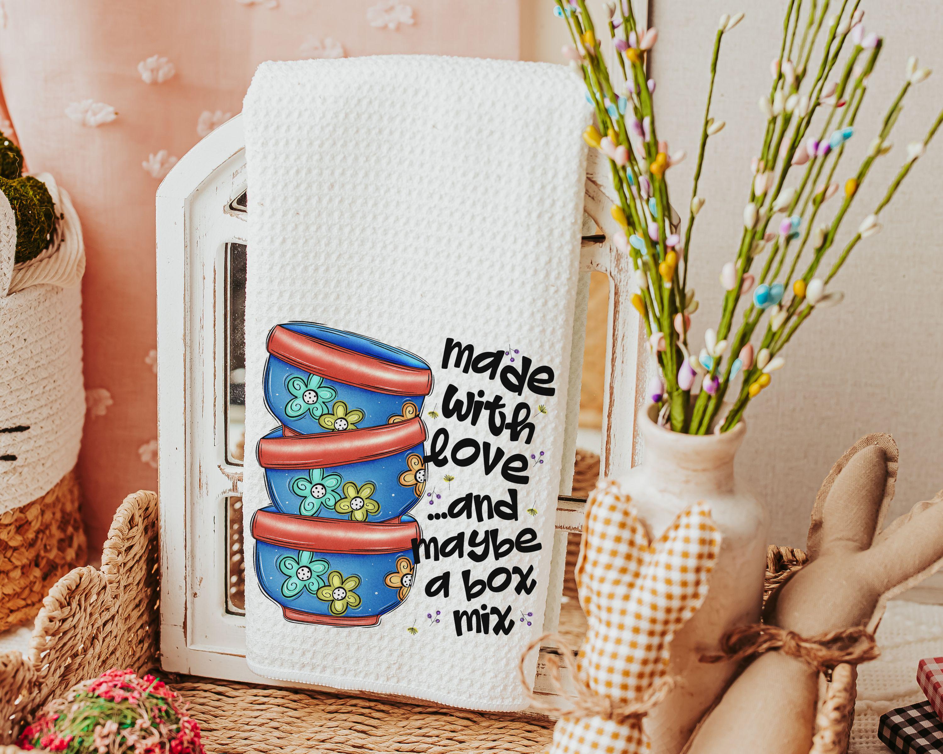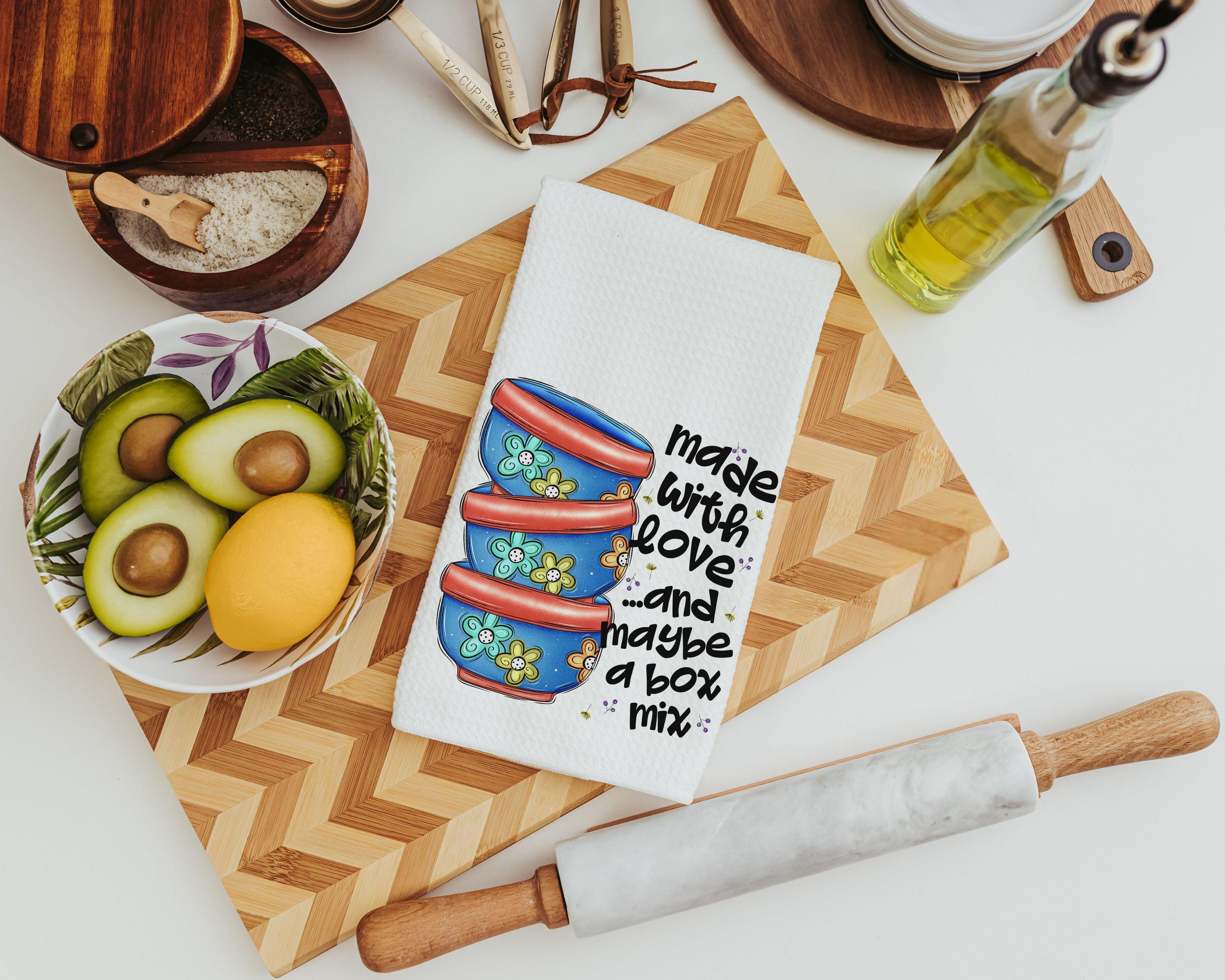 Rolling in the cookie dough and adding some laughter with Made with love and "maybe a box mix"—these kitchen towels bring a fun twist to baking days. A fun addition to your kitchen or a cute gift for Mom, cookie lovers, or your favorite baker. Purchase separately or as a set.