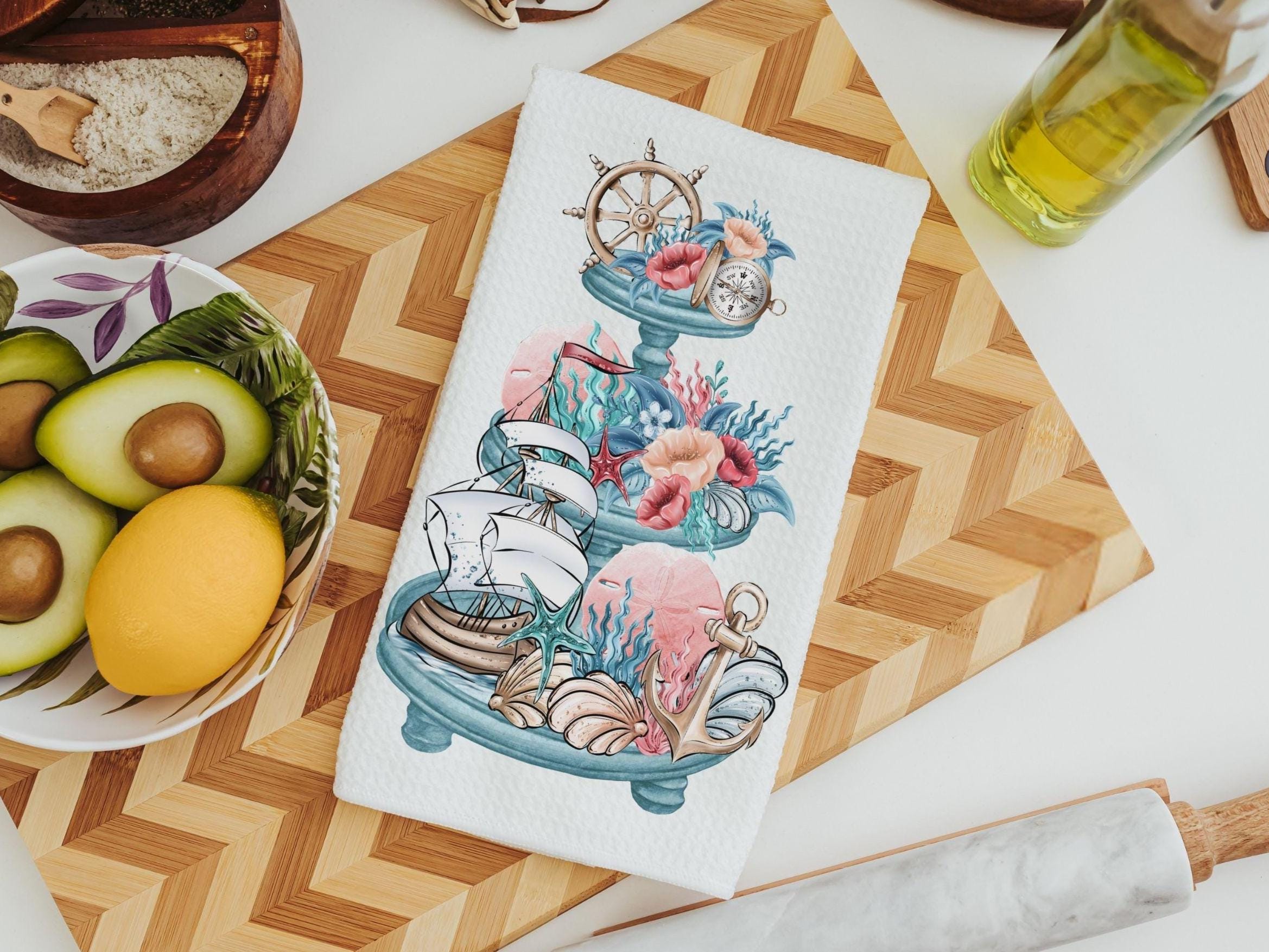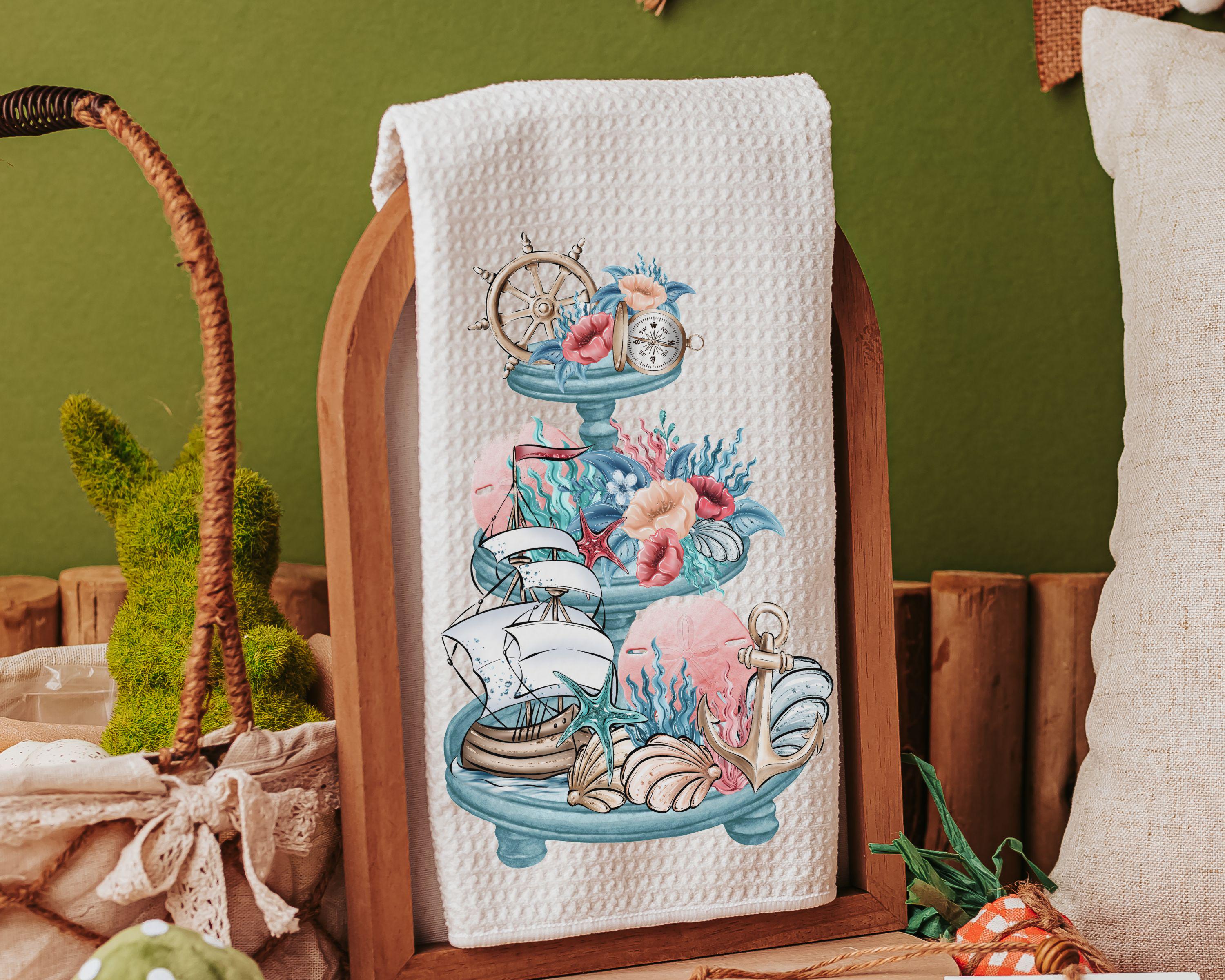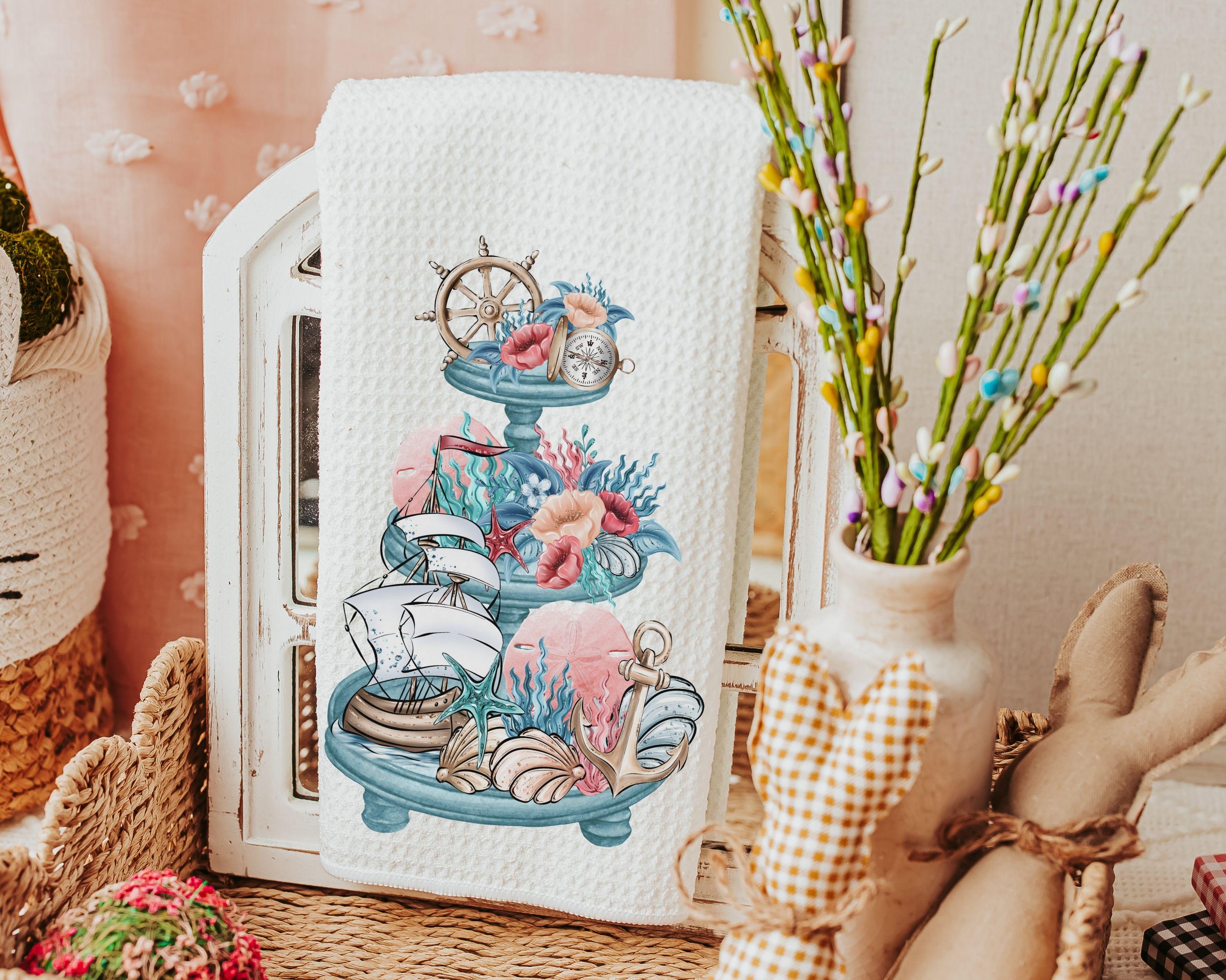 nautical kitchen towels summer kitchen tea towels for friends, beach cottage hostess gifts for women, guest bathroom hand towels, coastal