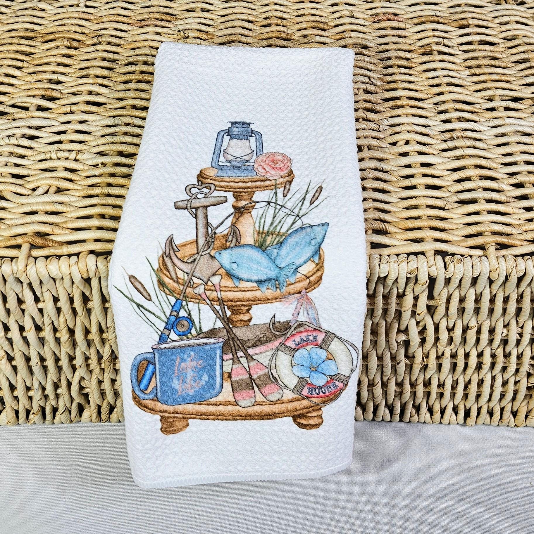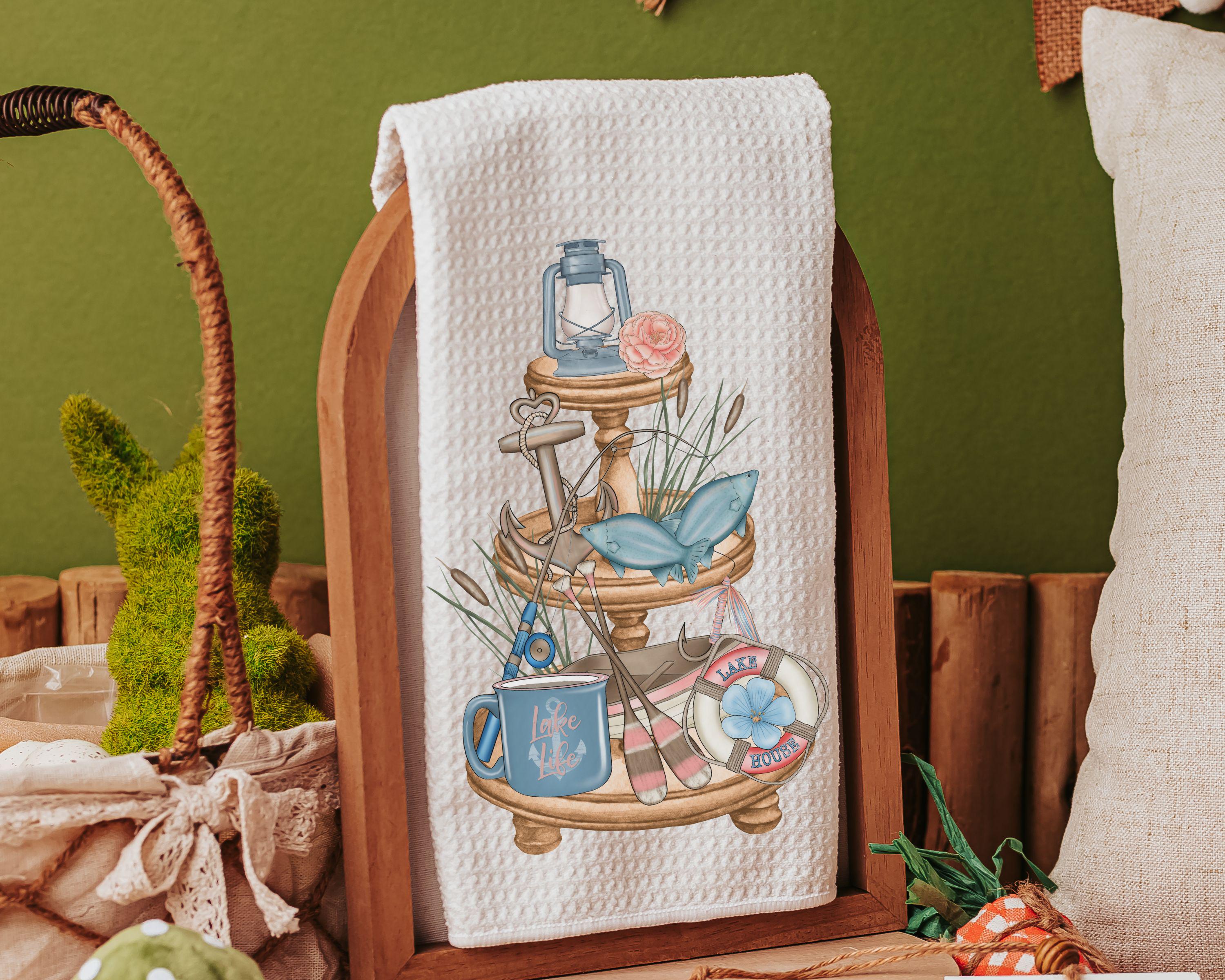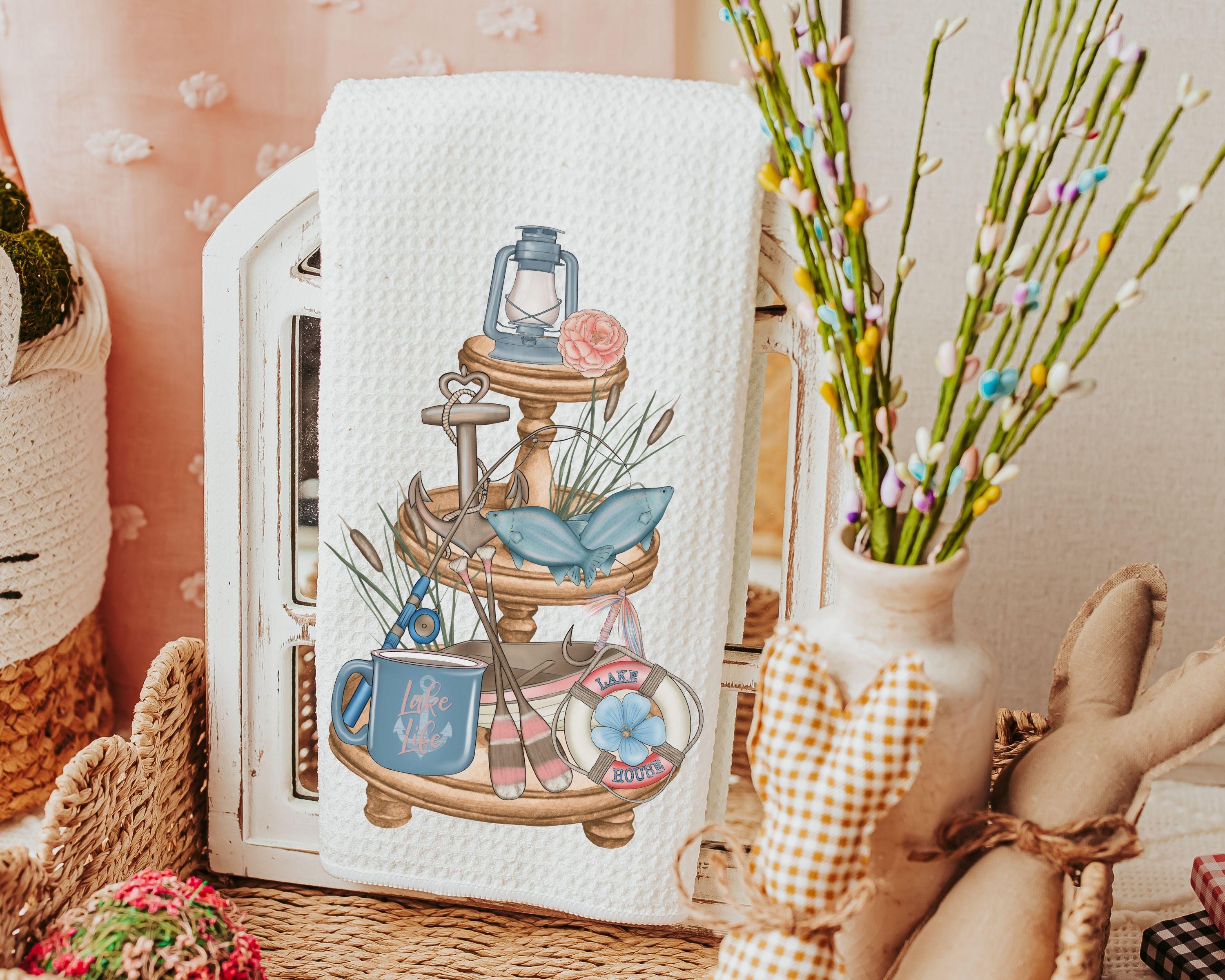 lake kitchen towels summer kitchen tea towels for friends, lake life hostess gifts for women, guest bathroom hand towels, lake house decor