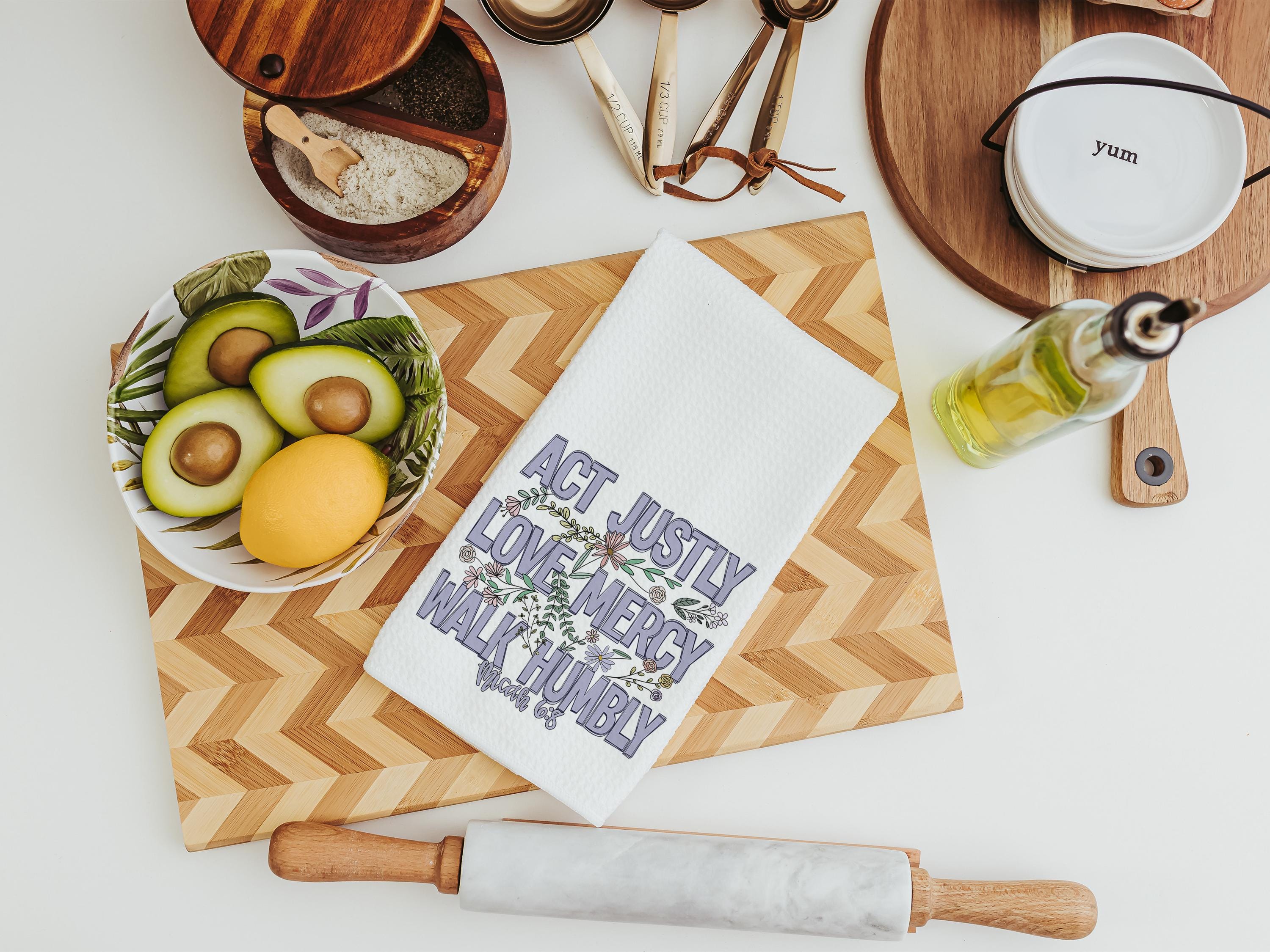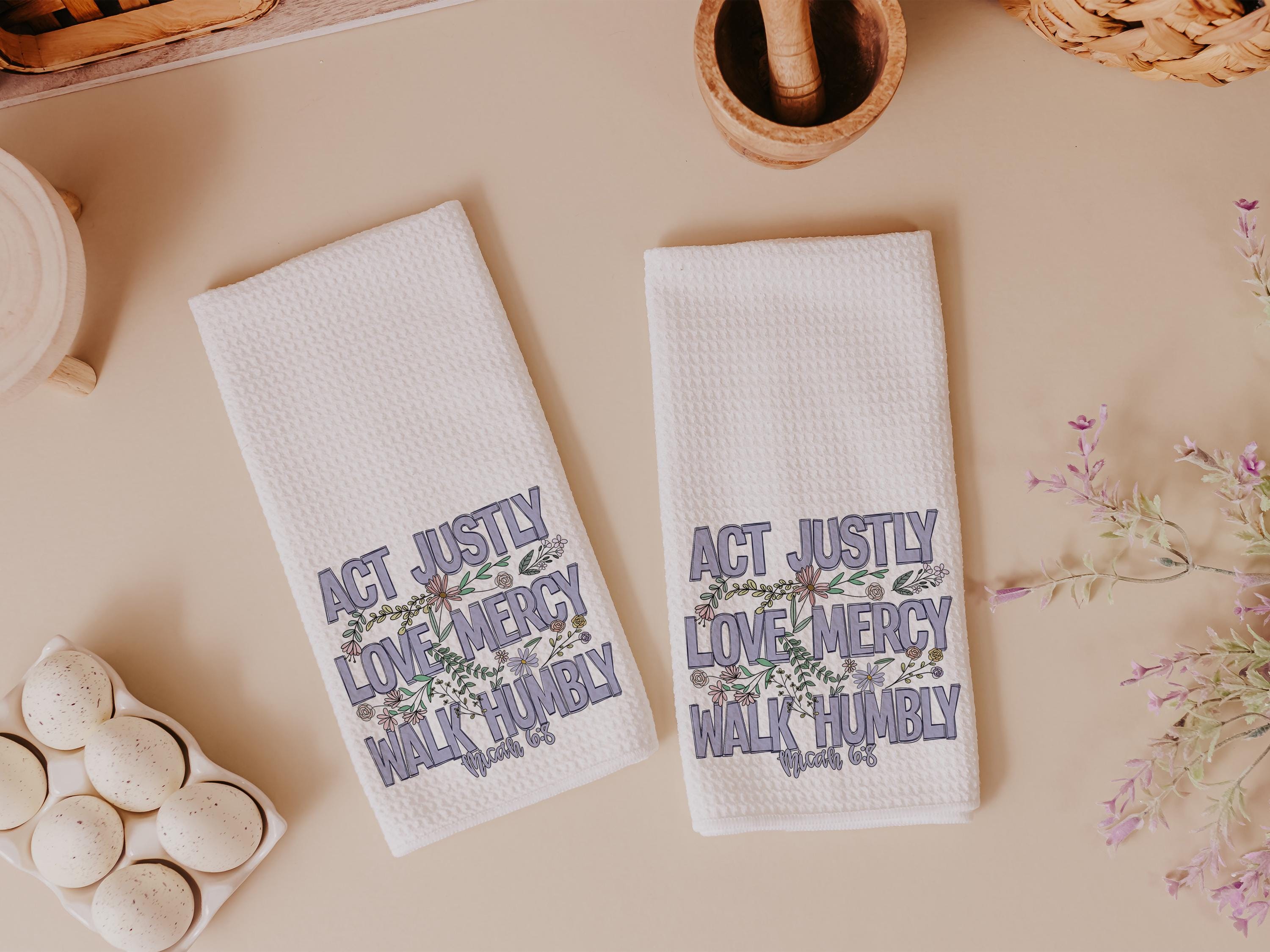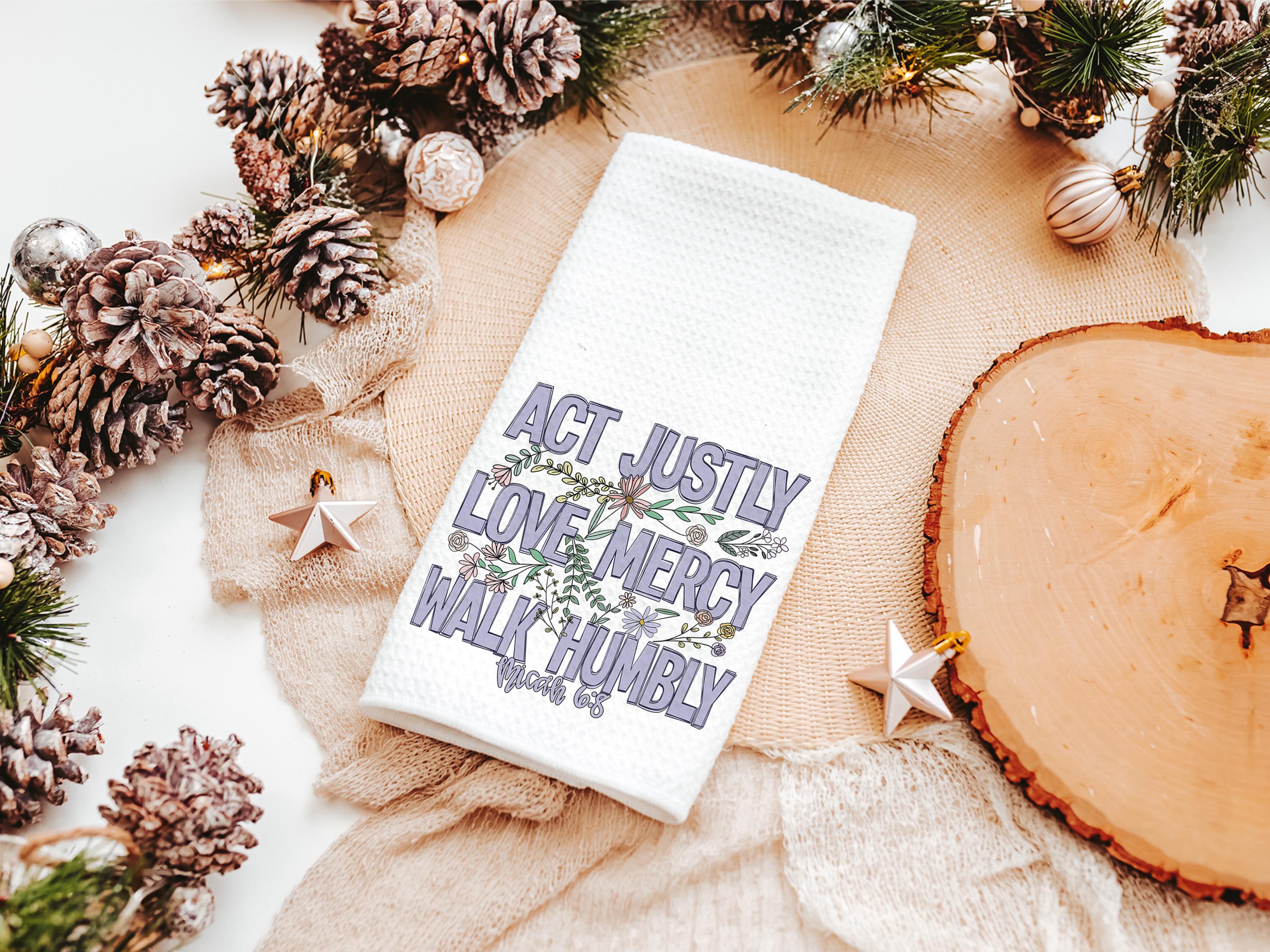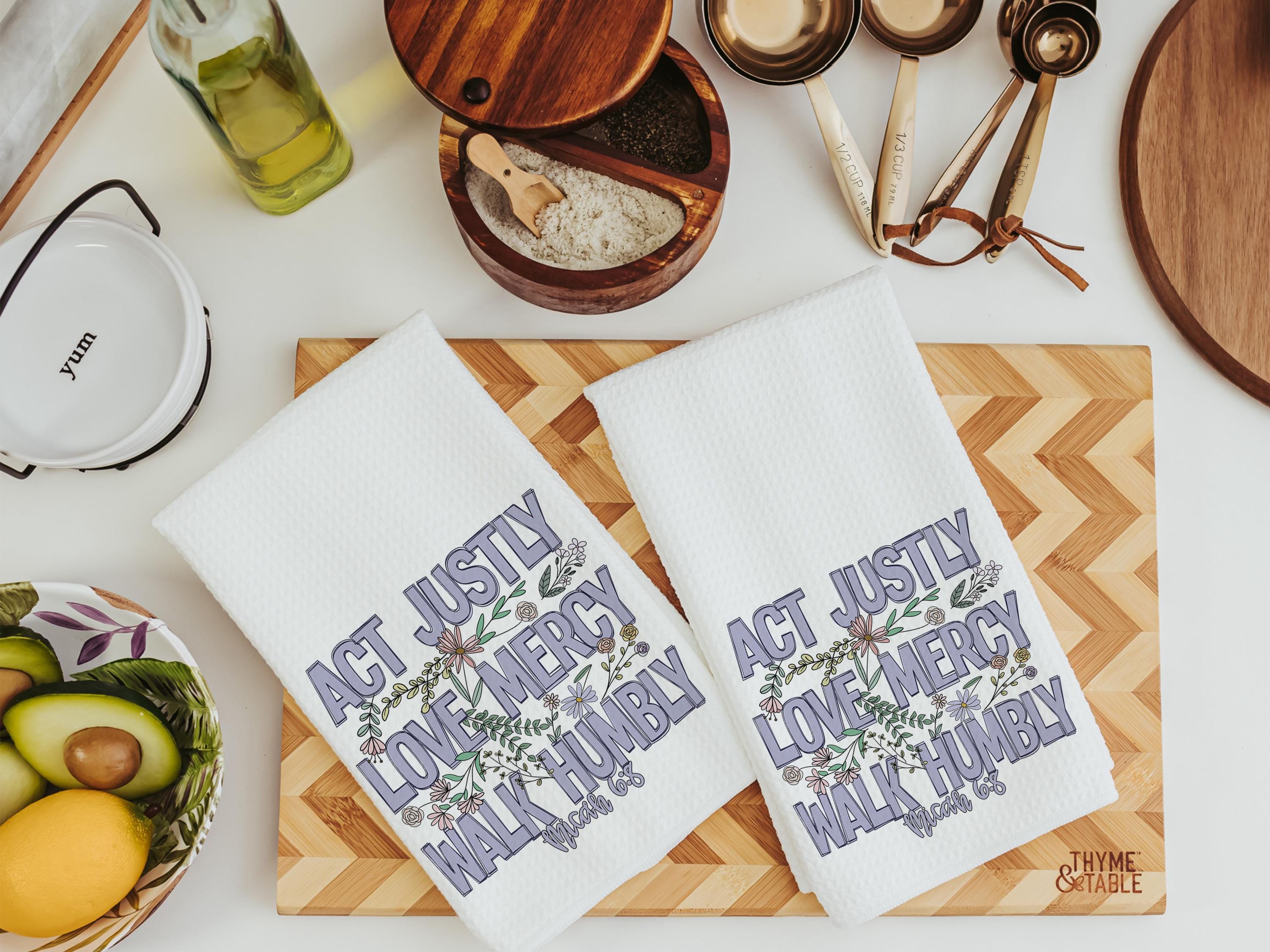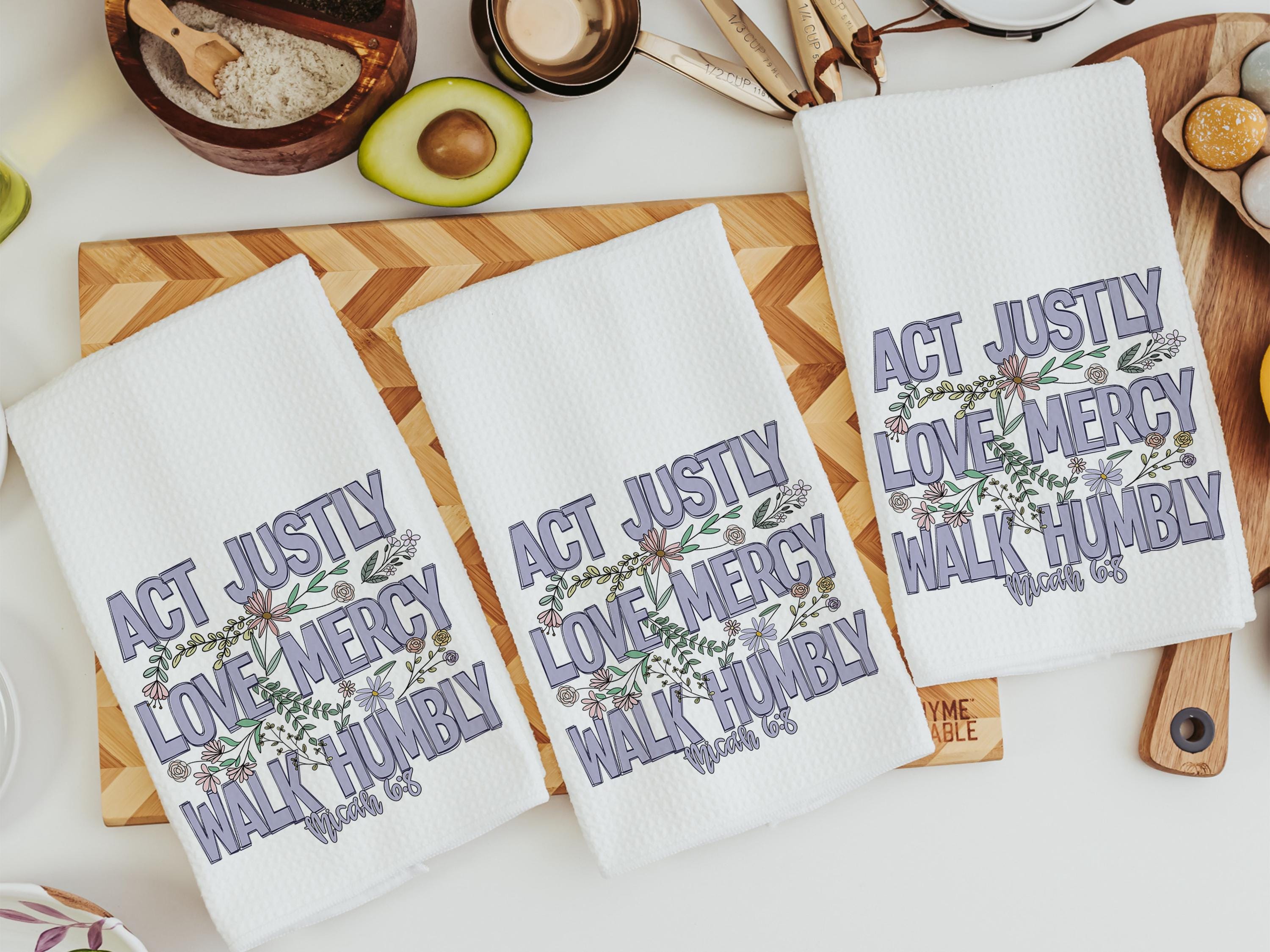 act justly love mercy walk humbly Christian kitchen towels for every season, religious Christmas gifts for godmother, faith based kitchen