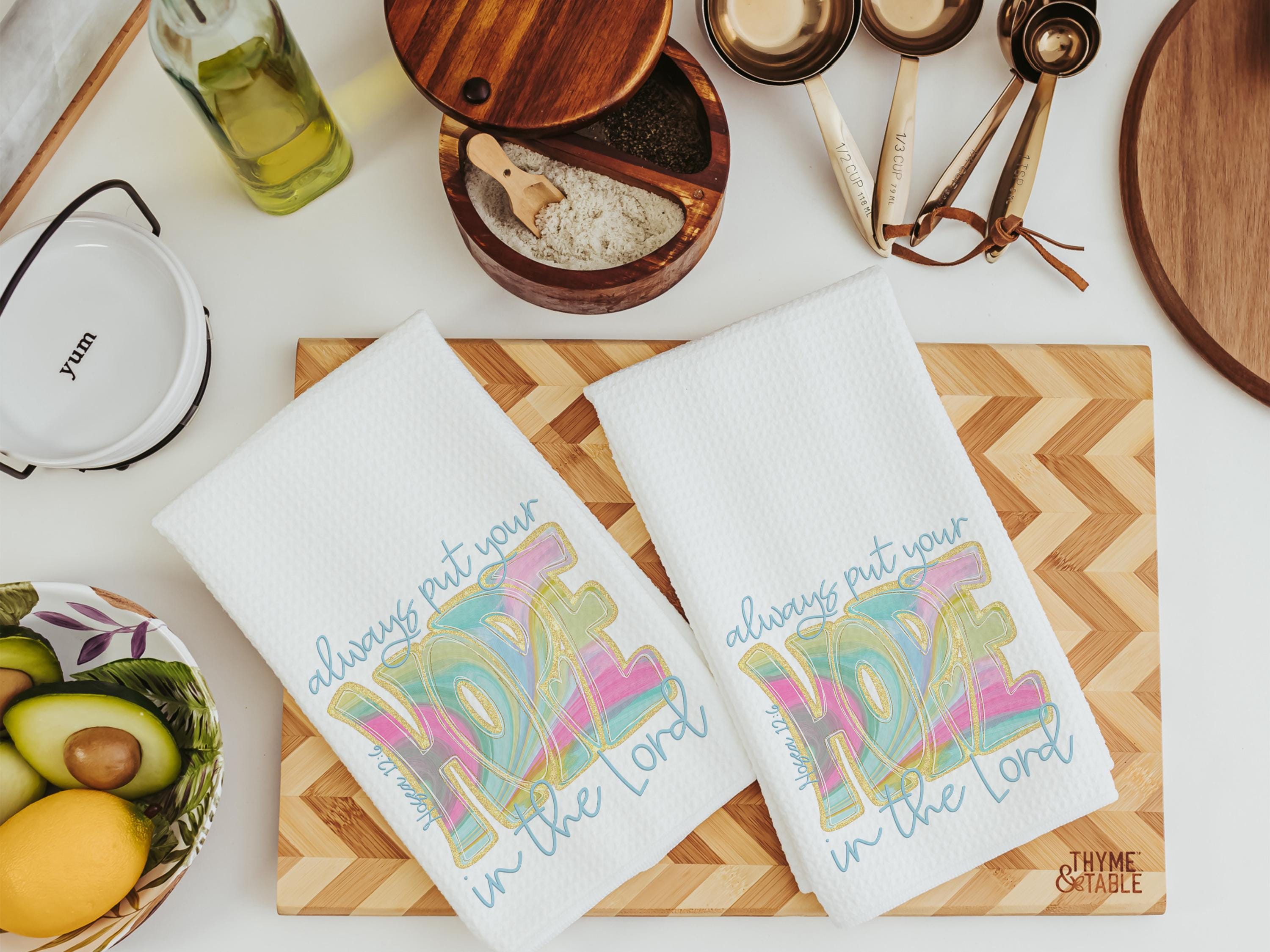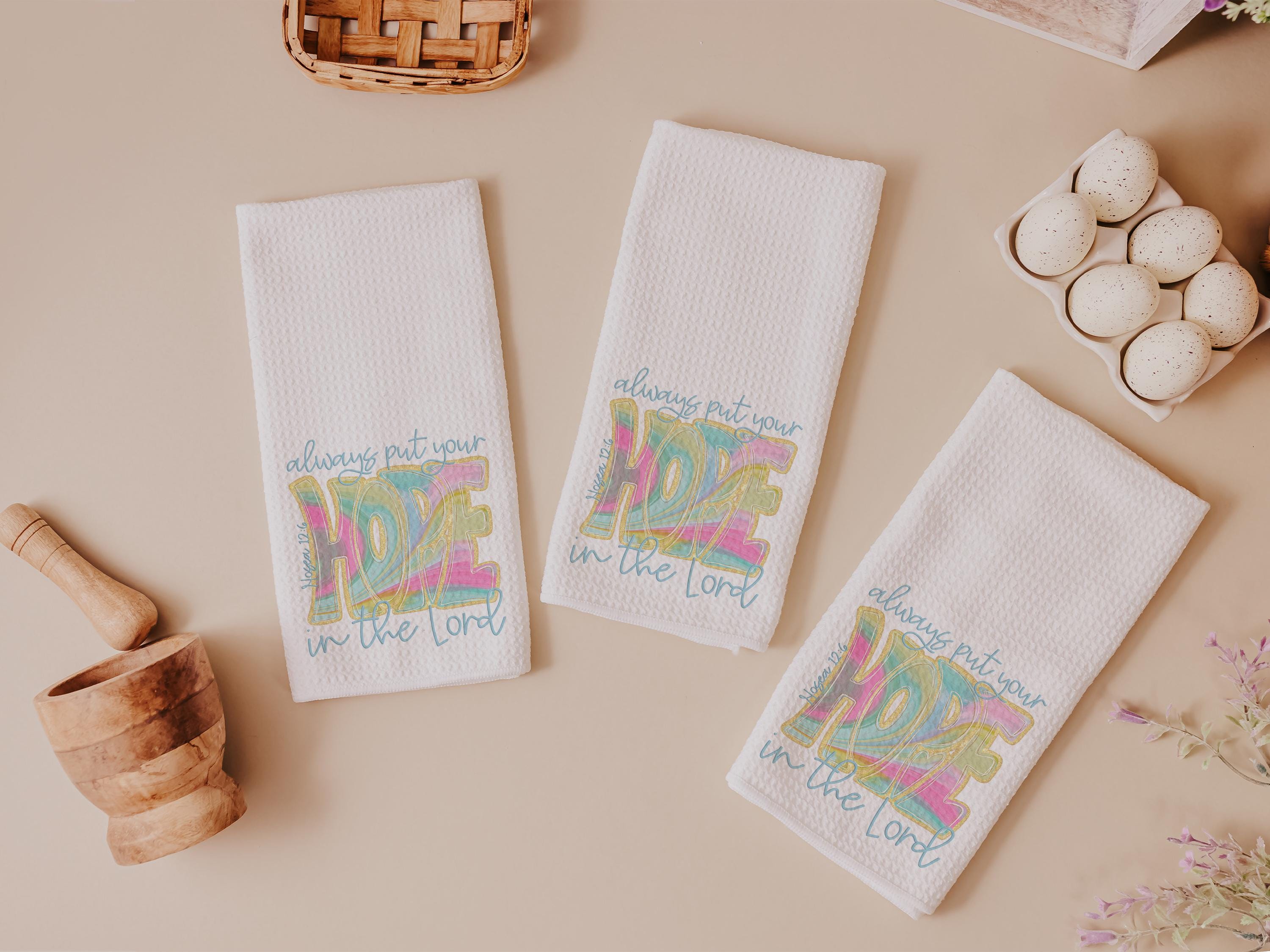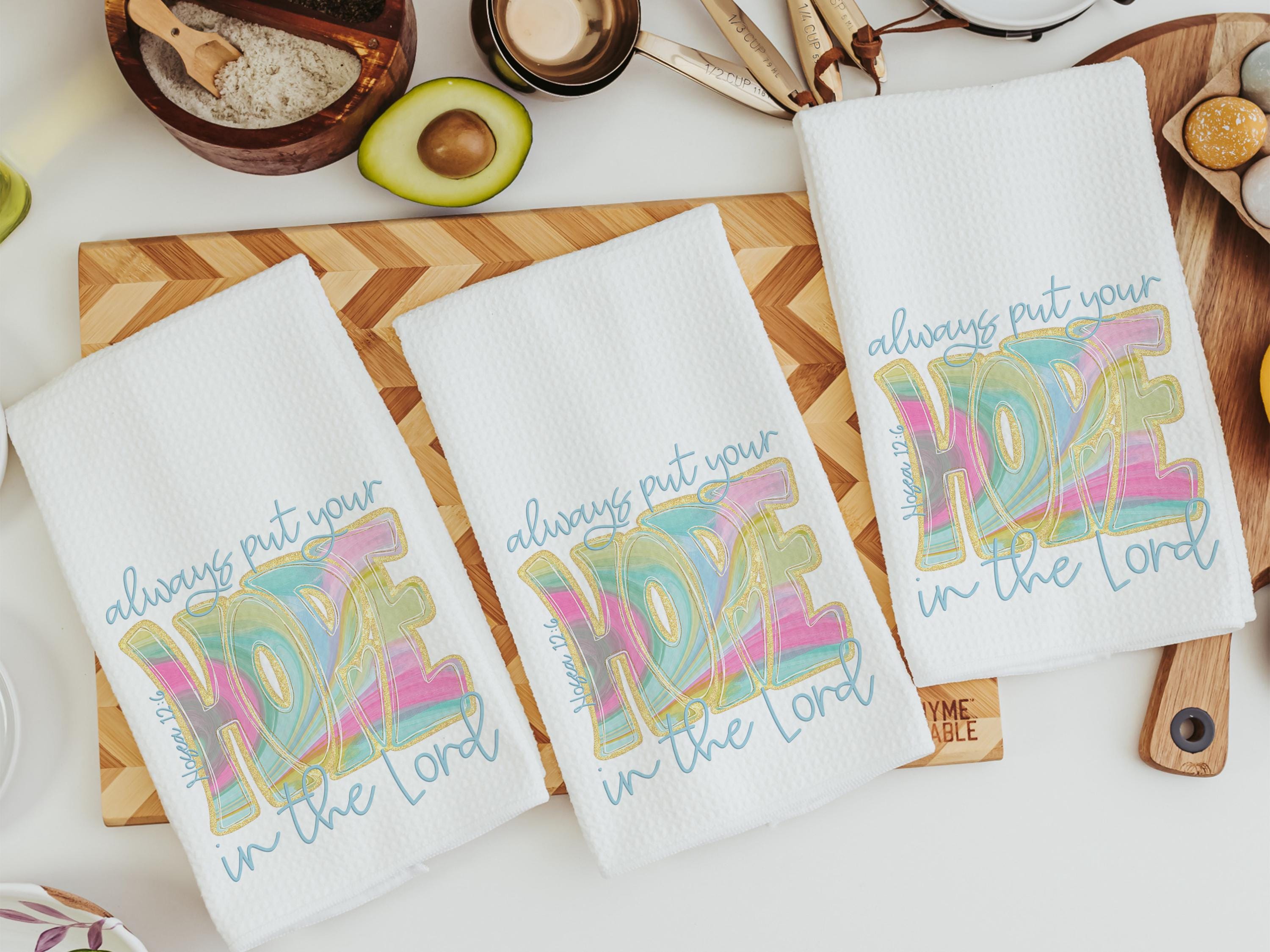 hope in the Lord kitchen towels, religious kitchen decor, faith gifts for her, Bible verse Christian gifts for women inspirational hand
