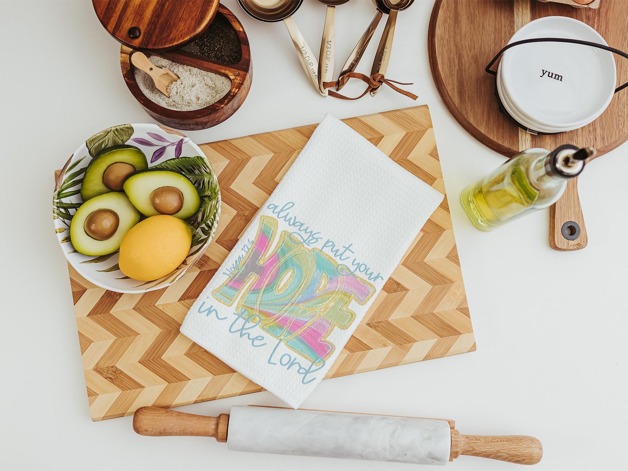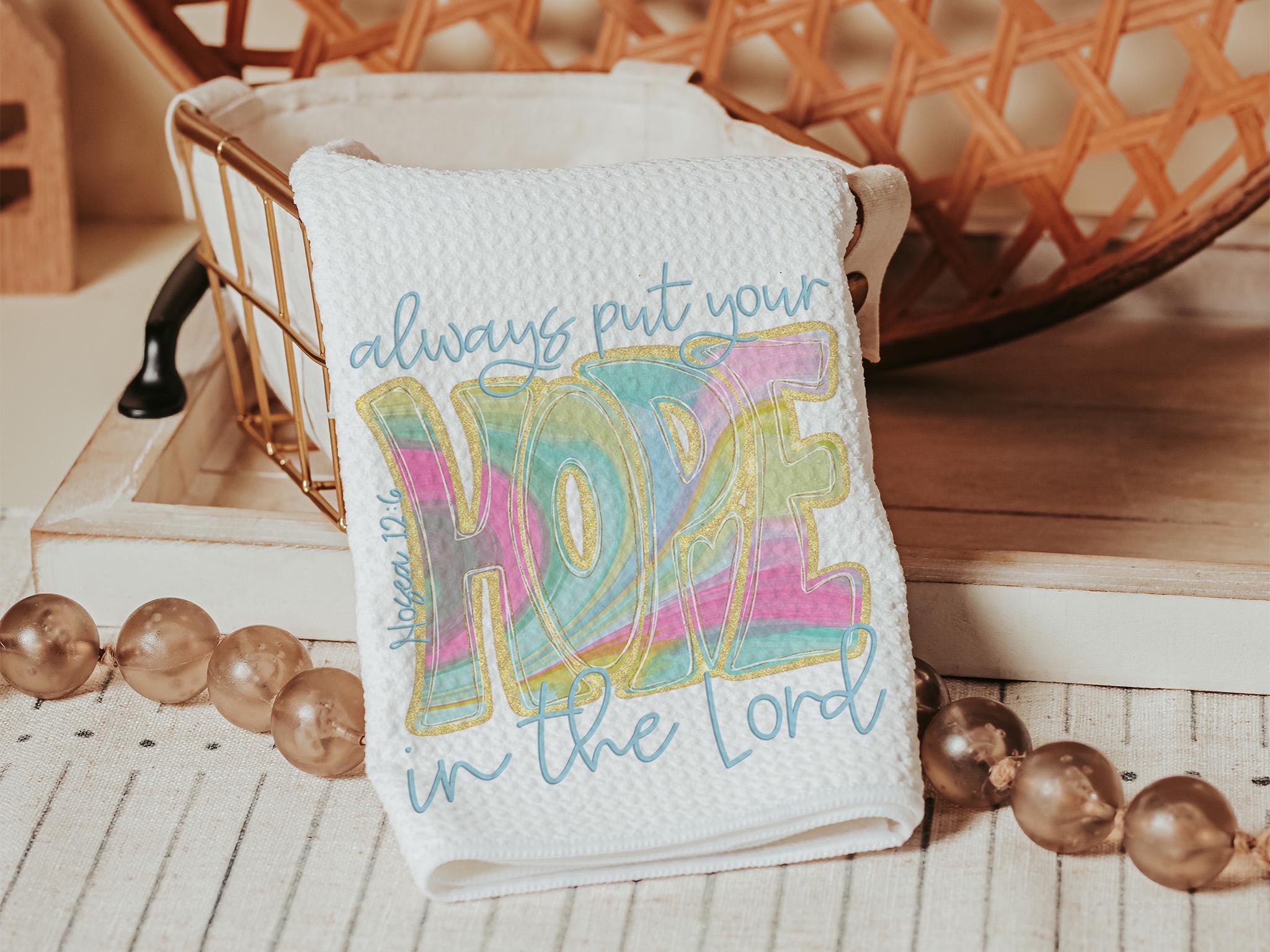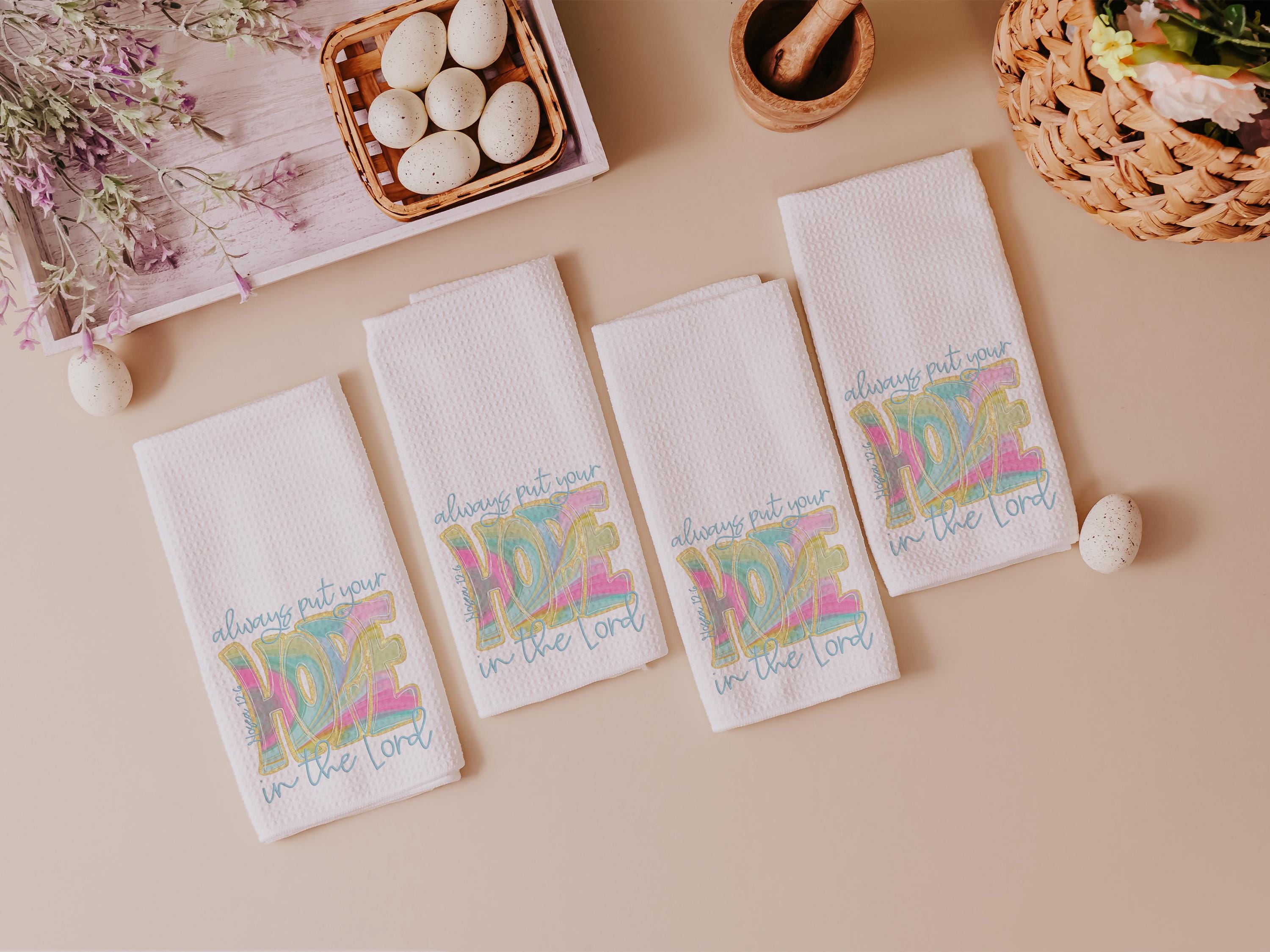 Bringing faith and inspiration to everyday spaces, these Always Put Your Hope in the Lord kitchen towels are a beautiful addition to religious kitchen decor or a powder room. Perfect as Bible verse gifts for women, thoughtful faith gifts for her, or inspirational surprises for best friends.