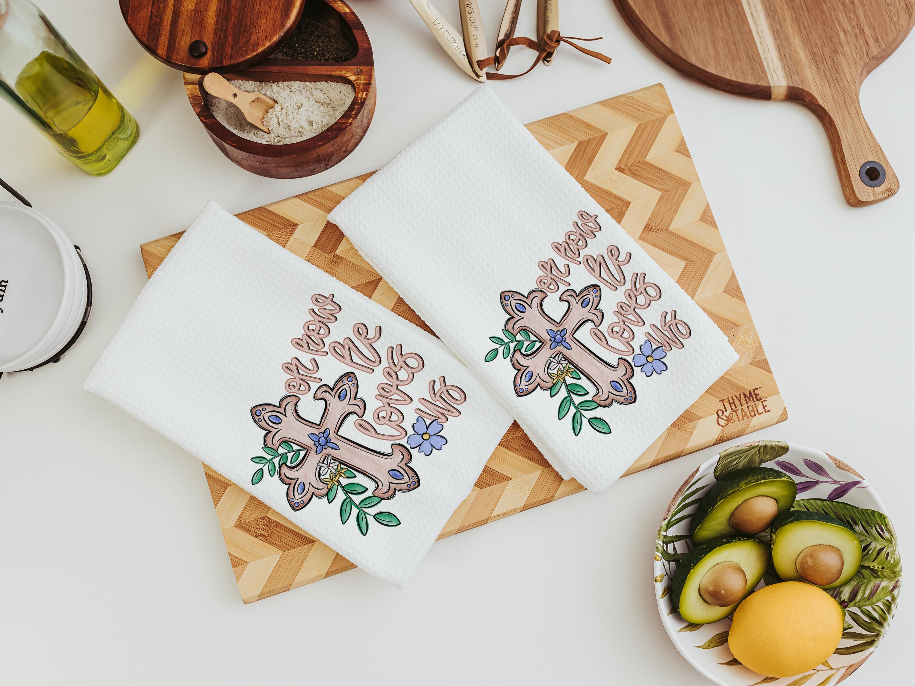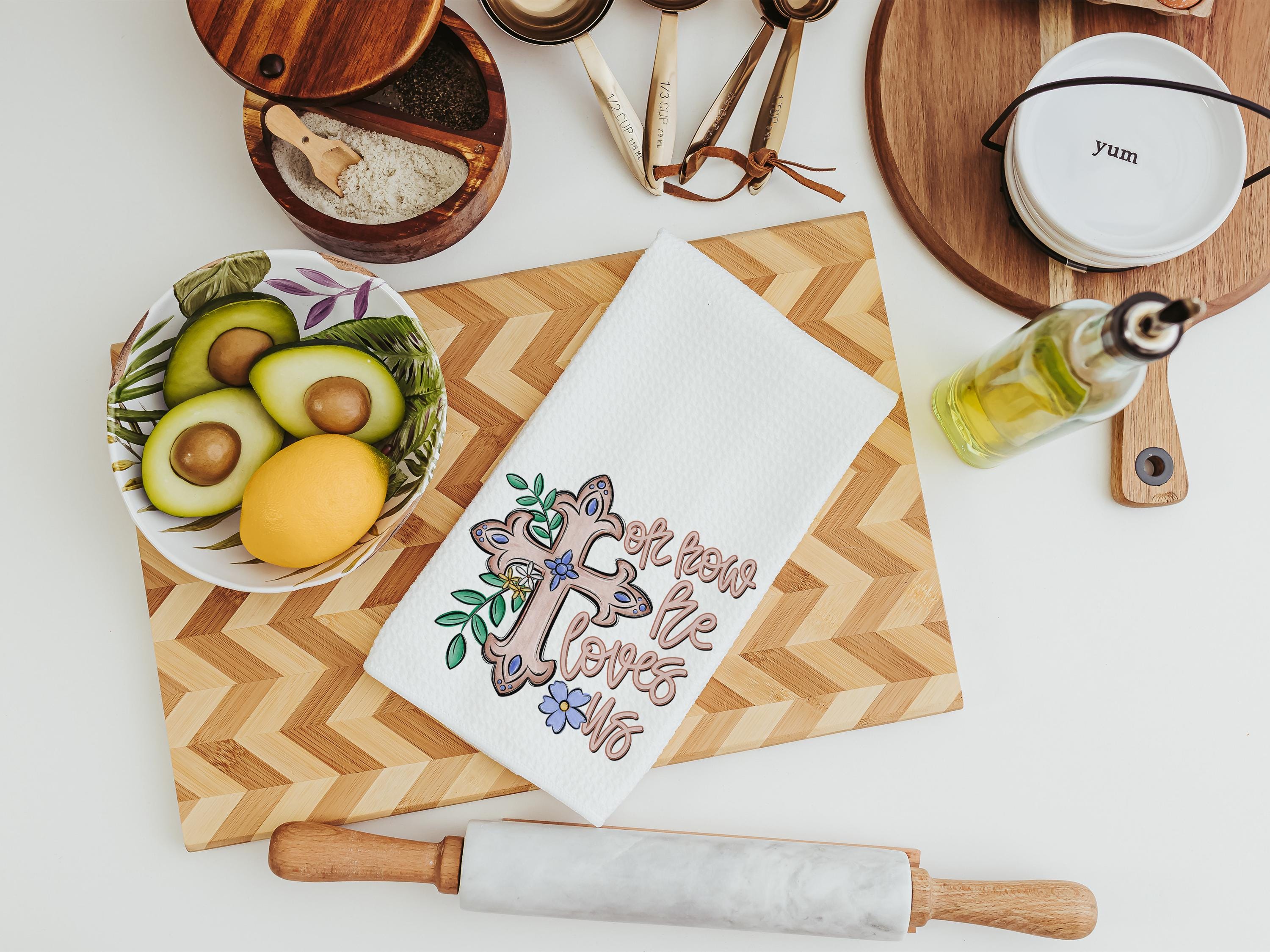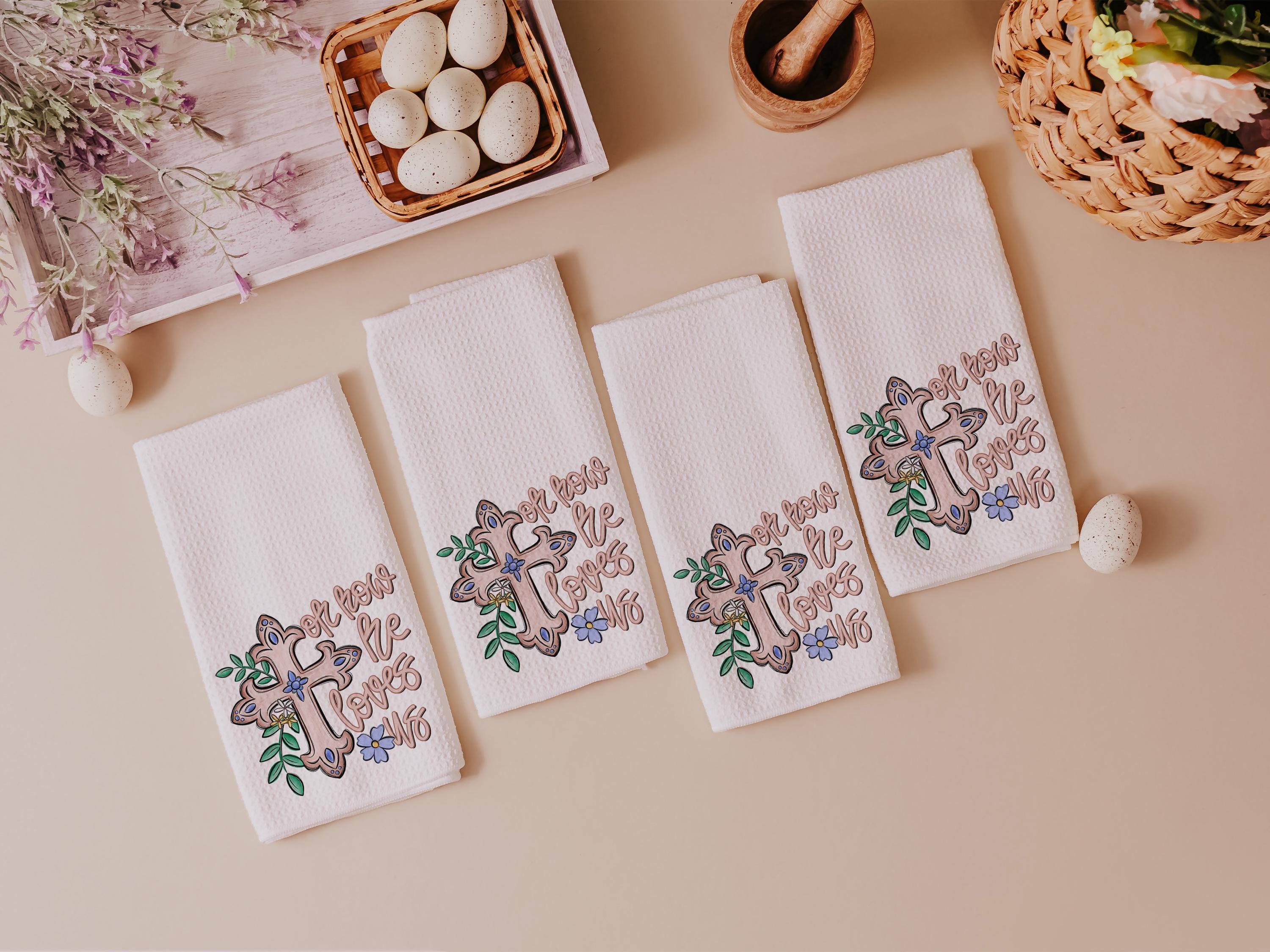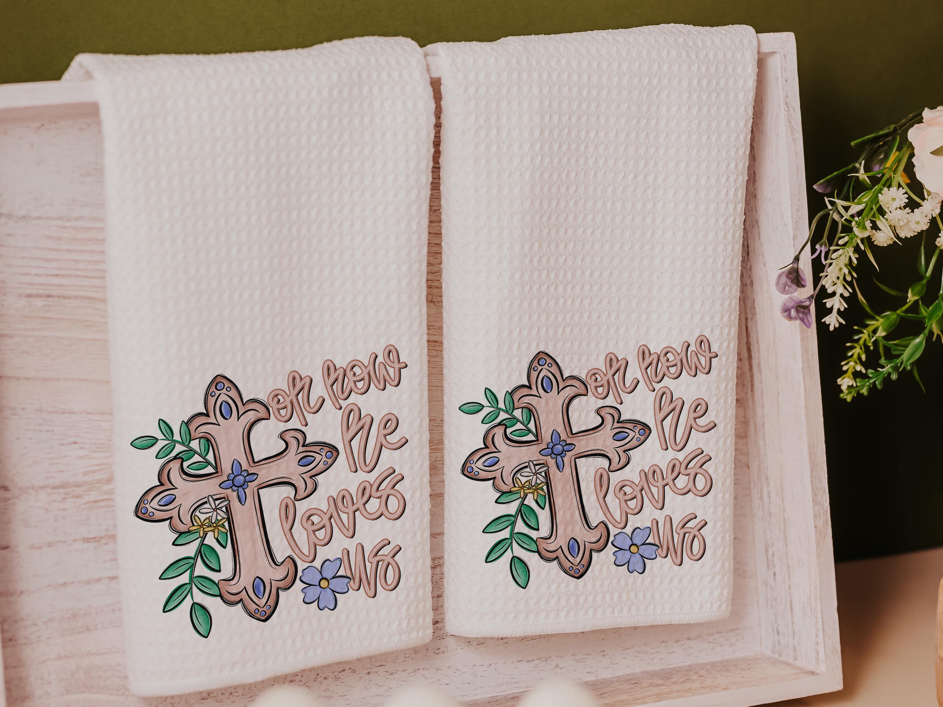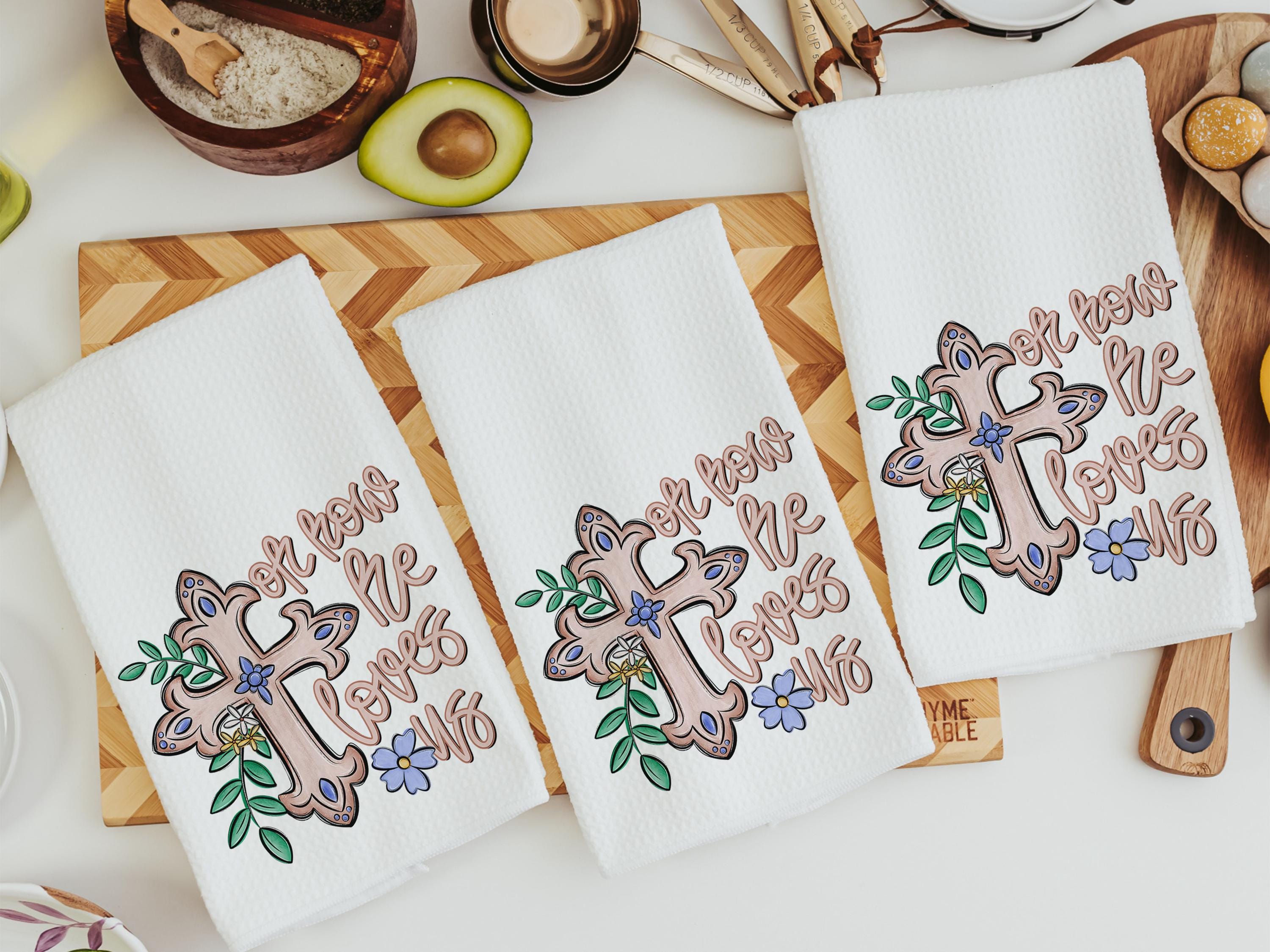 oh how he loves us Christian kitchen towels wedding gifts for godchild, faith gift for her, floral hand towels for bathroom, prayer warrior