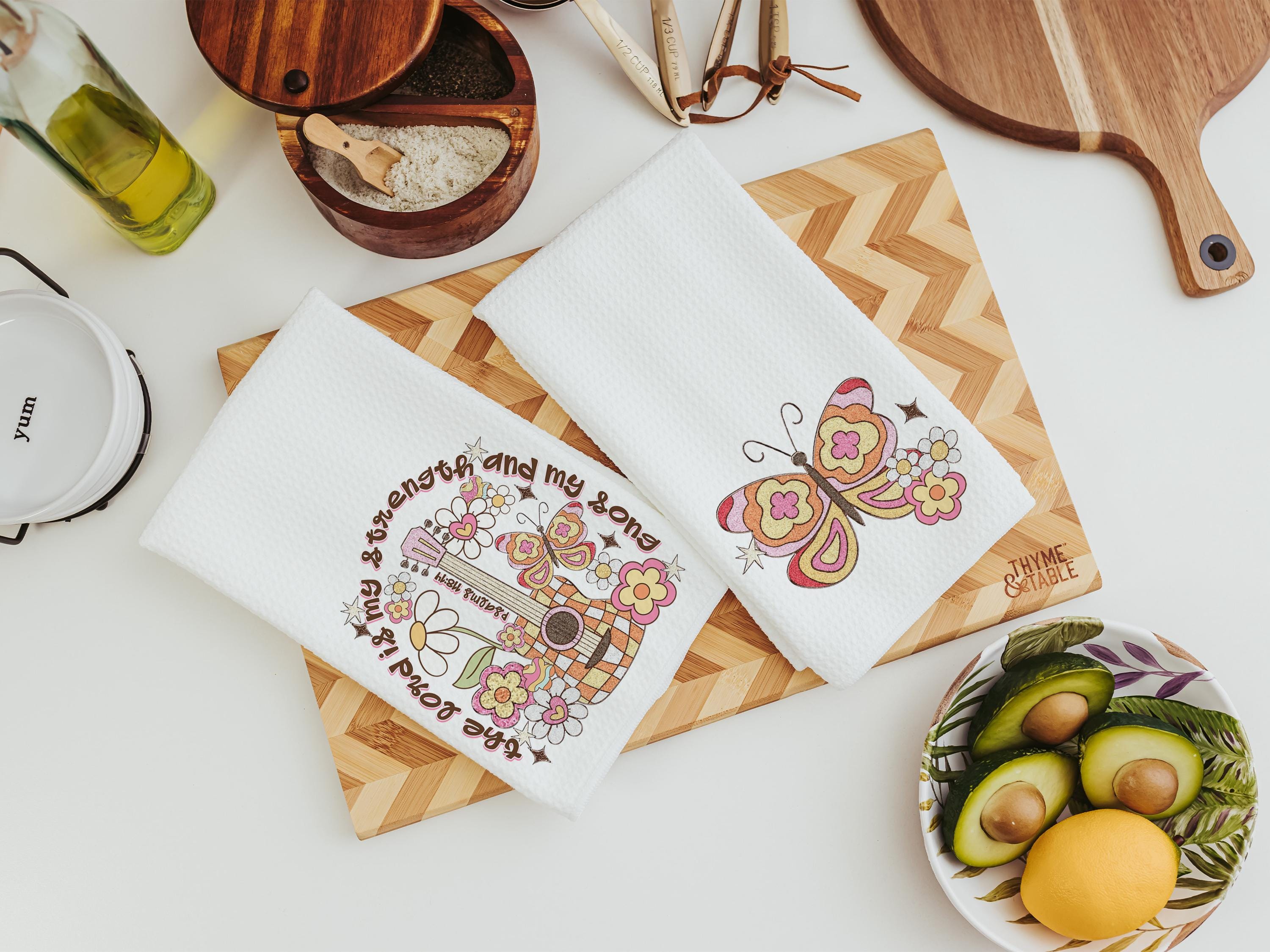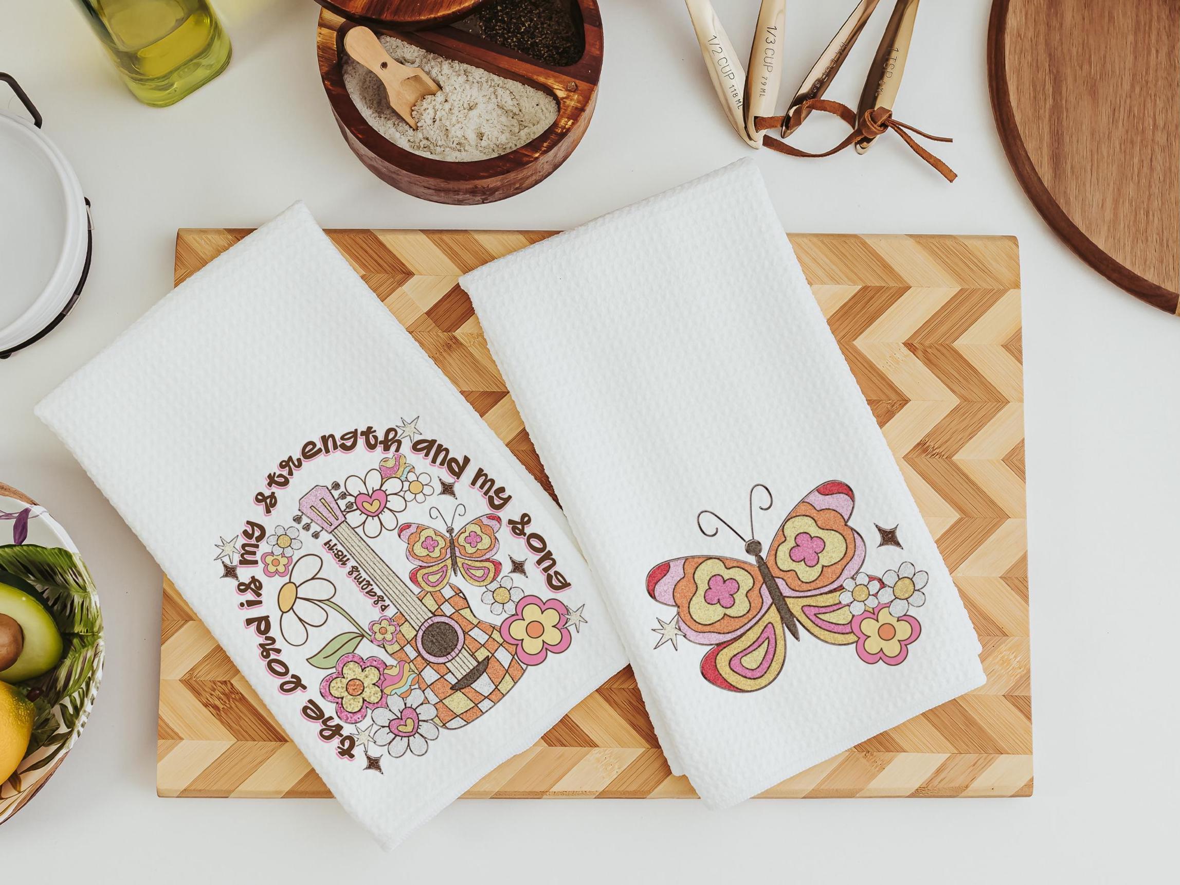 the Lord is my strength scripture kitchen towels, Christian kitchen decor, Psalm 118:14 Bible verse gifts for girlfriend, butterfly gifts