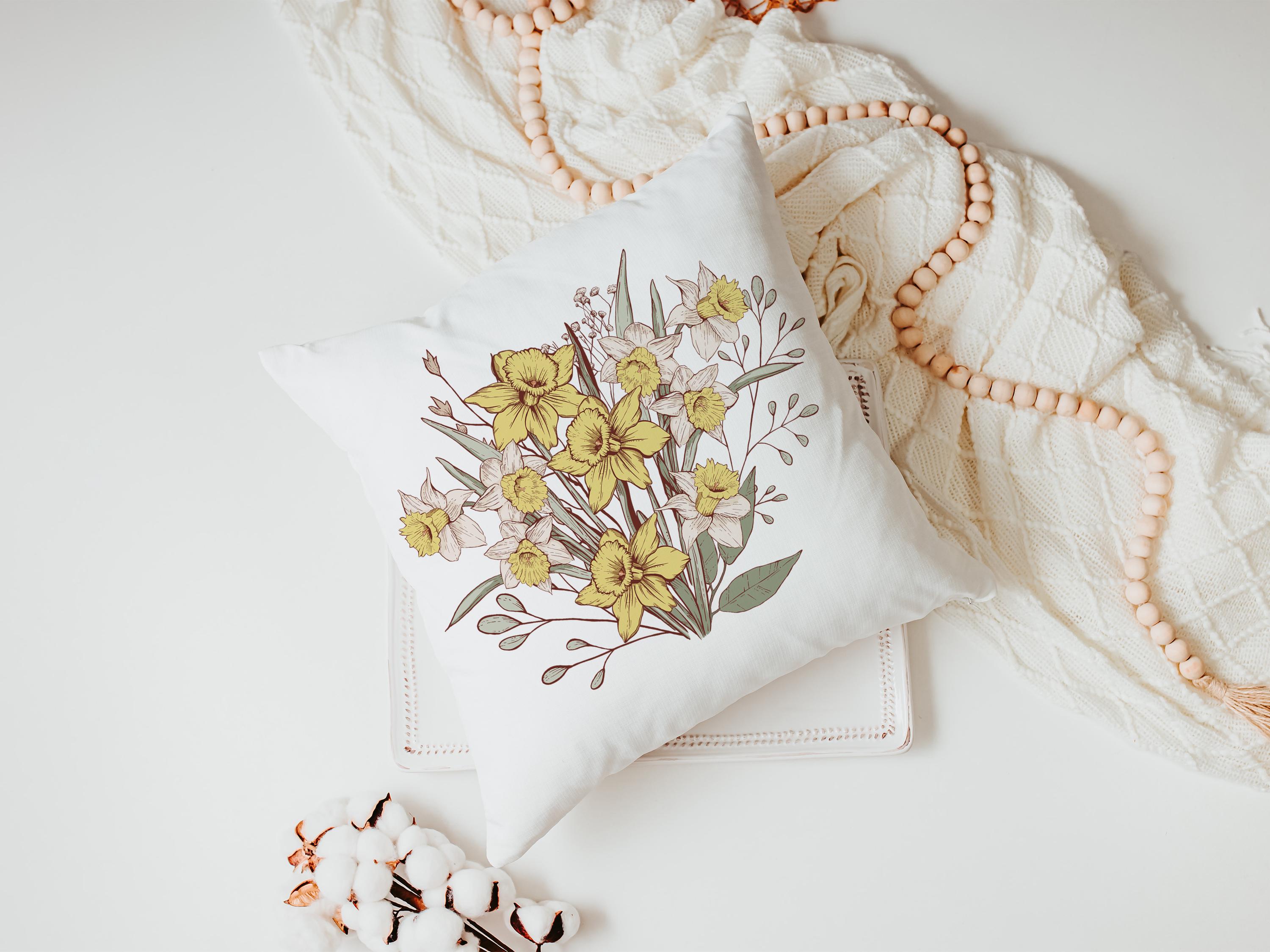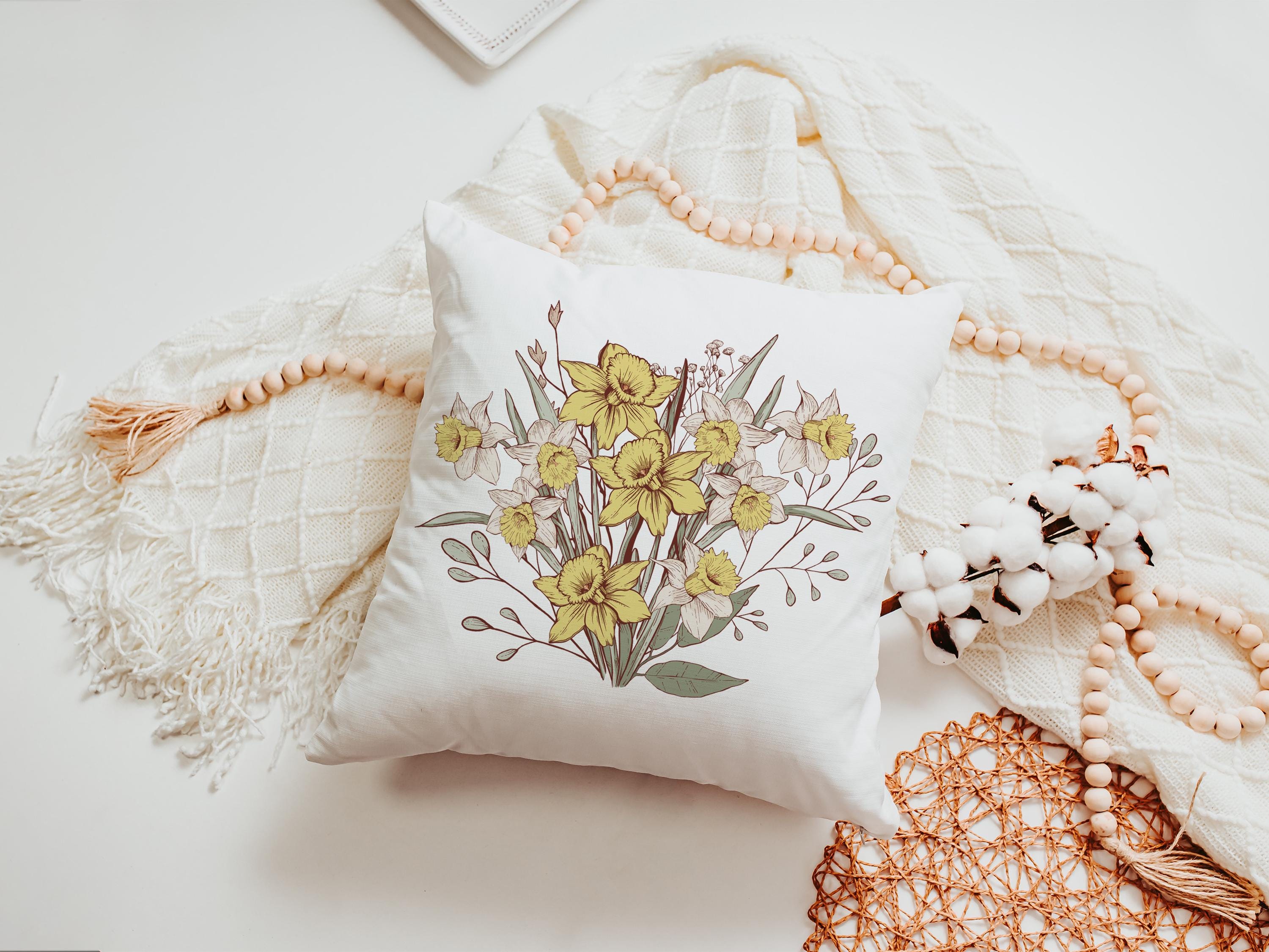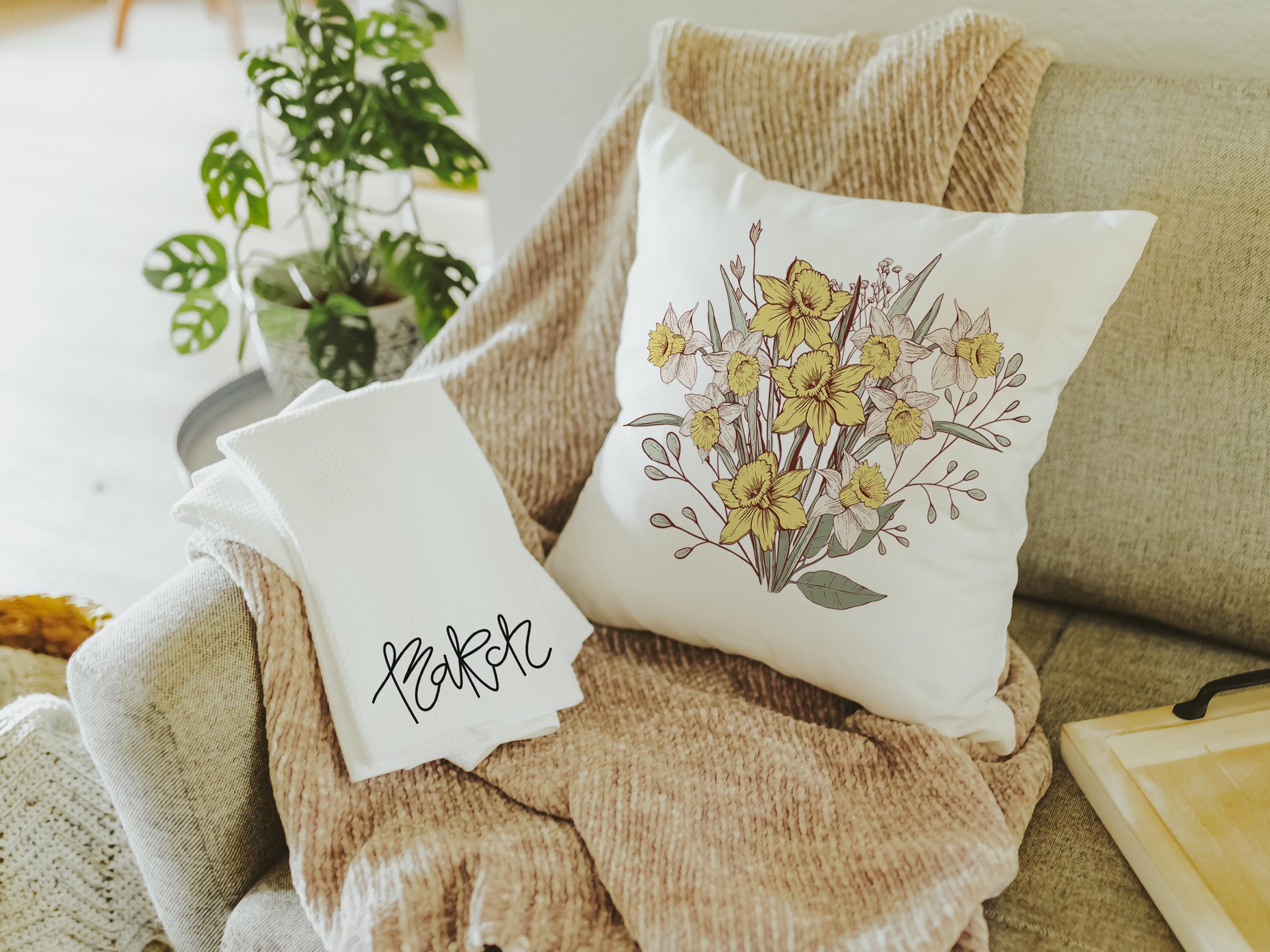 Daffodil accents and custom birth flower style make this throw pillow and coordinating towel a meaningful gift for March birthdays. A thoughtful choice for Mom or anyone who loves floral decor for the sofa and kitchen. Sold separately or as a matching set.