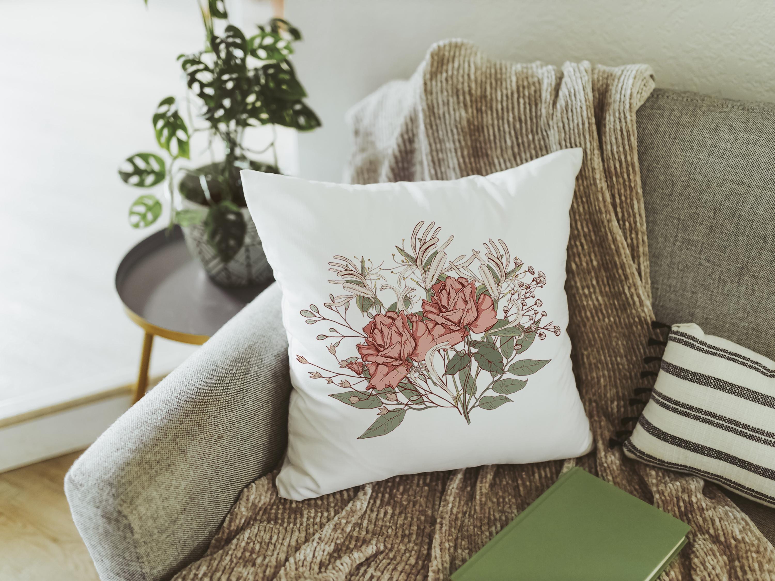 june birthday kitchen towel, muted colors cottage roses throw pillow for bedroom, June birth month flower gifts for Mom, honeysuckle decor