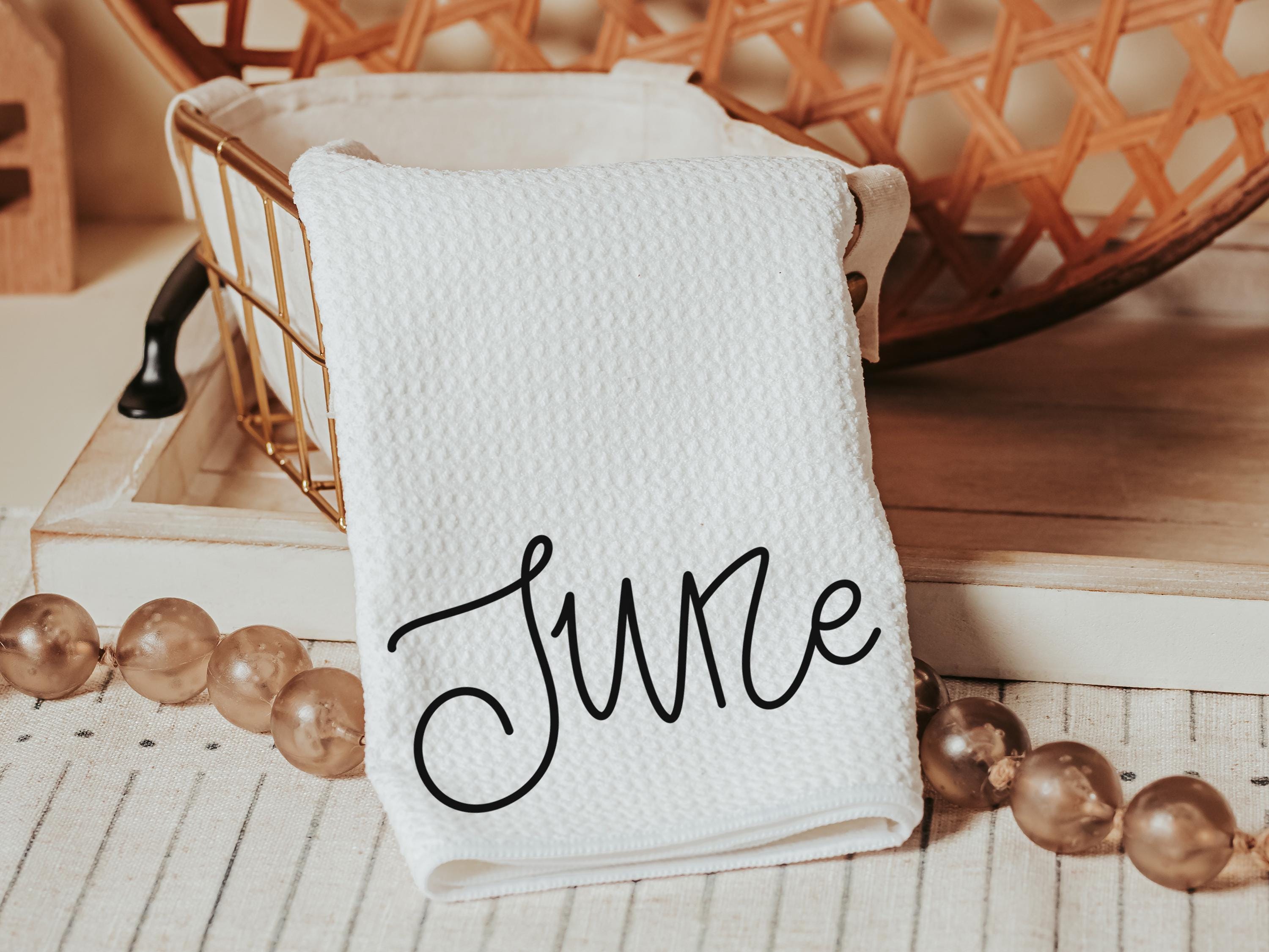 Cottage roses and honeysuckle details bring a beautiful June touch to this birthday gift set. A thoughtful choice for Mom, your best friend, or anyone who loves cozy decor. Includes a kitchen towel and throw pillow with muted colors—available as a set or sold separately.