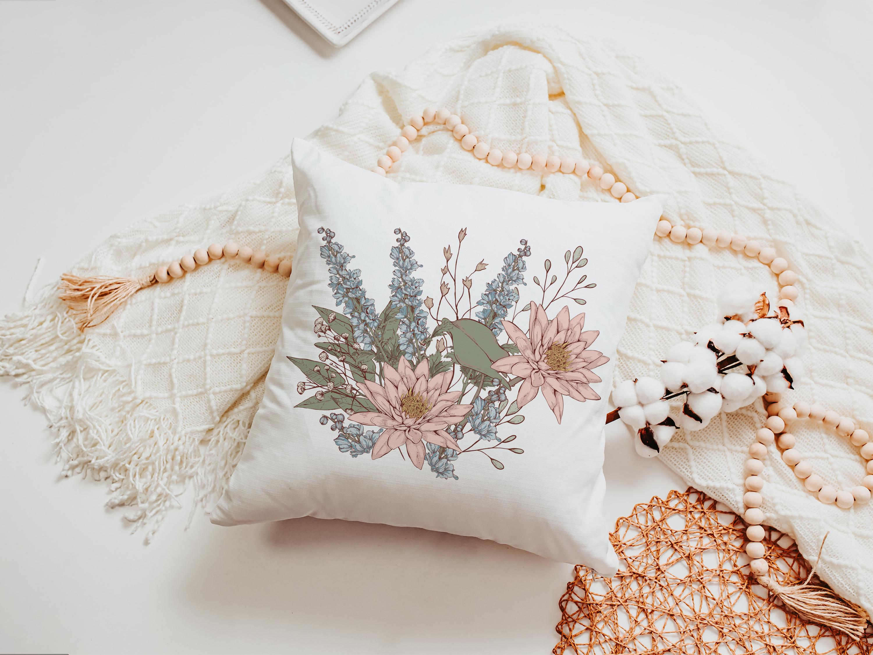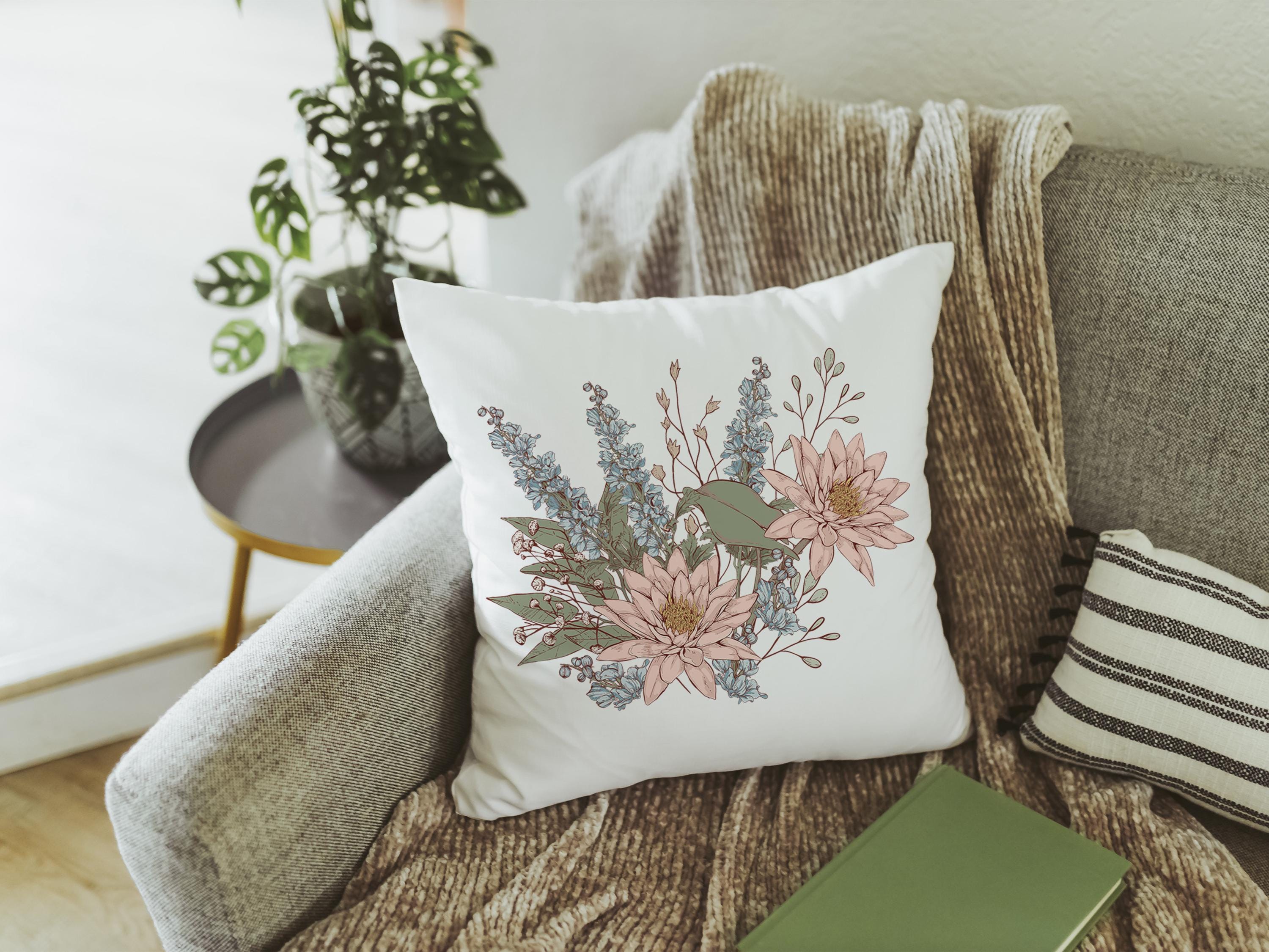 Water Lily Larkspur July Birth Month Throw Pillow & Towel