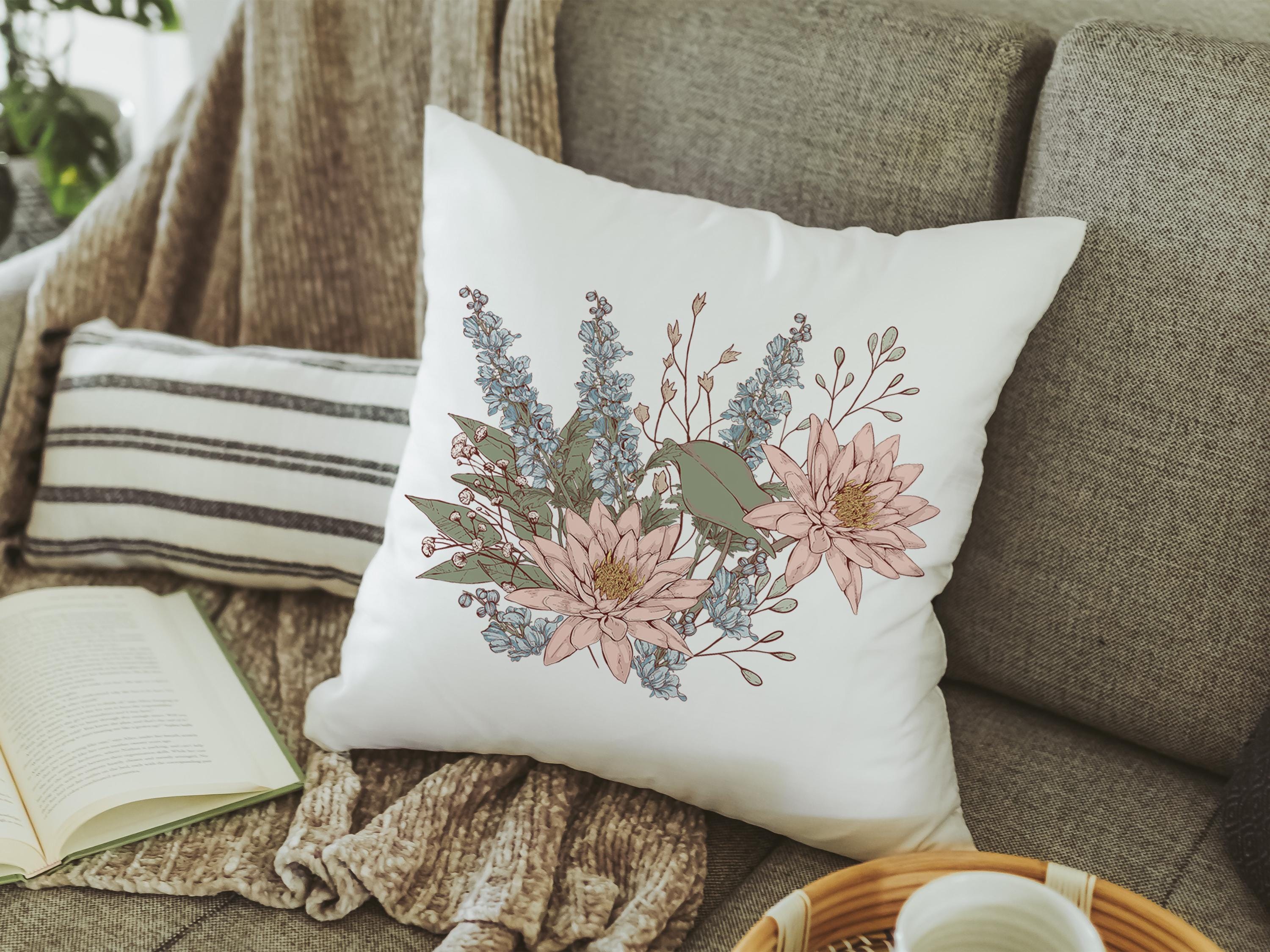 Water lily and larkspur florals create a beautiful July-themed accent for the bedroom. This coordinating throw pillow and black and white July towel set make a thoughtful birth month flower gift for Mom or a special July birthday gift for her. Items can be purchased separately or as a complete set.