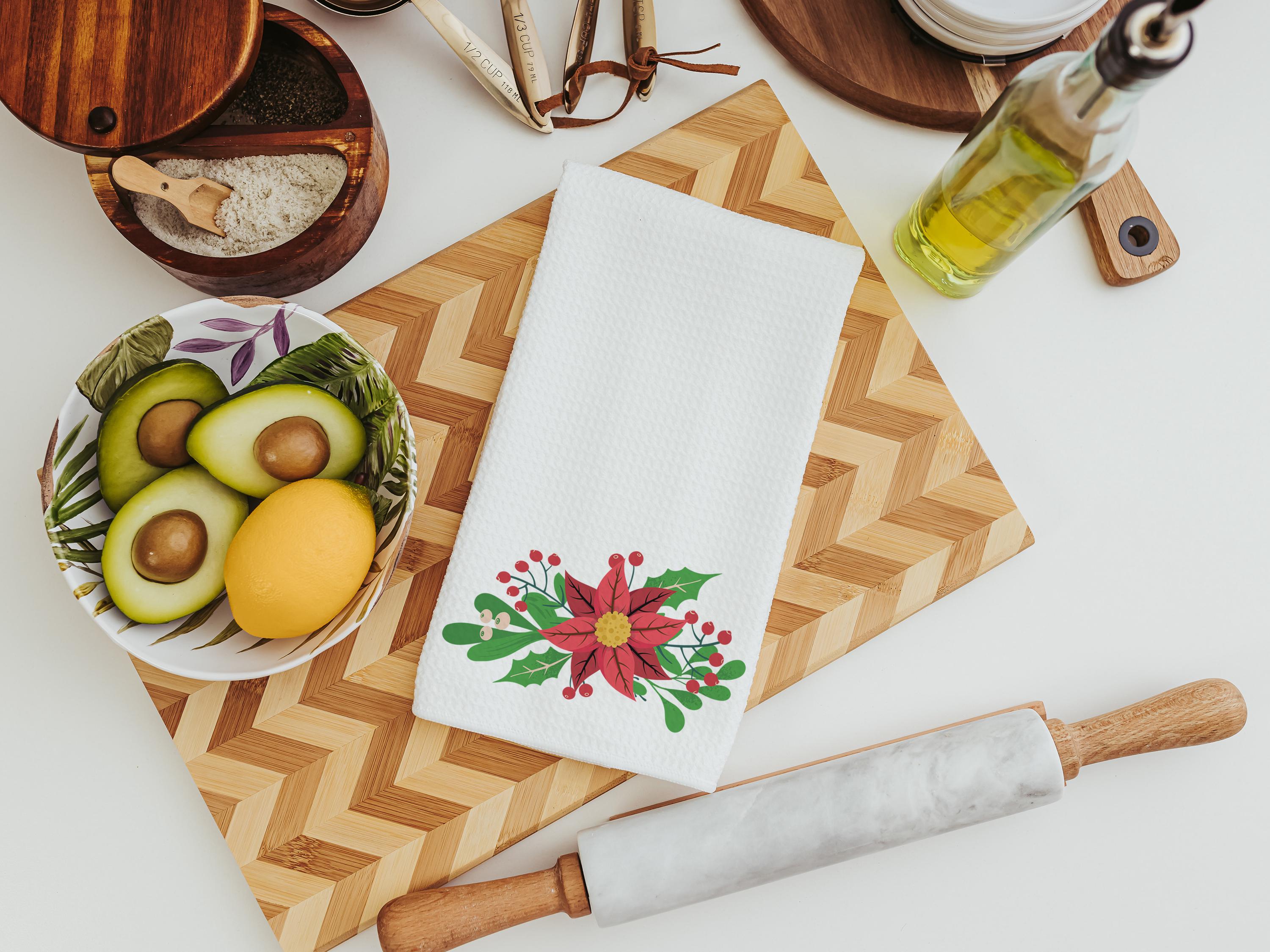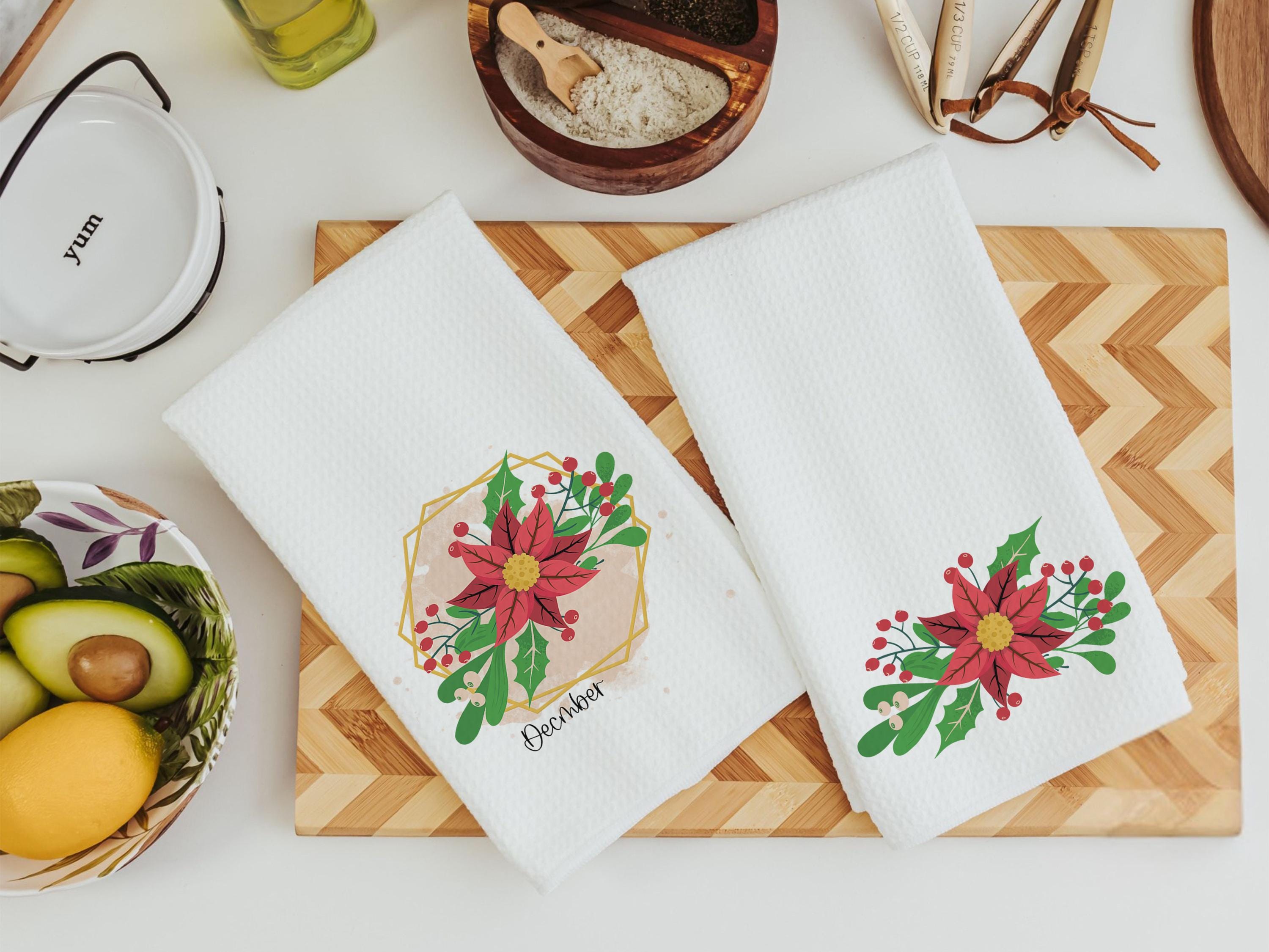 Holly, berries, and red poinsettias bring a festive December touch to this Christmas throw pillow and coordinating towels. A beautiful birth flower gift or a thoughtful December birthday surprise—perfect for the sofa, kitchen, or college apartment. Items available separately or as a set.