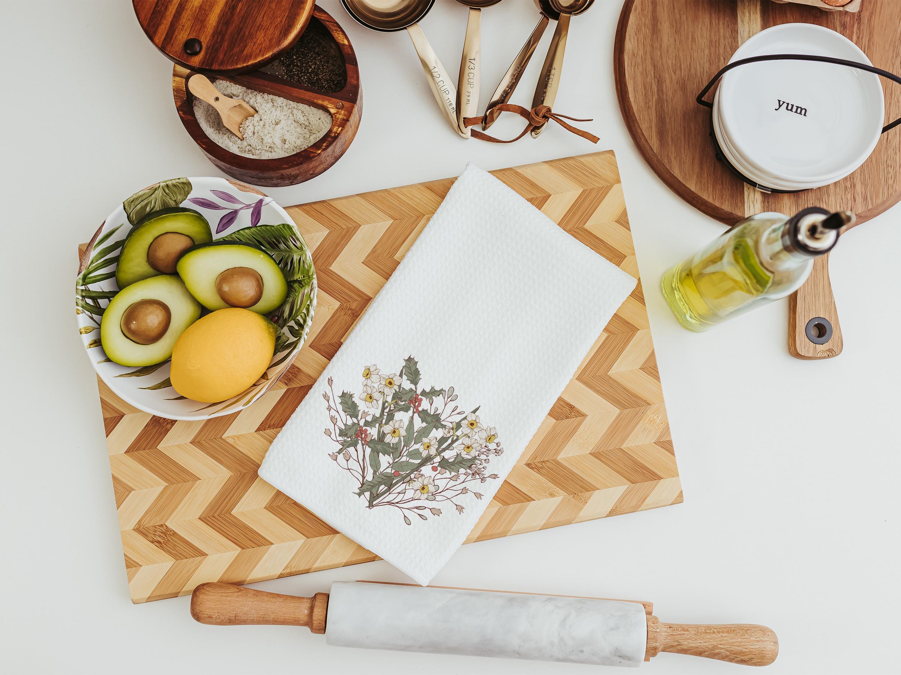 Bring a floral touch to your space with Narcissus Flower kitchen towels, inspired by the December birth flower. Perfect for the bathroom or kitchen, these make a thoughtful birthday or Christmas housewarming gift for friends.