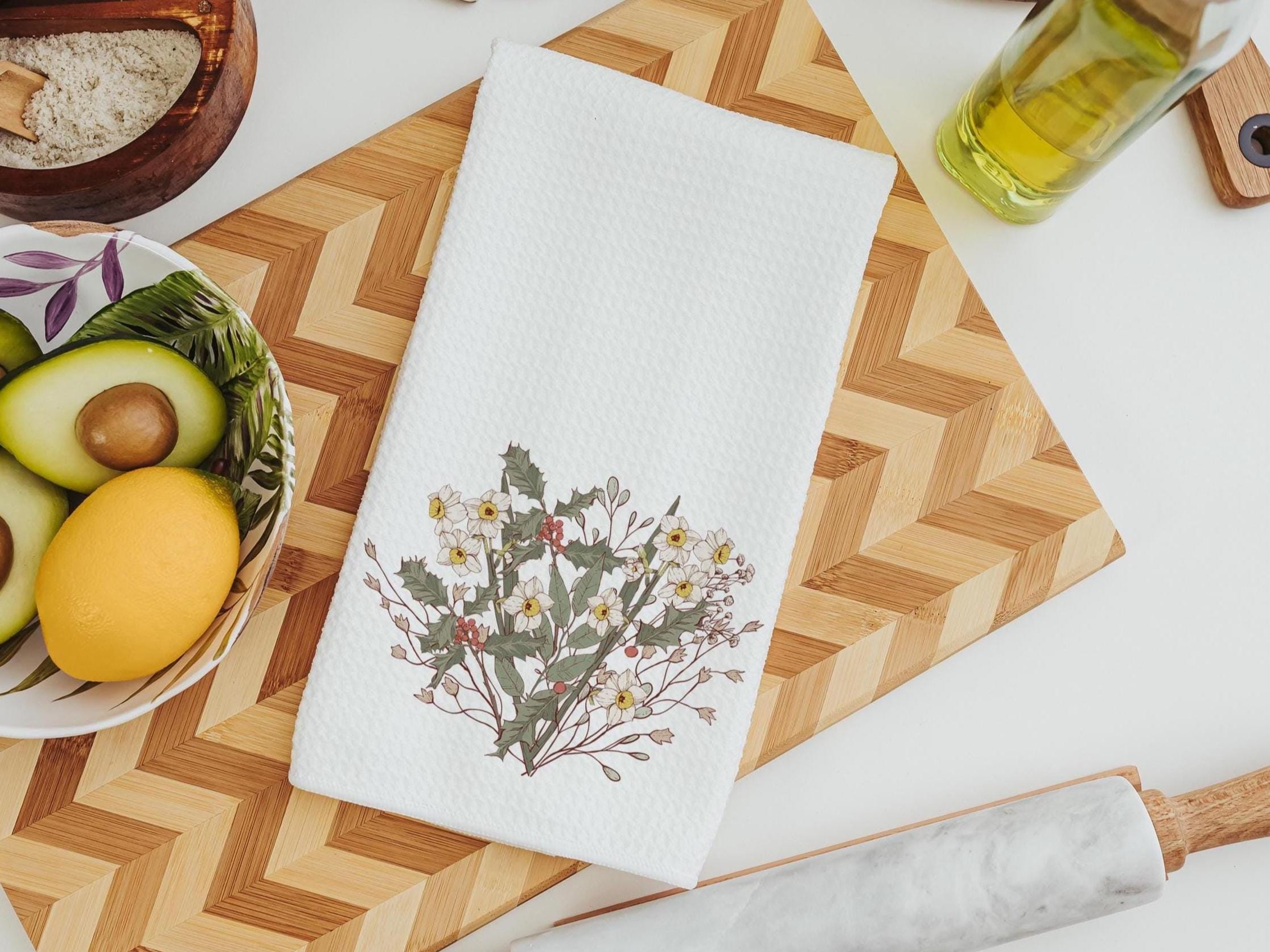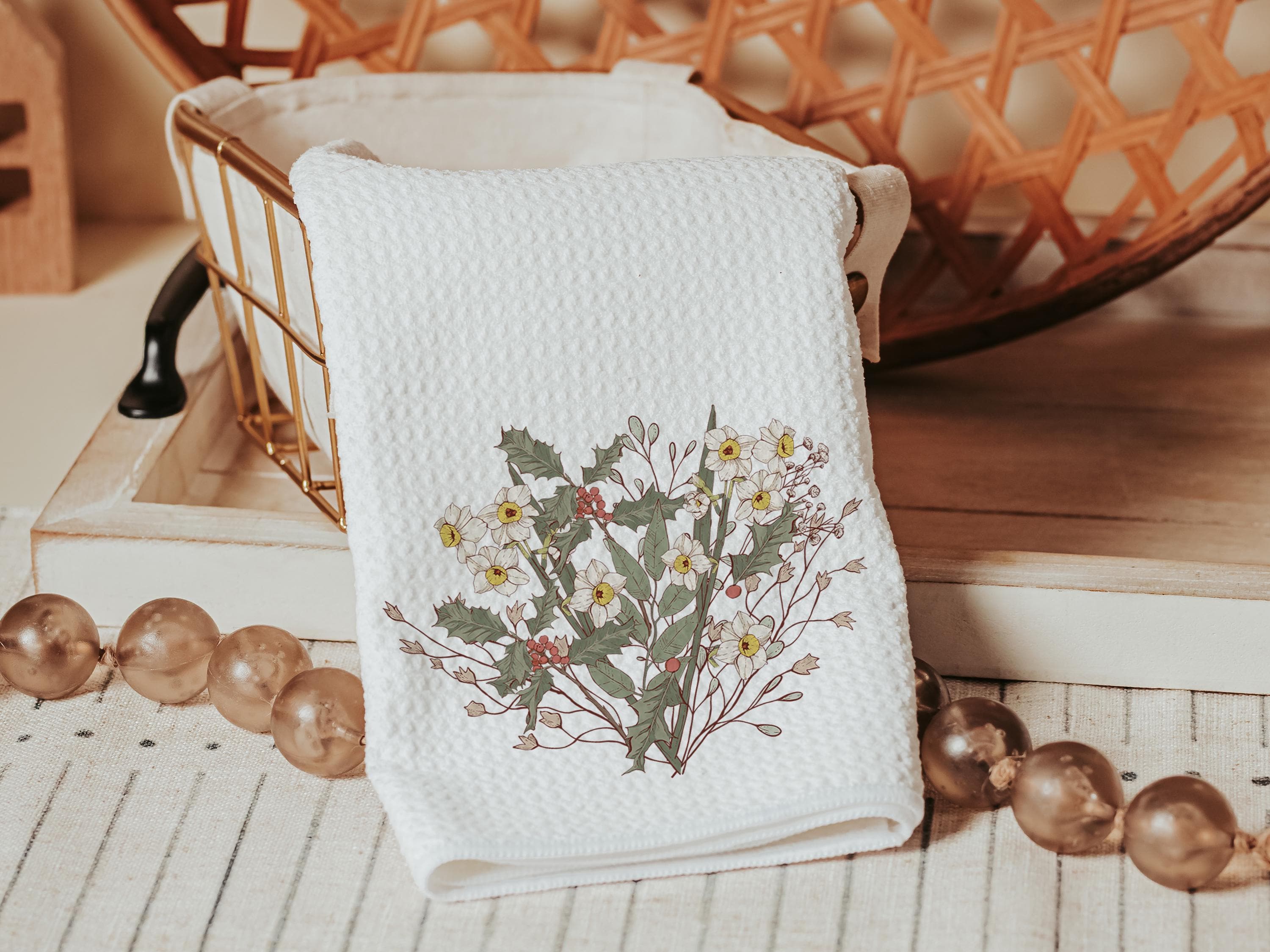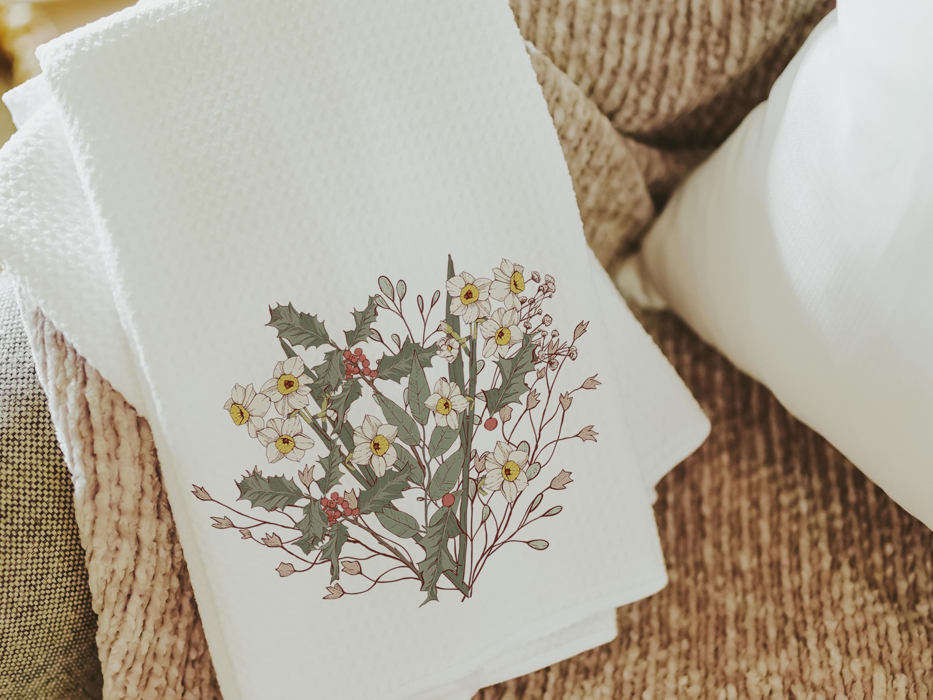 narcissus flower kitchen tea towels for bathroom, December birth flower gift for friend birthday gifts for her, Christmas housewarming gift