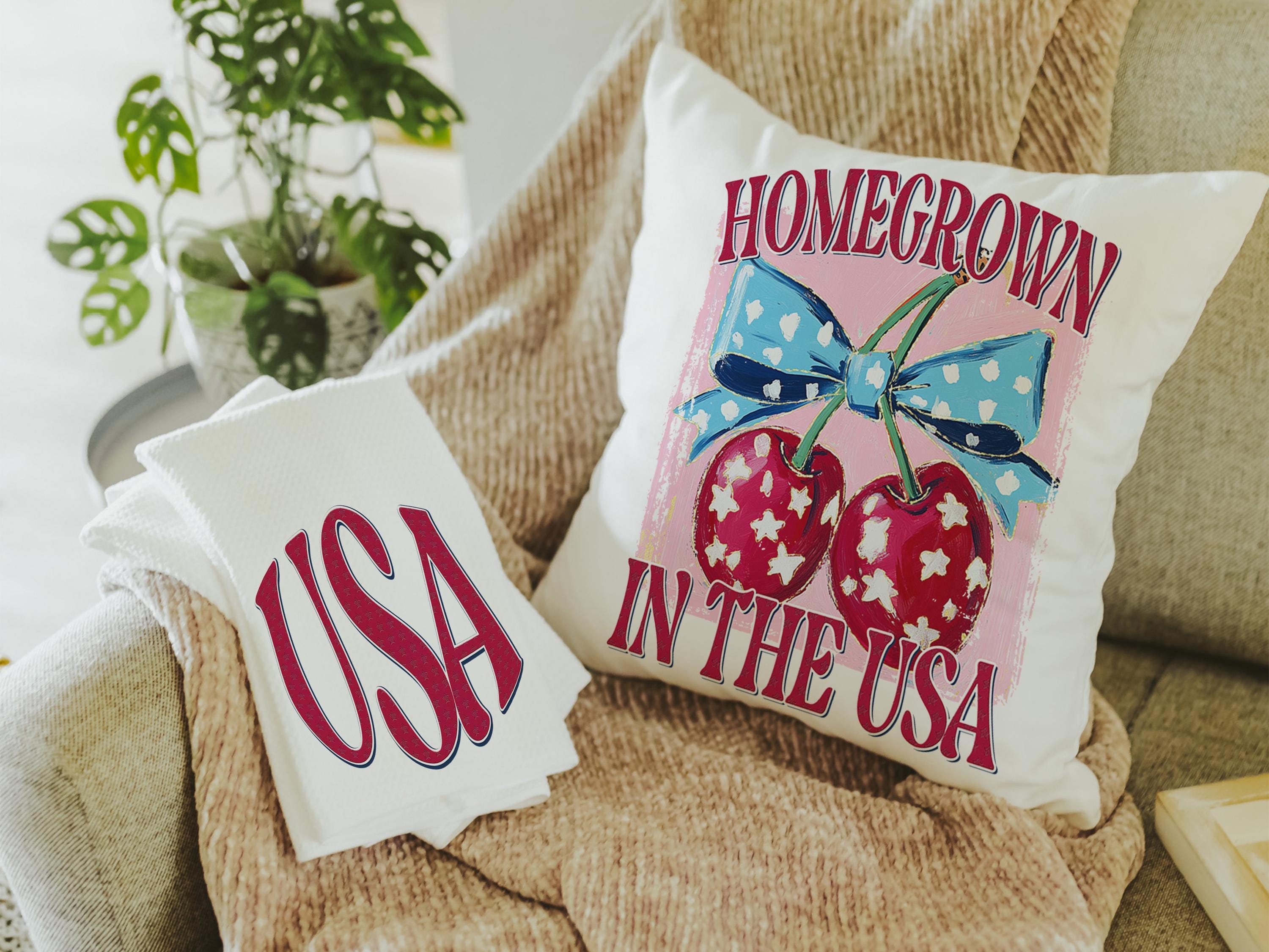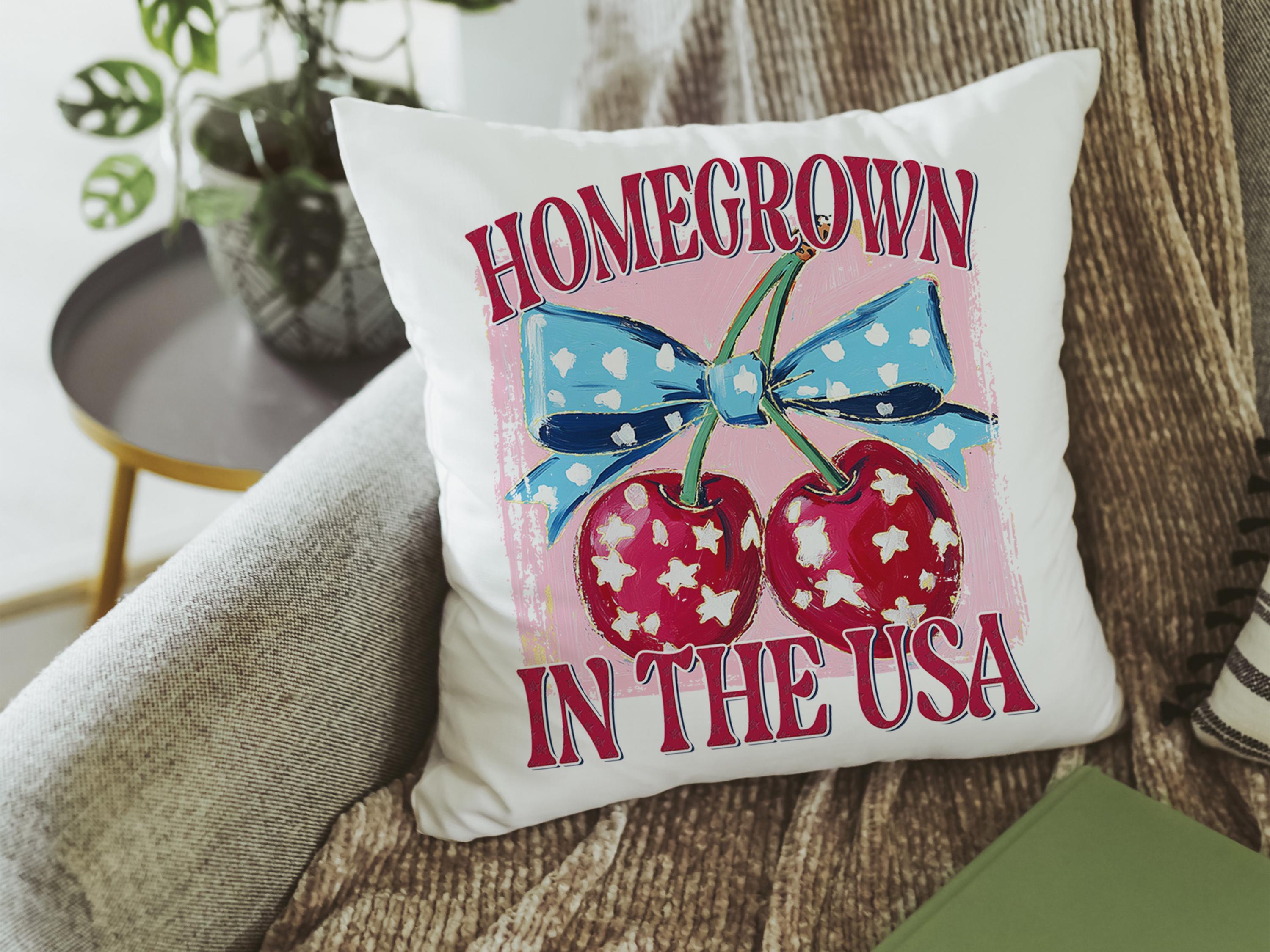 home grown cherry vibes throw pillows for porch swing, USA kitchen towel for Mom, 4th of July Americana pillow covers 18x18, patriotic gifts