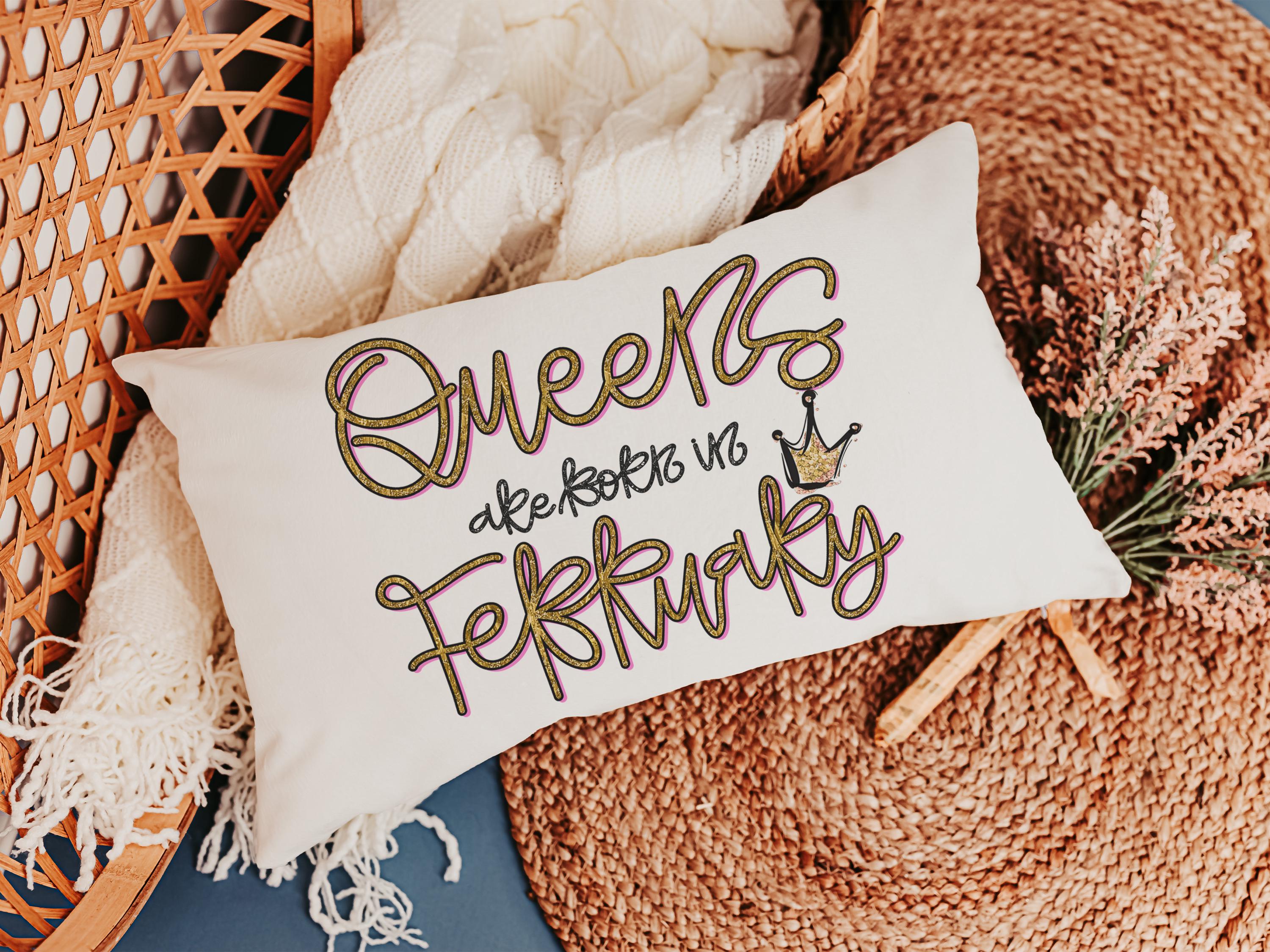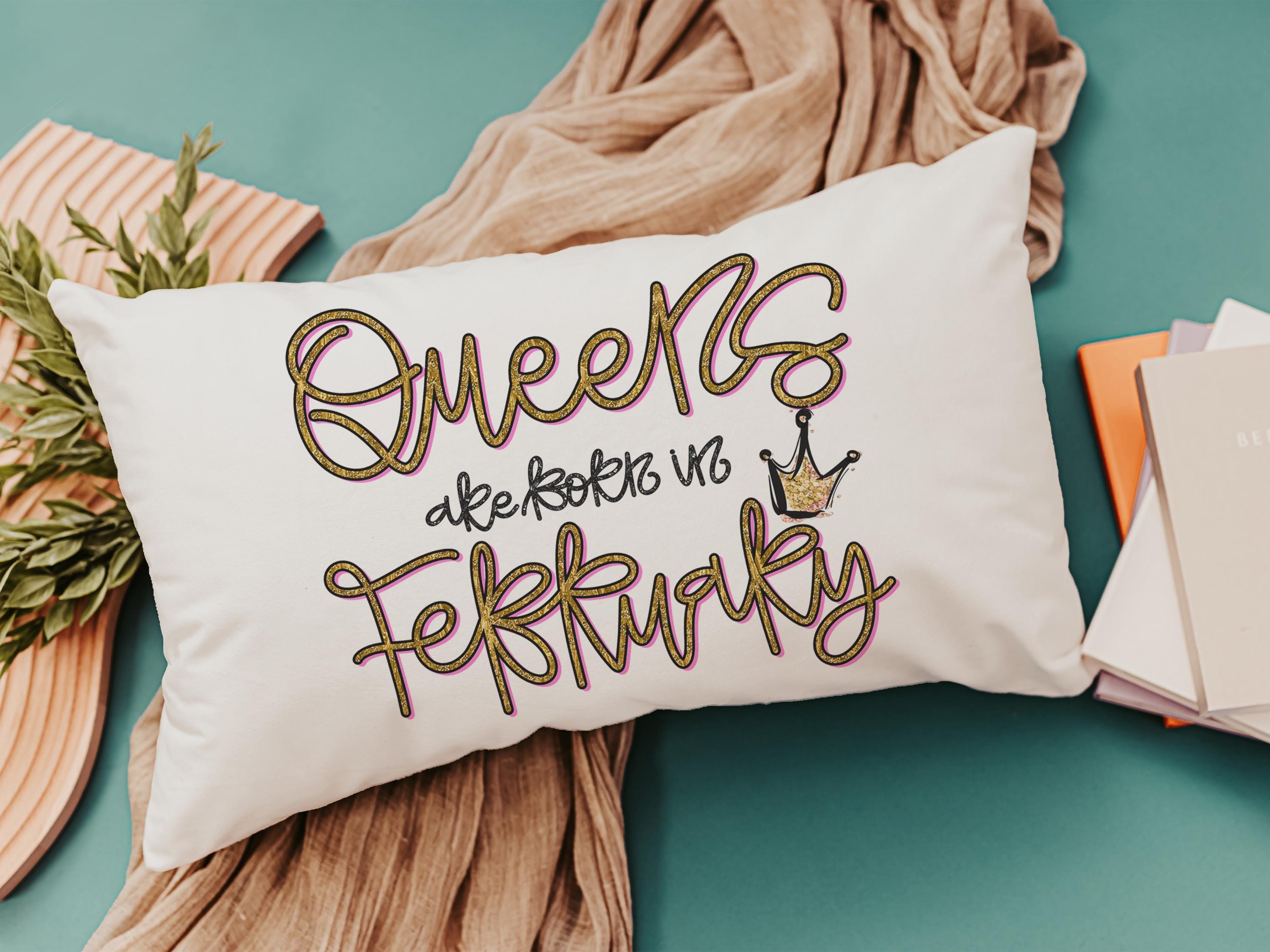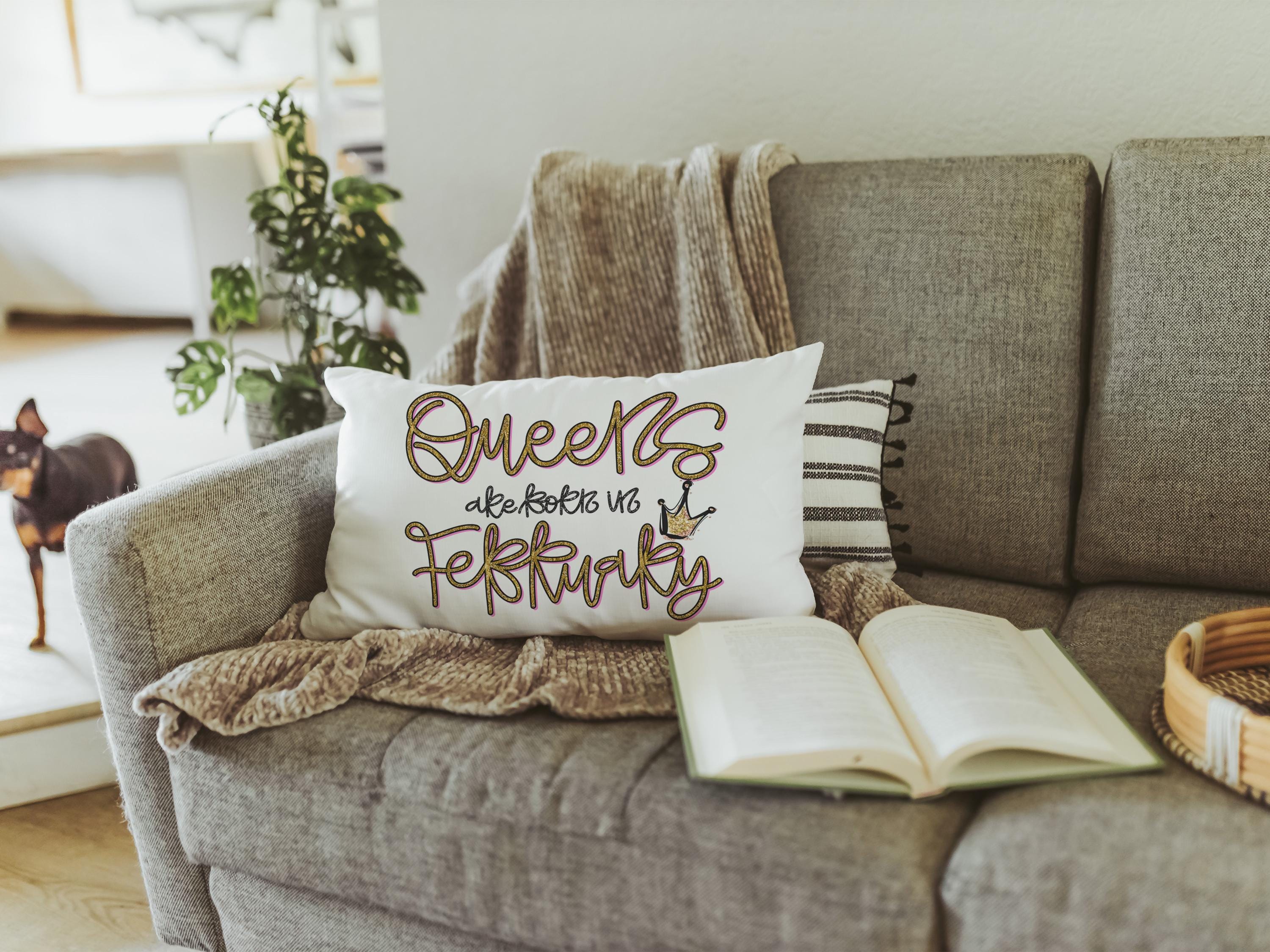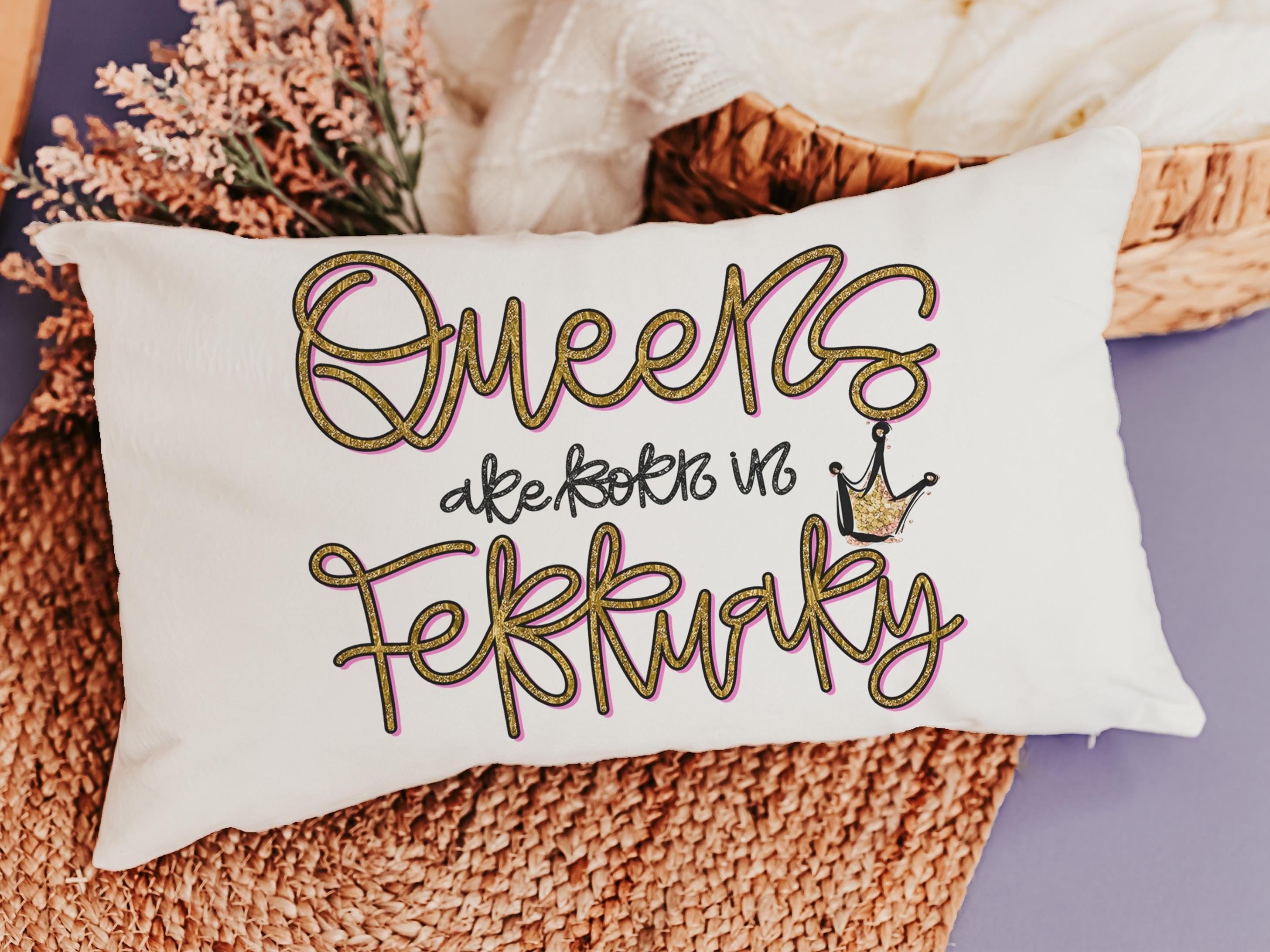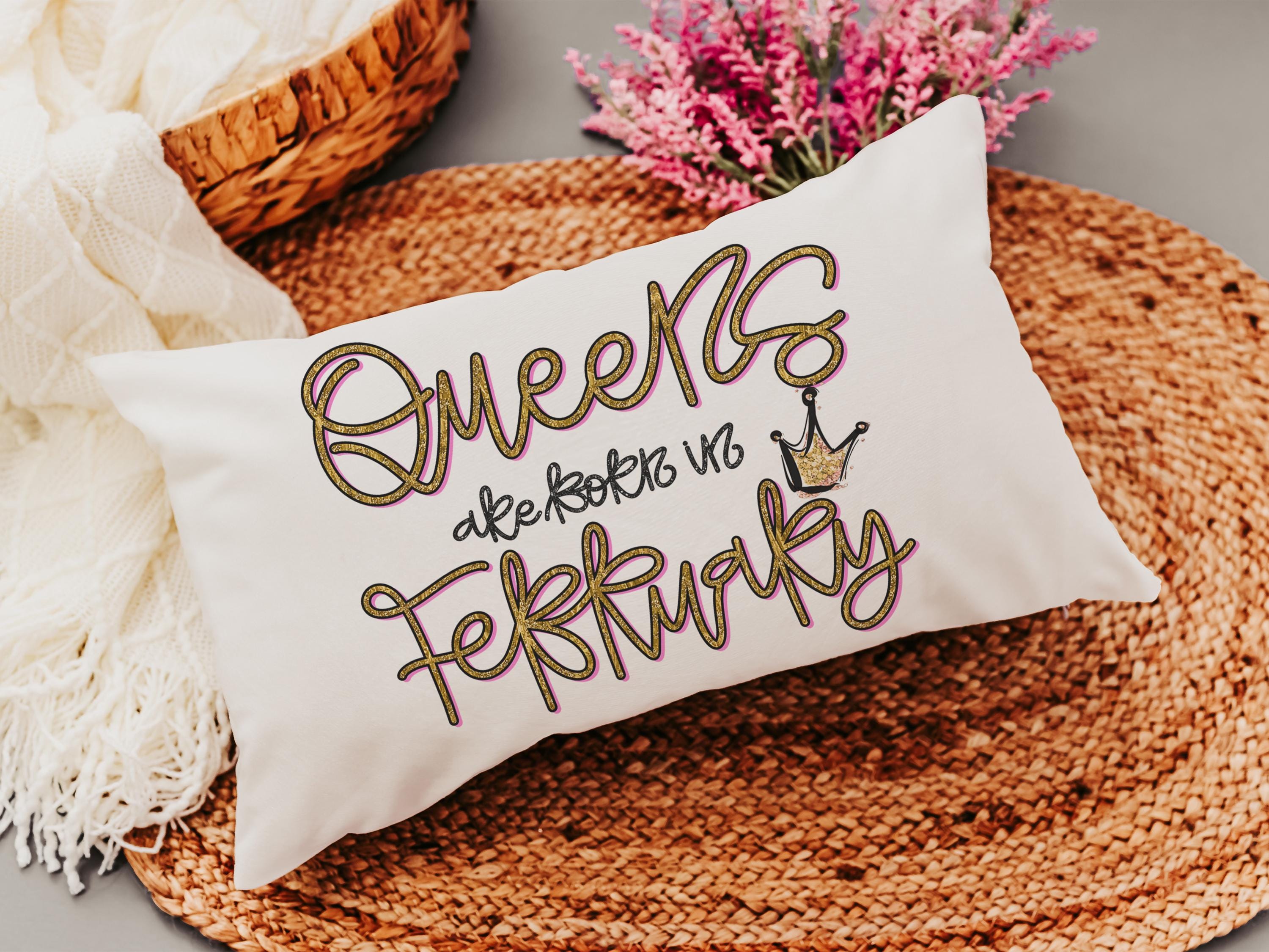 queens are born in February lumbar pillow for women, February birthday gifts for best friend, college dorm accessories for girls, fun throw