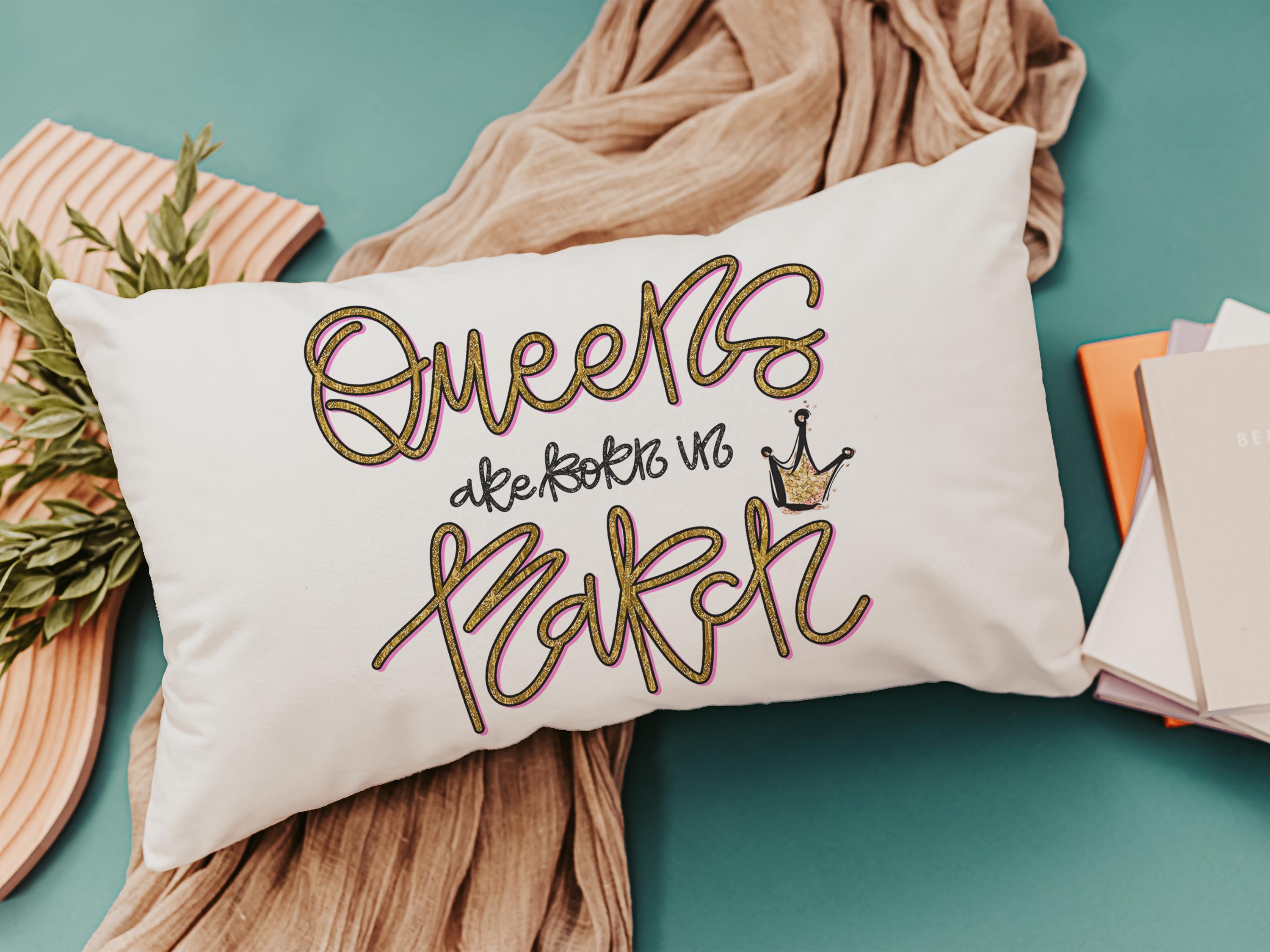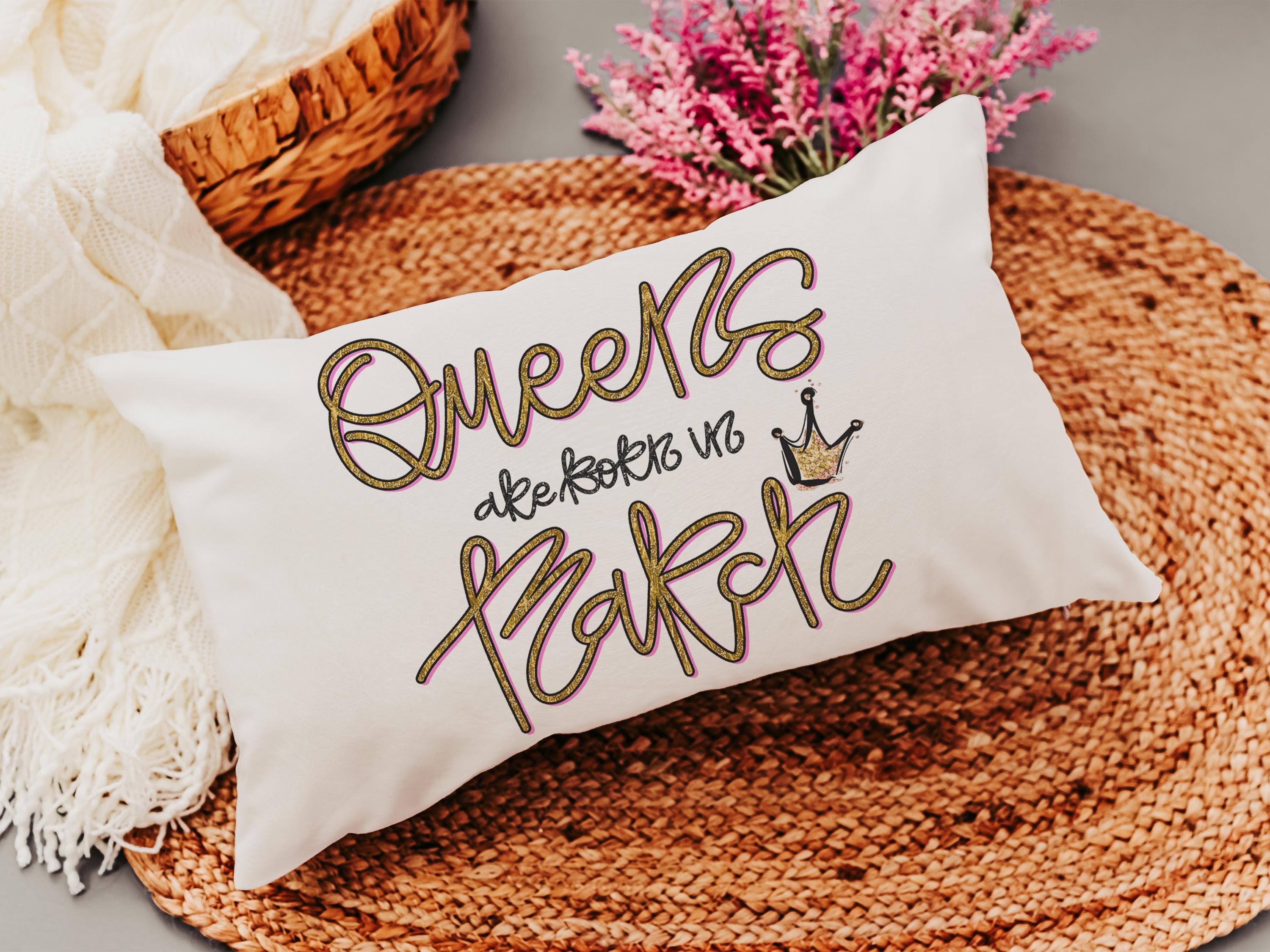 queens are born in March sassy throw pillows for bed, fun lumbar pillow cover 12x20, March birthday gifts for girls, college gifts for best