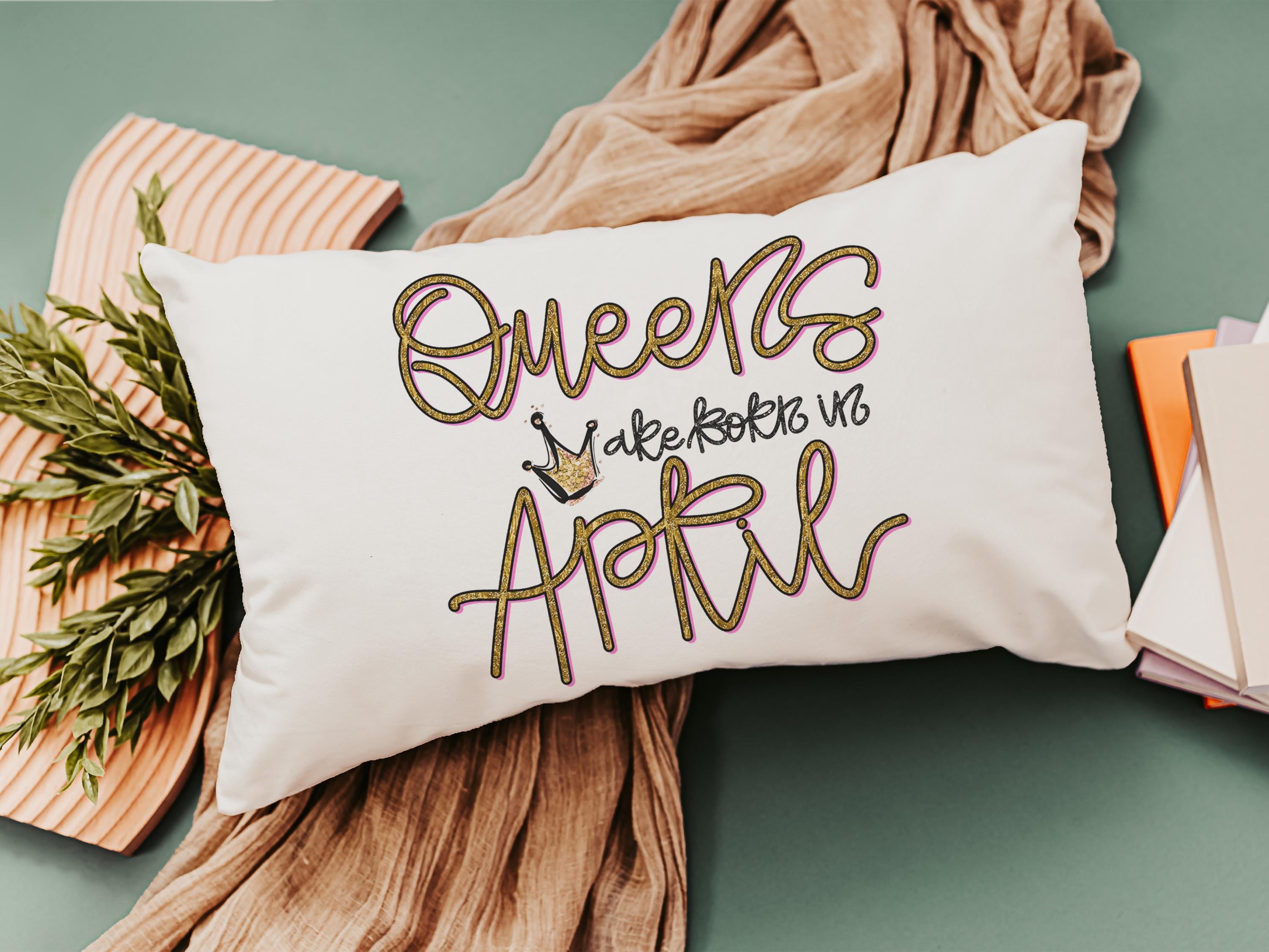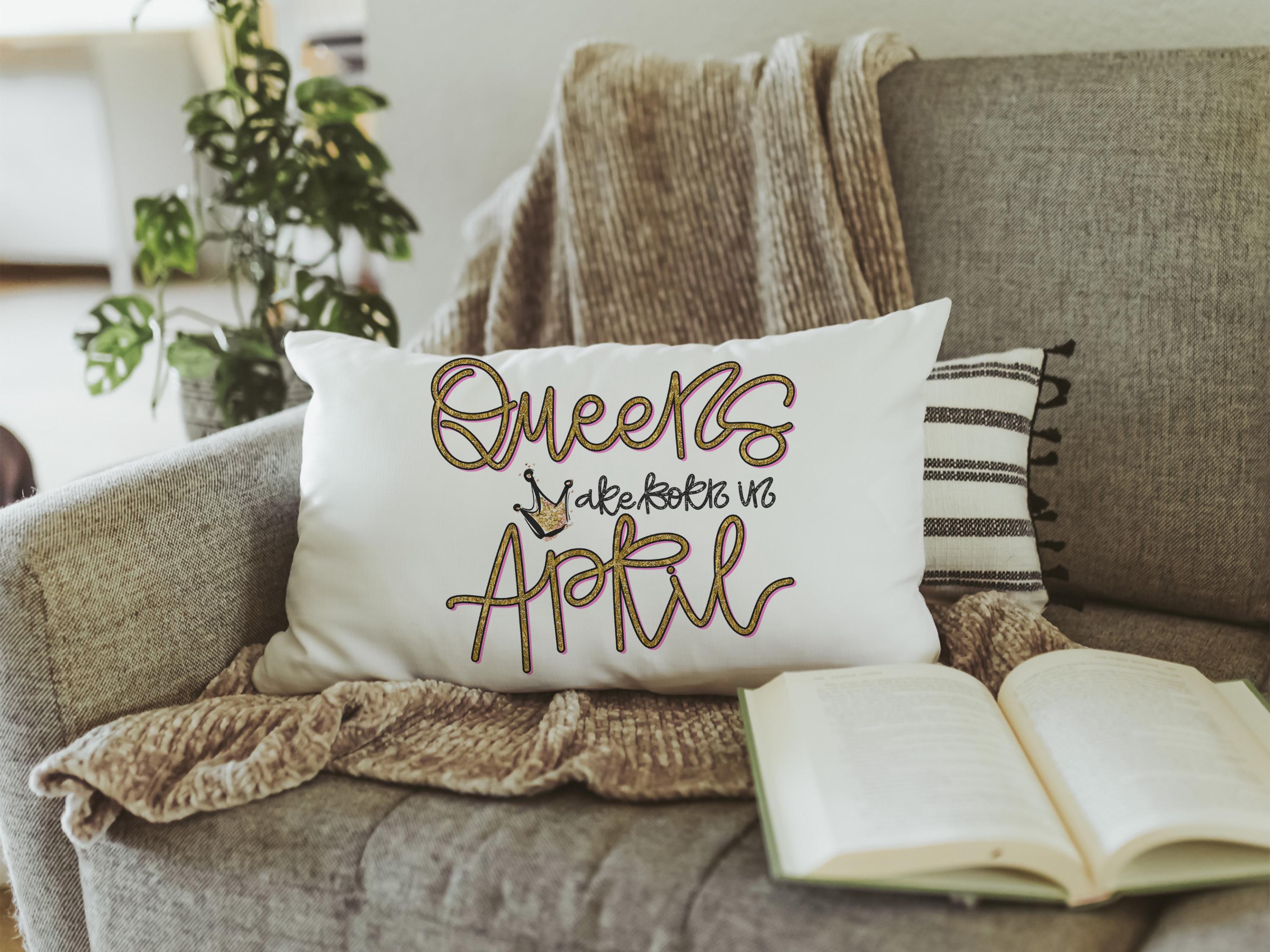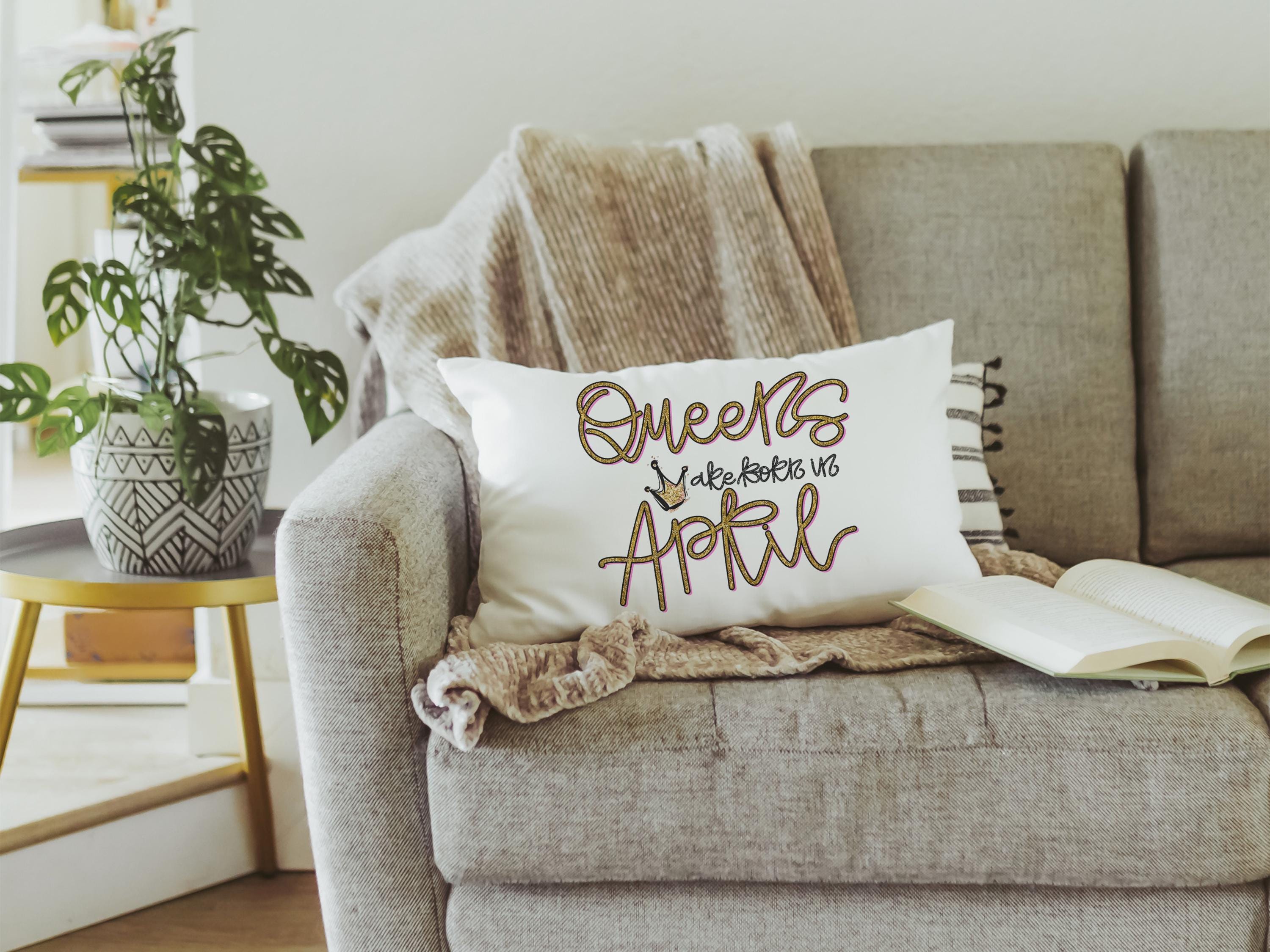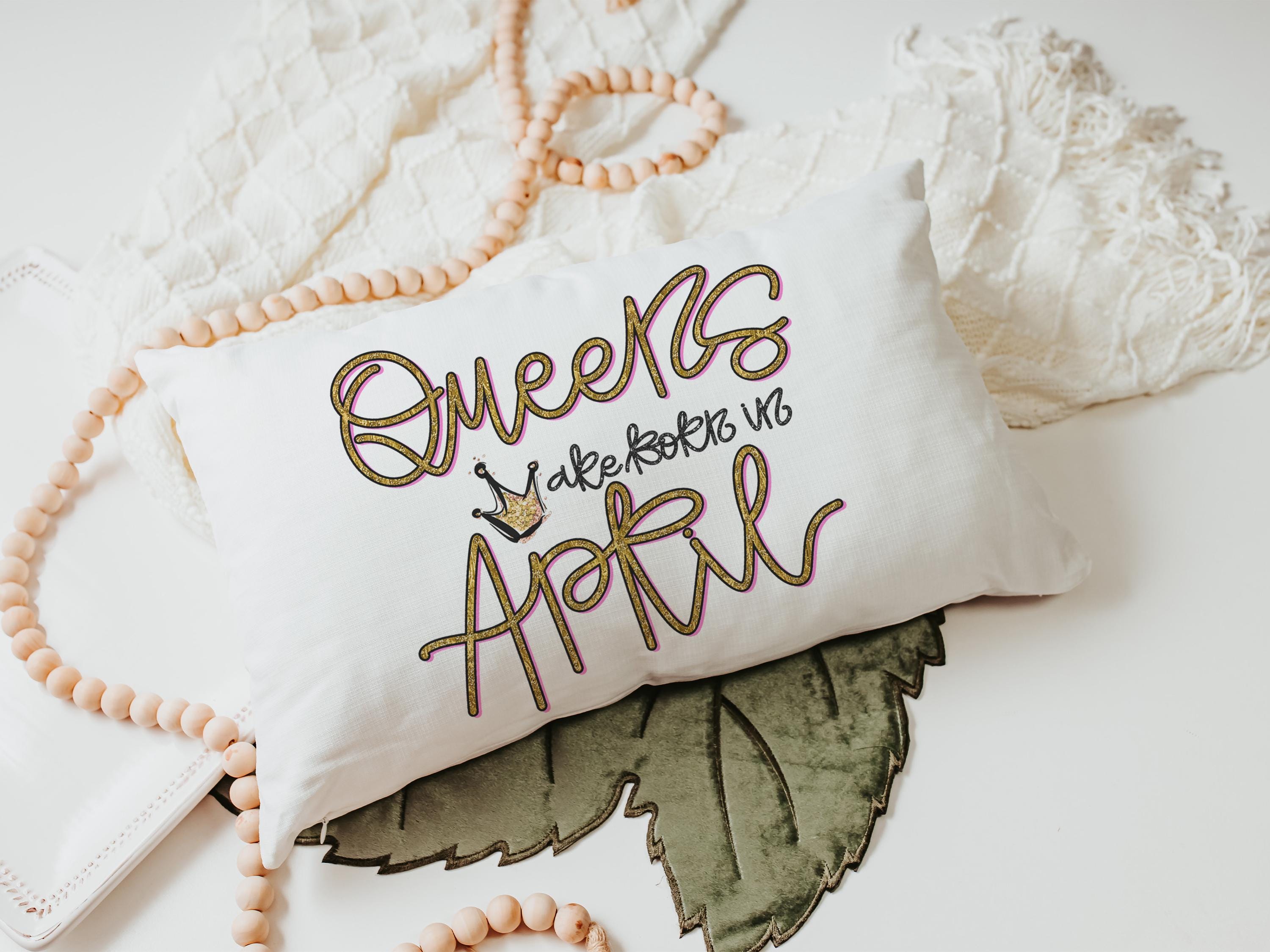 queens are born in April fun throw pillows for bed, cute lumbar pillow for living room, April birthday gifts for sister, college gifts for
