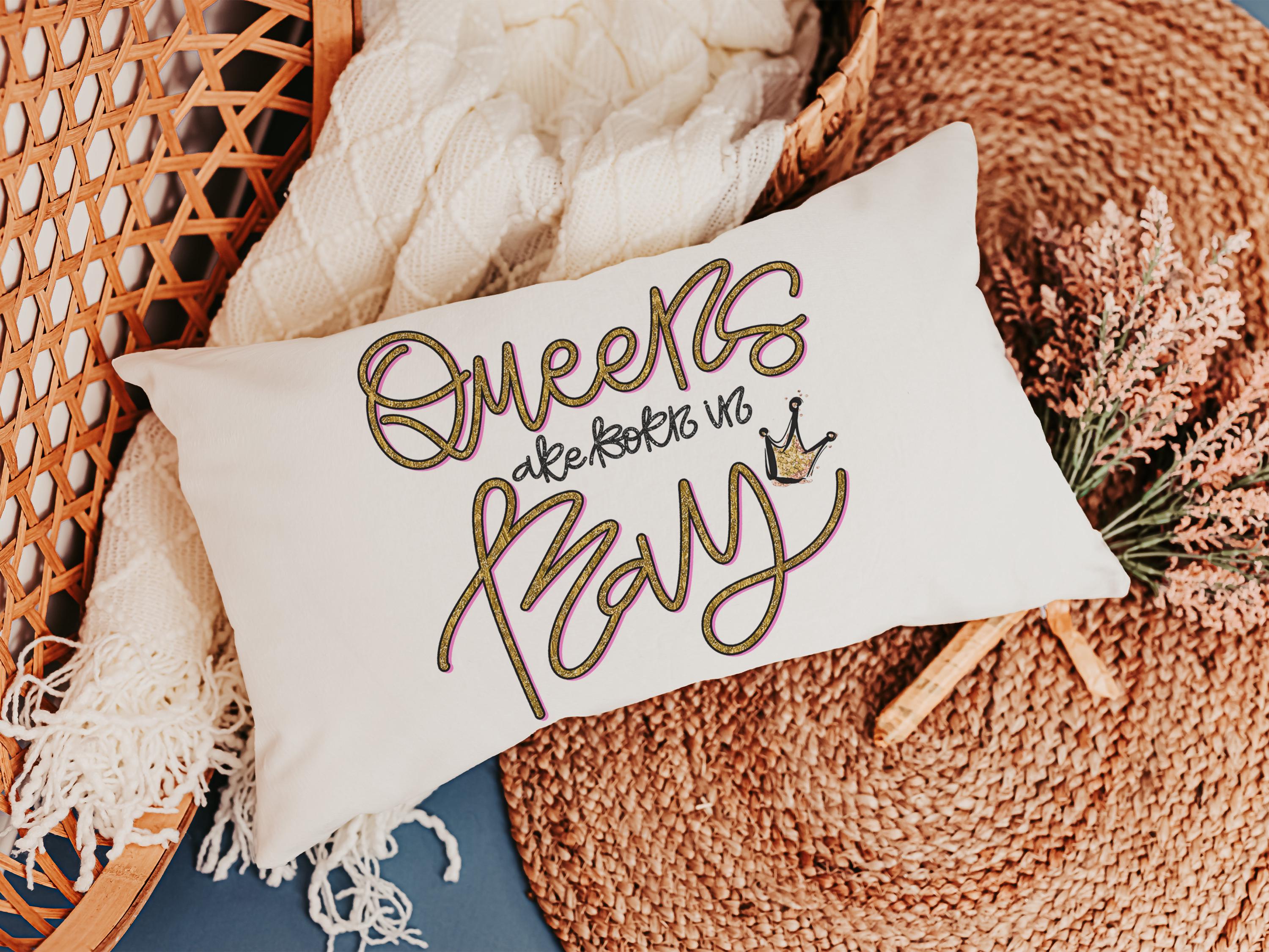 queens are born in May cute throw pillows for teens, whimsical lumbar pillows for bed, May birthday gifts for bff, college gifts for girls