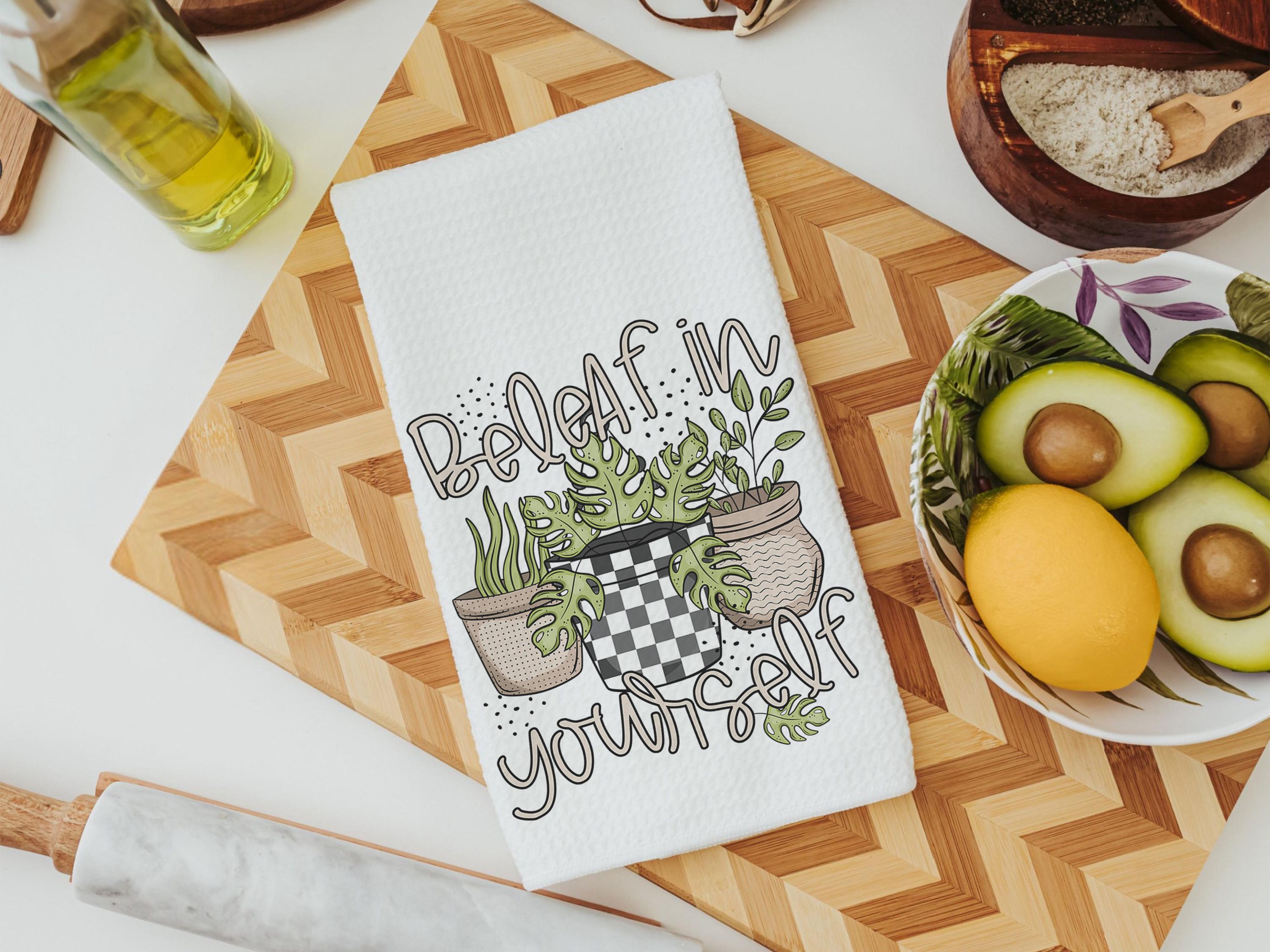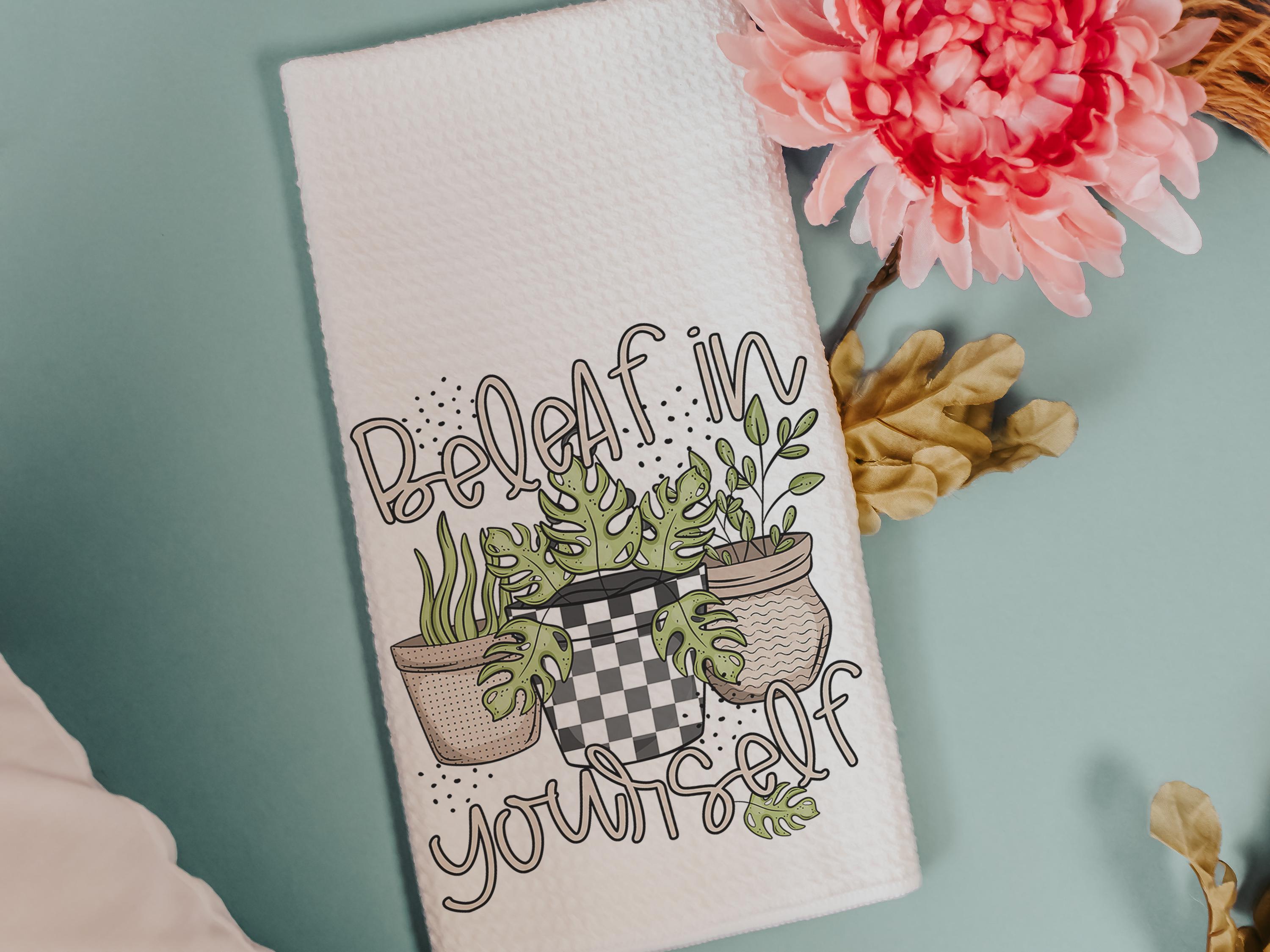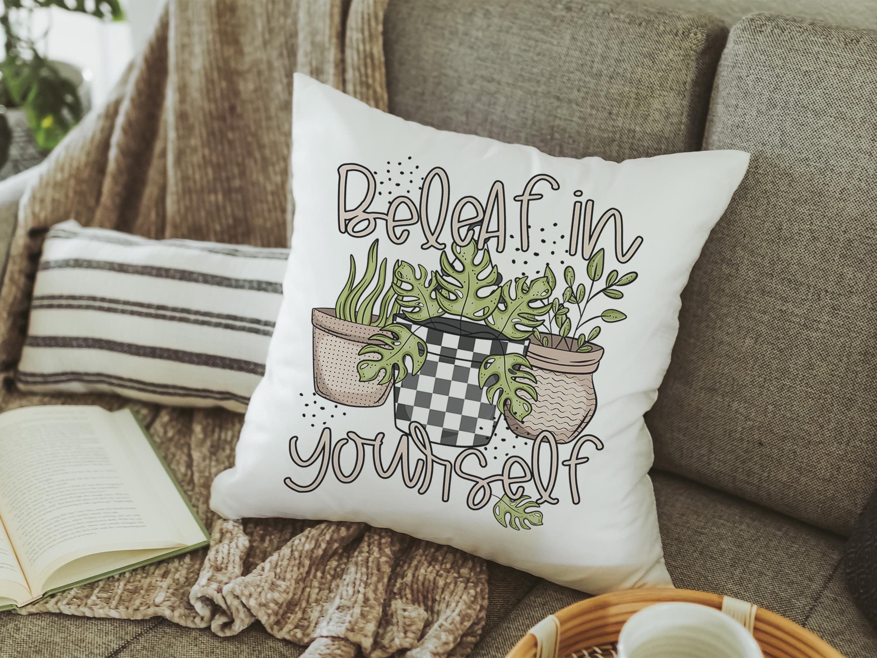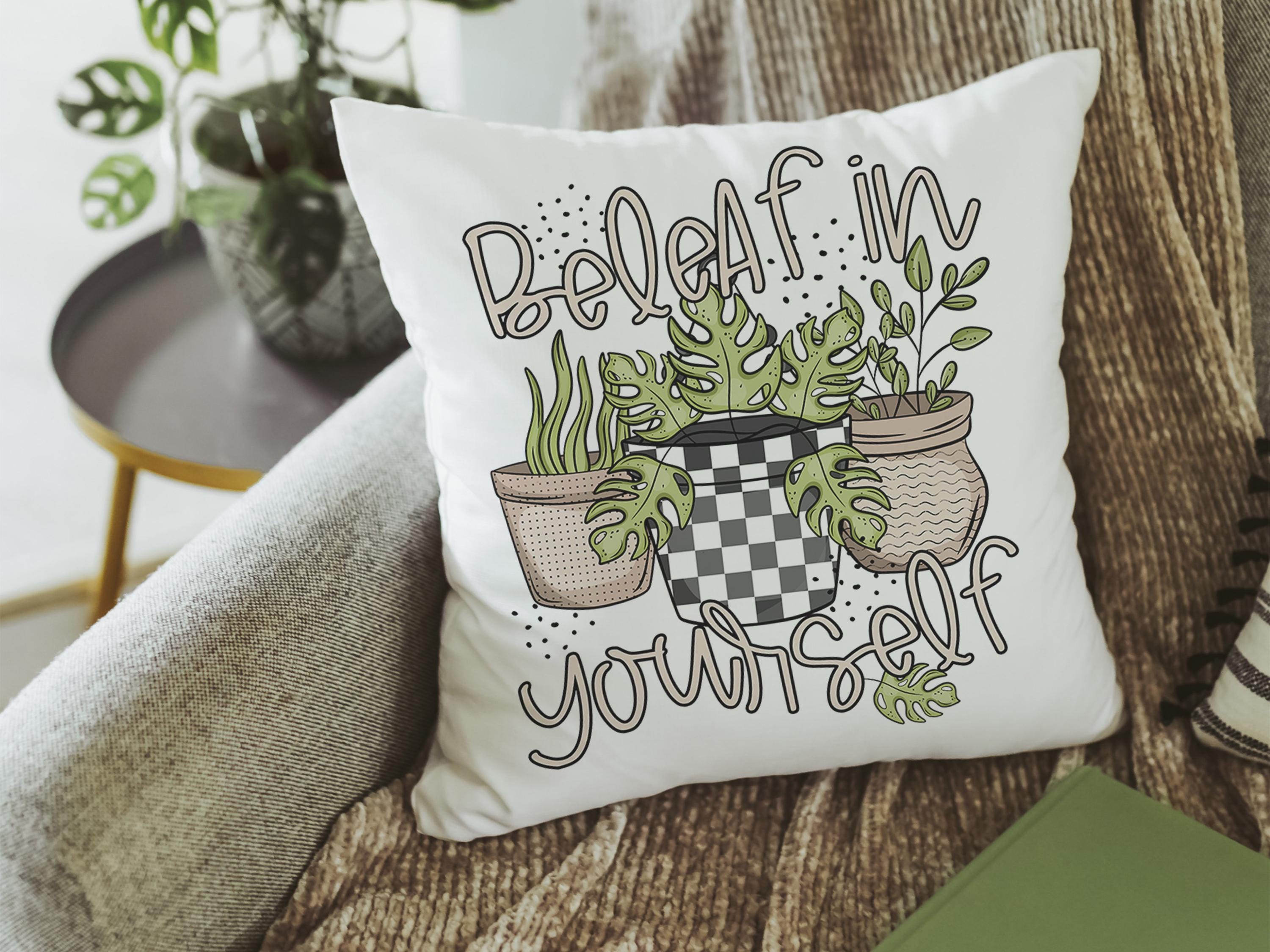 beleaf in yourself inspirational throw pillows for couch funny plant lover gifts, monstera plant kitchen towel for women, plant mom gifts