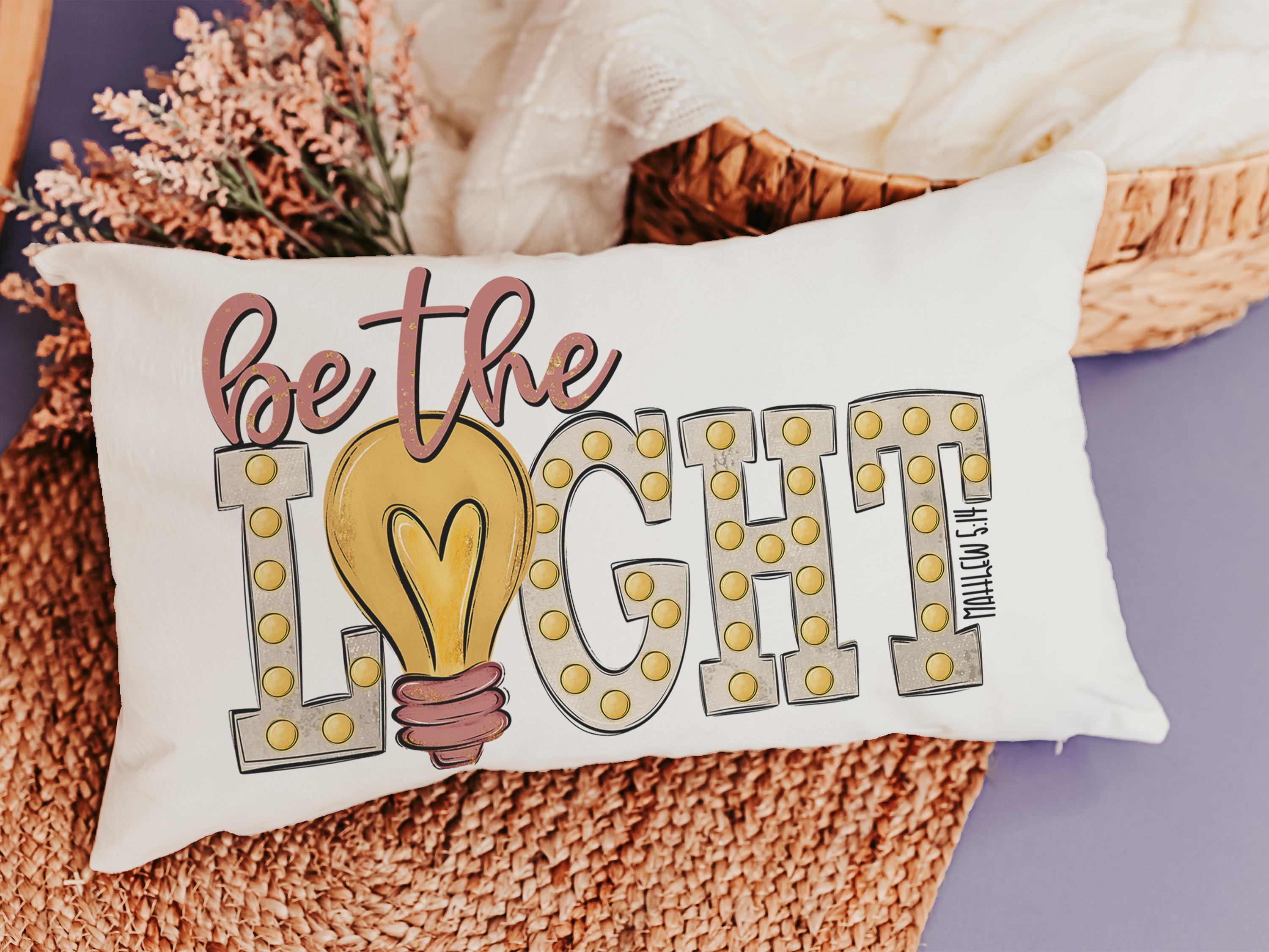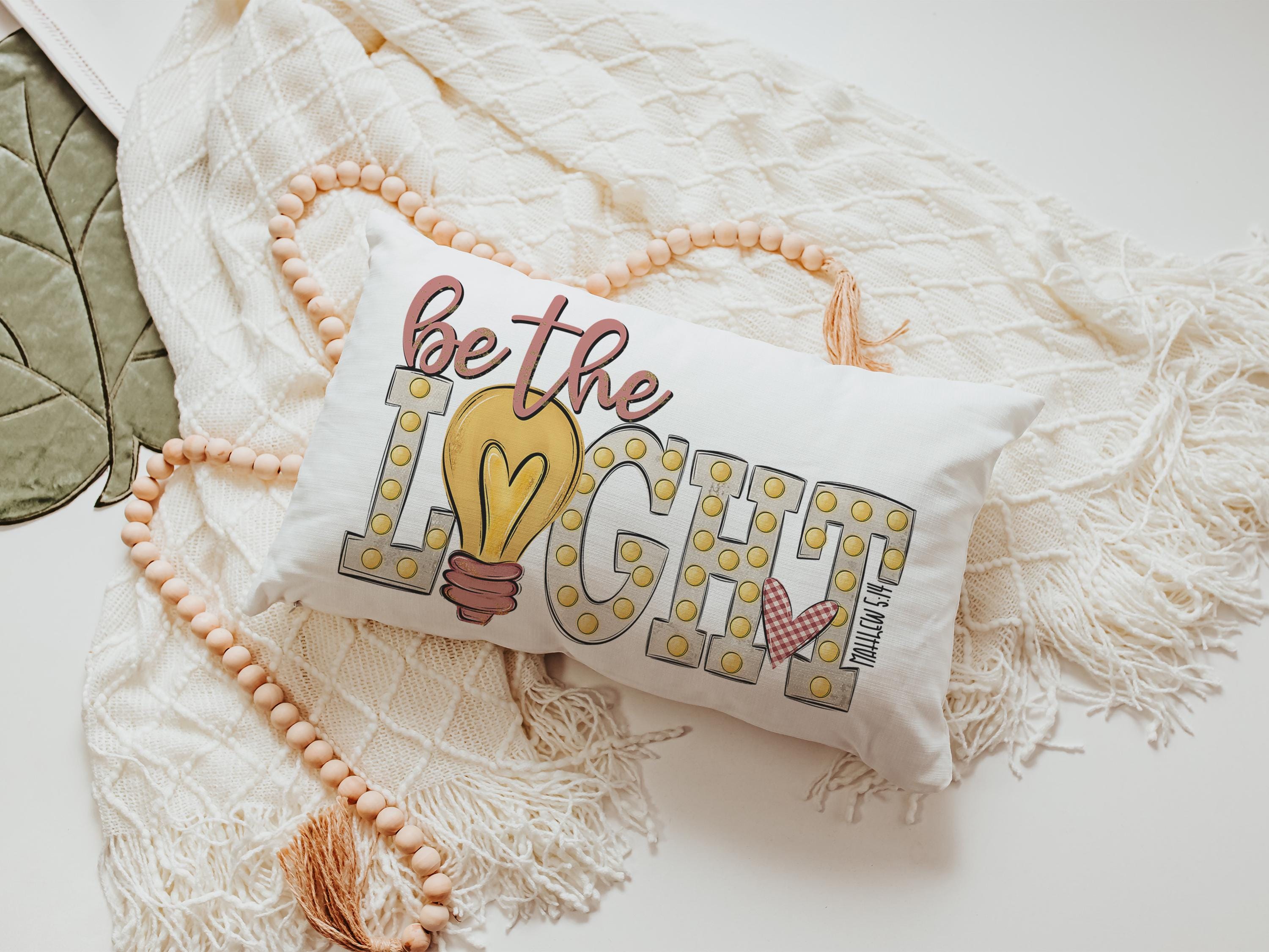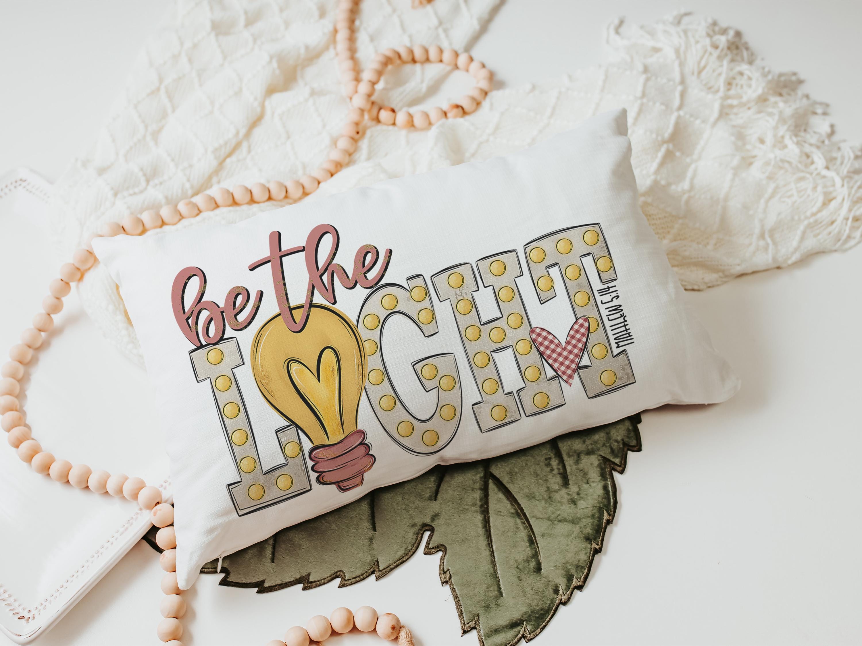 be the light inspirational Christian lumbar pillow covers 12 x 20, Matthew 5:14 Bible verse throw pillows for girls room, scripture gift for