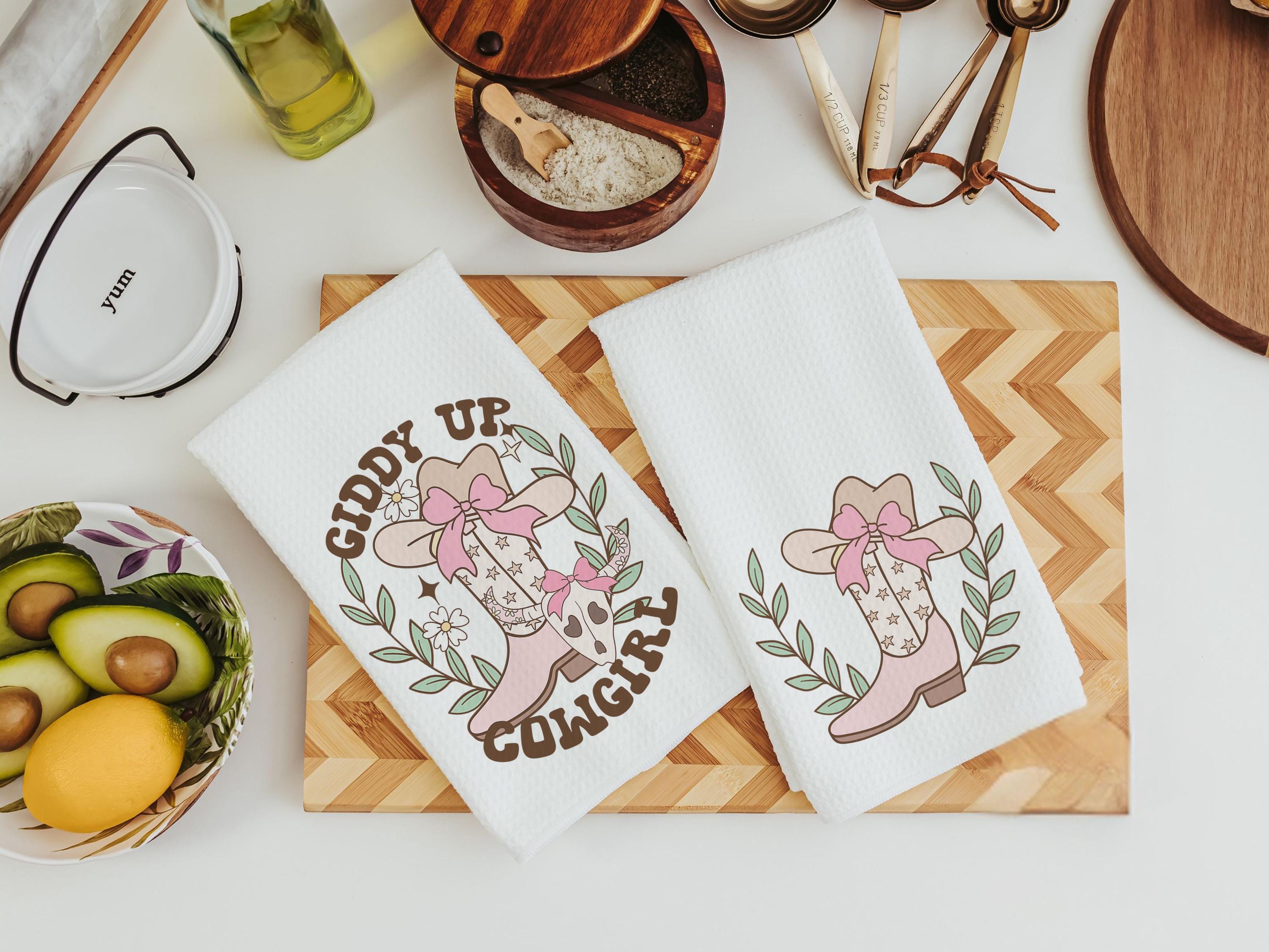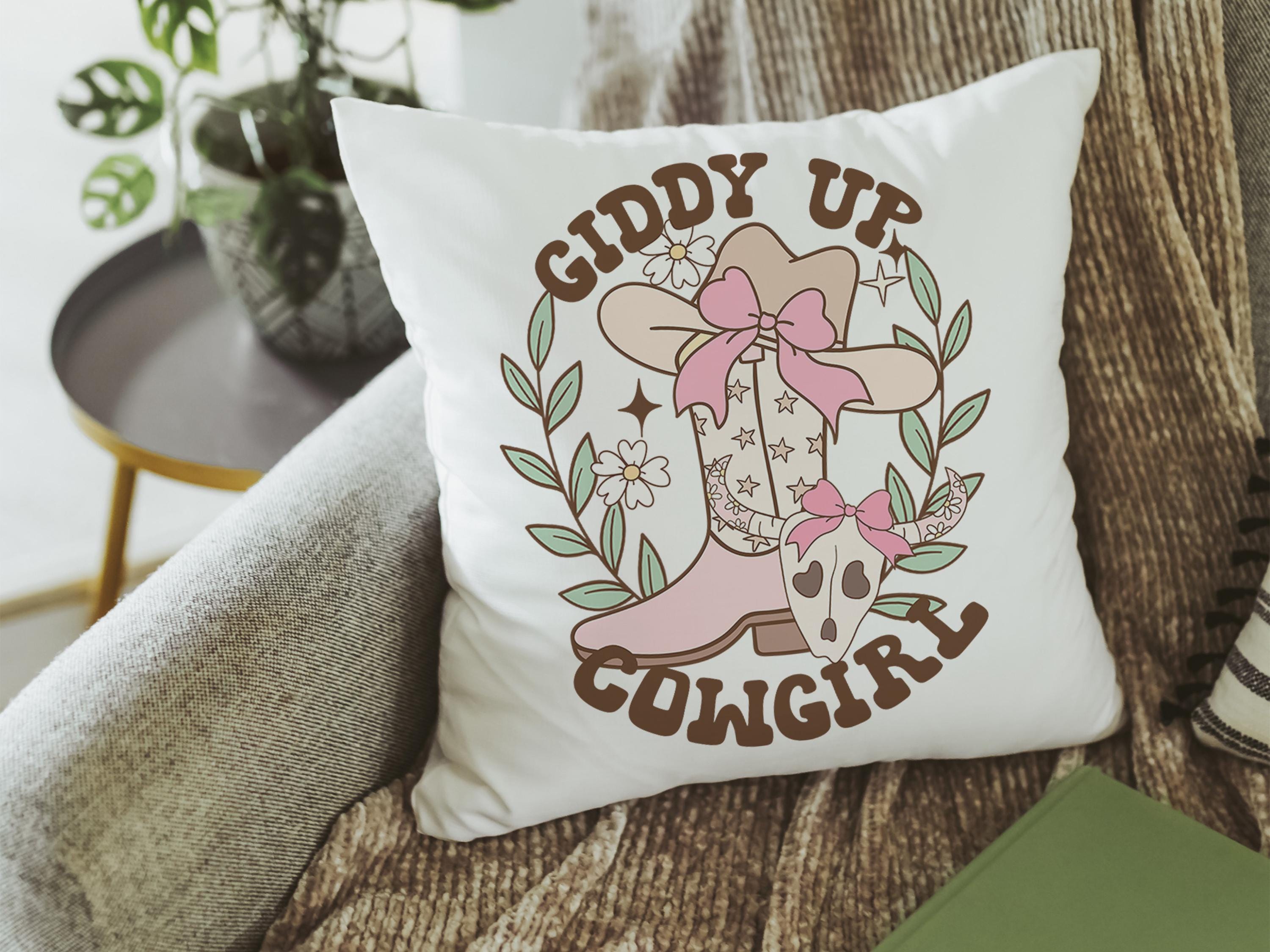 Bring western style to any space with Giddy Up Cowgirl coquette pillows and matching towels. Perfect for a bed, dorm, or nursery, this sweet country girl decor also makes cute Christmas gifts for friends or college girls. Available to purchase as pillows or towels, sold separately or as sets.