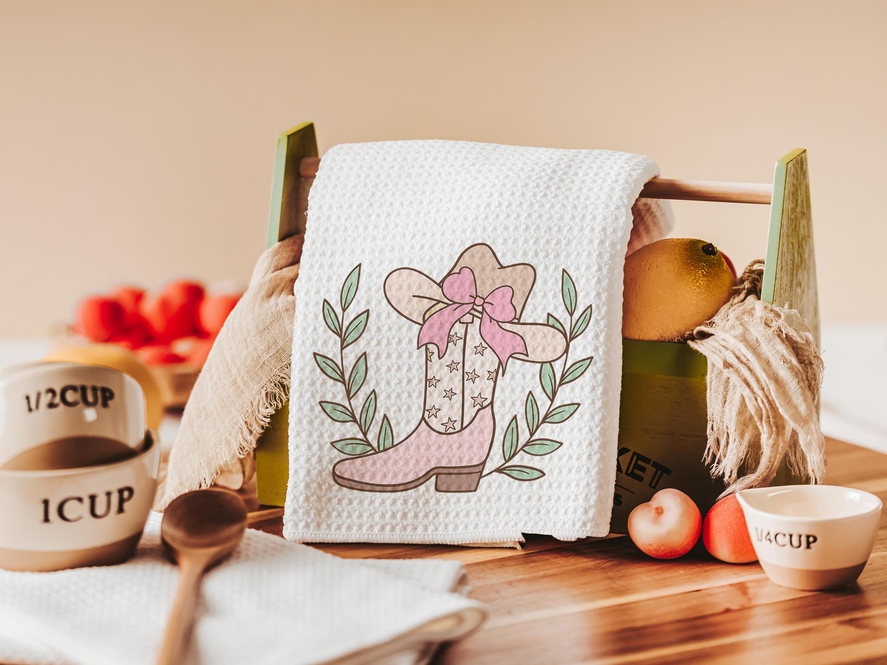 cowgirl coquette throw pillows for bed light pink western nursery decor girl, country girl kitchen towels for friends, cute Christmas gifts