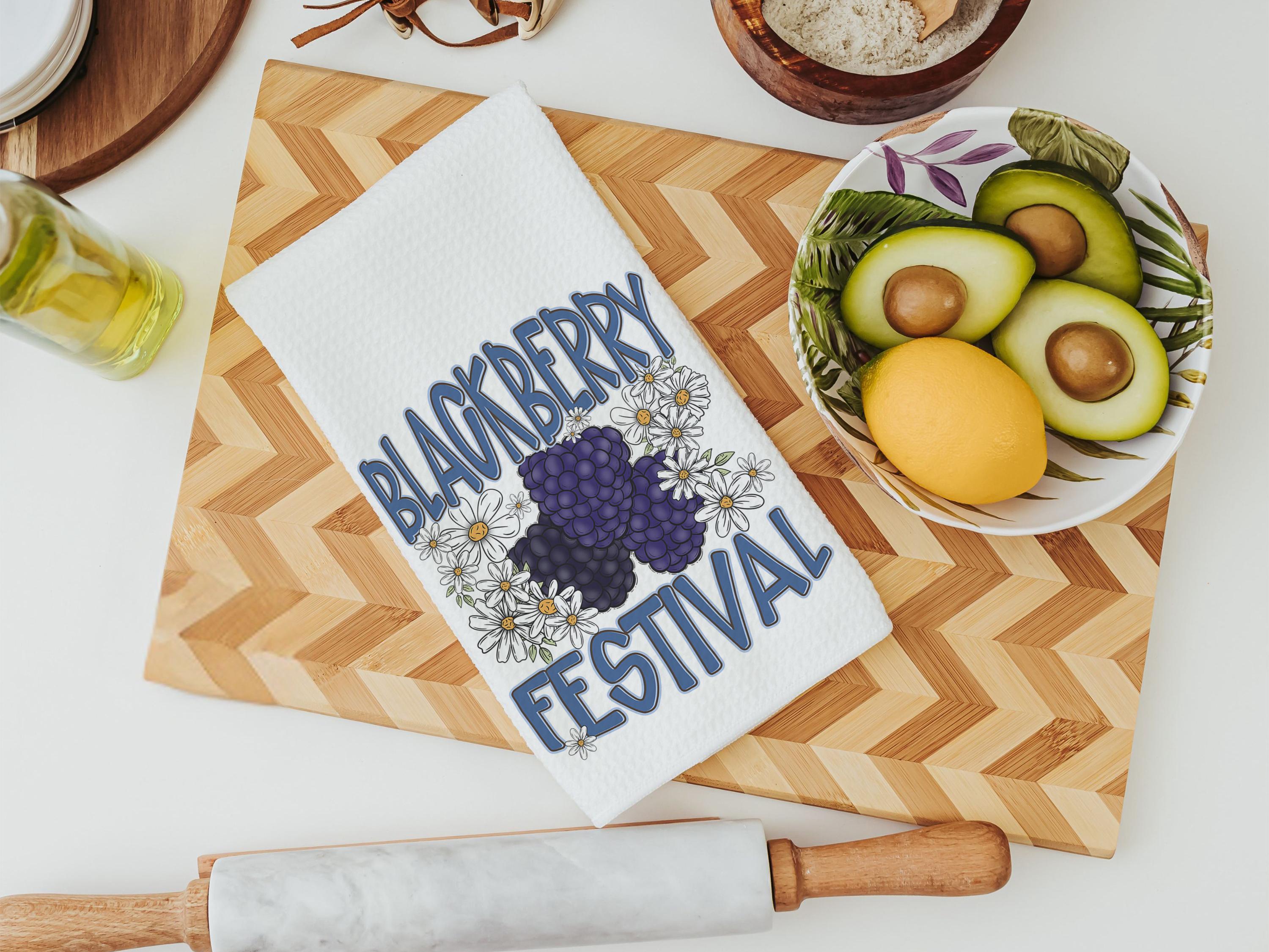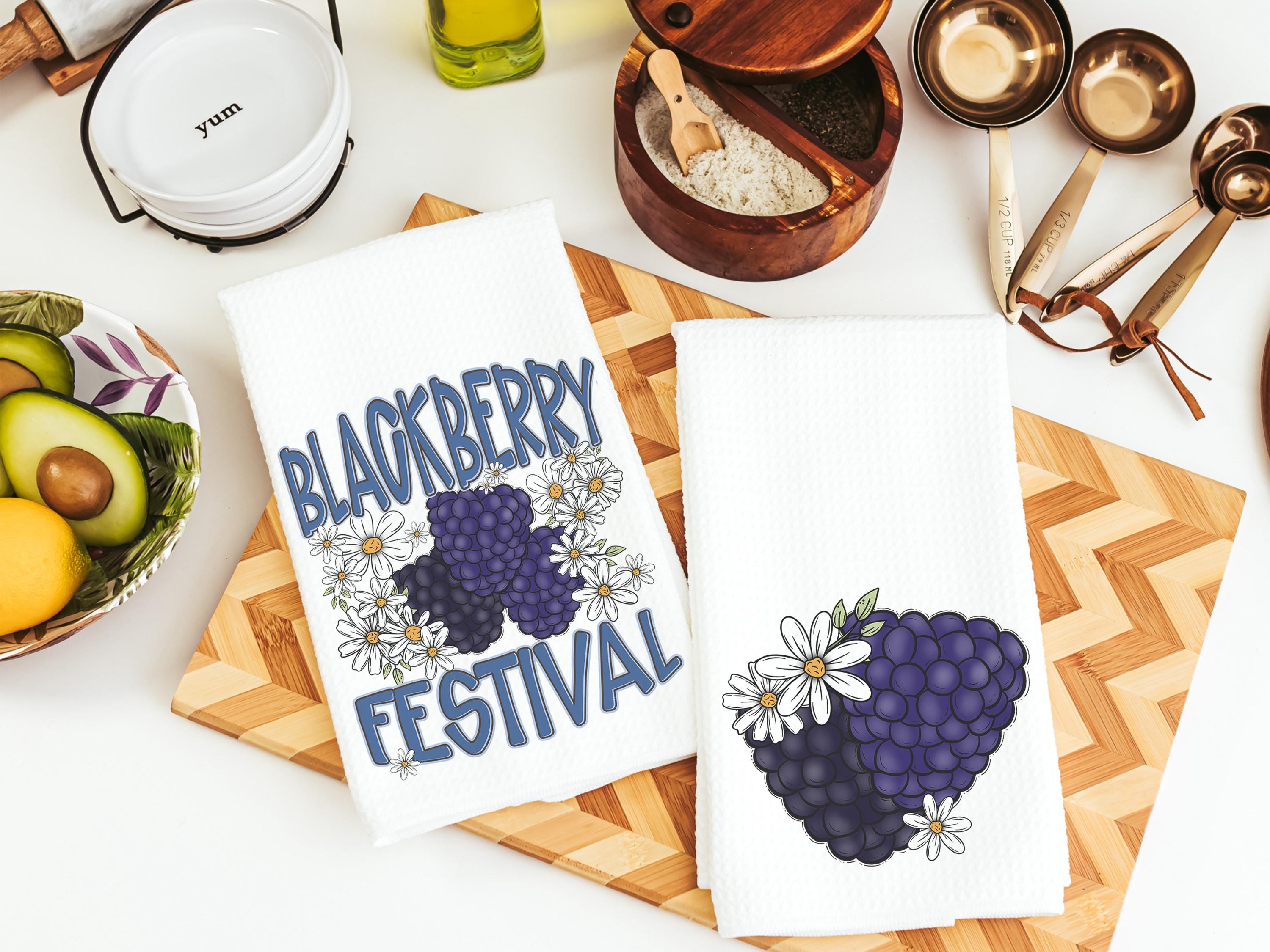 blackberry festival kitchen towels, fruit kitchen decor, blackberry gifts, summer kitchen accessories, cute hand towels bathroom set, powder