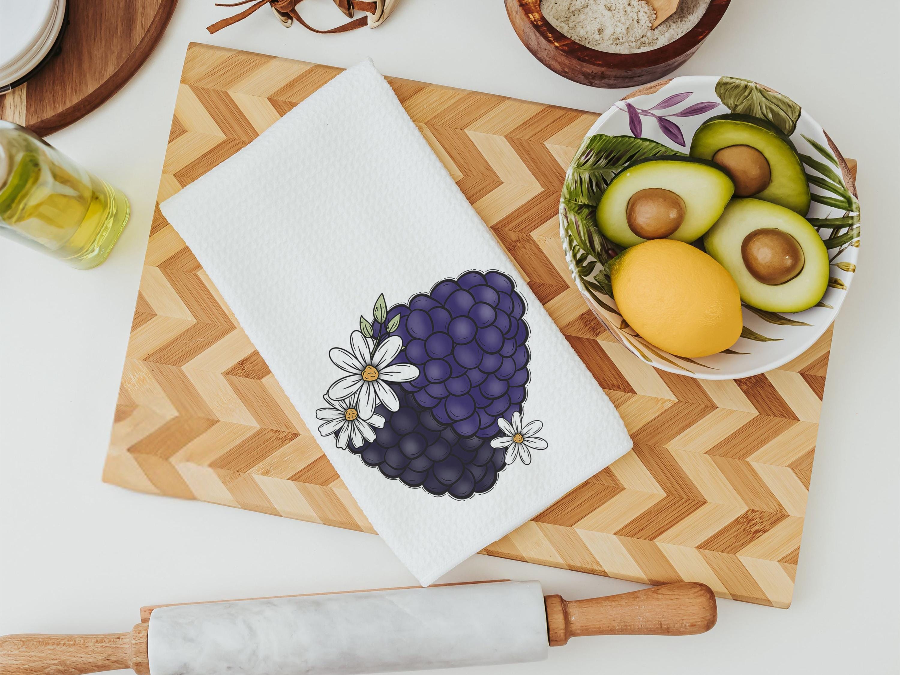 Blackberry festival vibes bring a sweet summer touch to these blackberry kitchen towels. Perfect for the kitchen, guest bathroom, or powder room, they make thoughtful blackberry gifts for a sister or friend. Purchase individually or as a matching set.