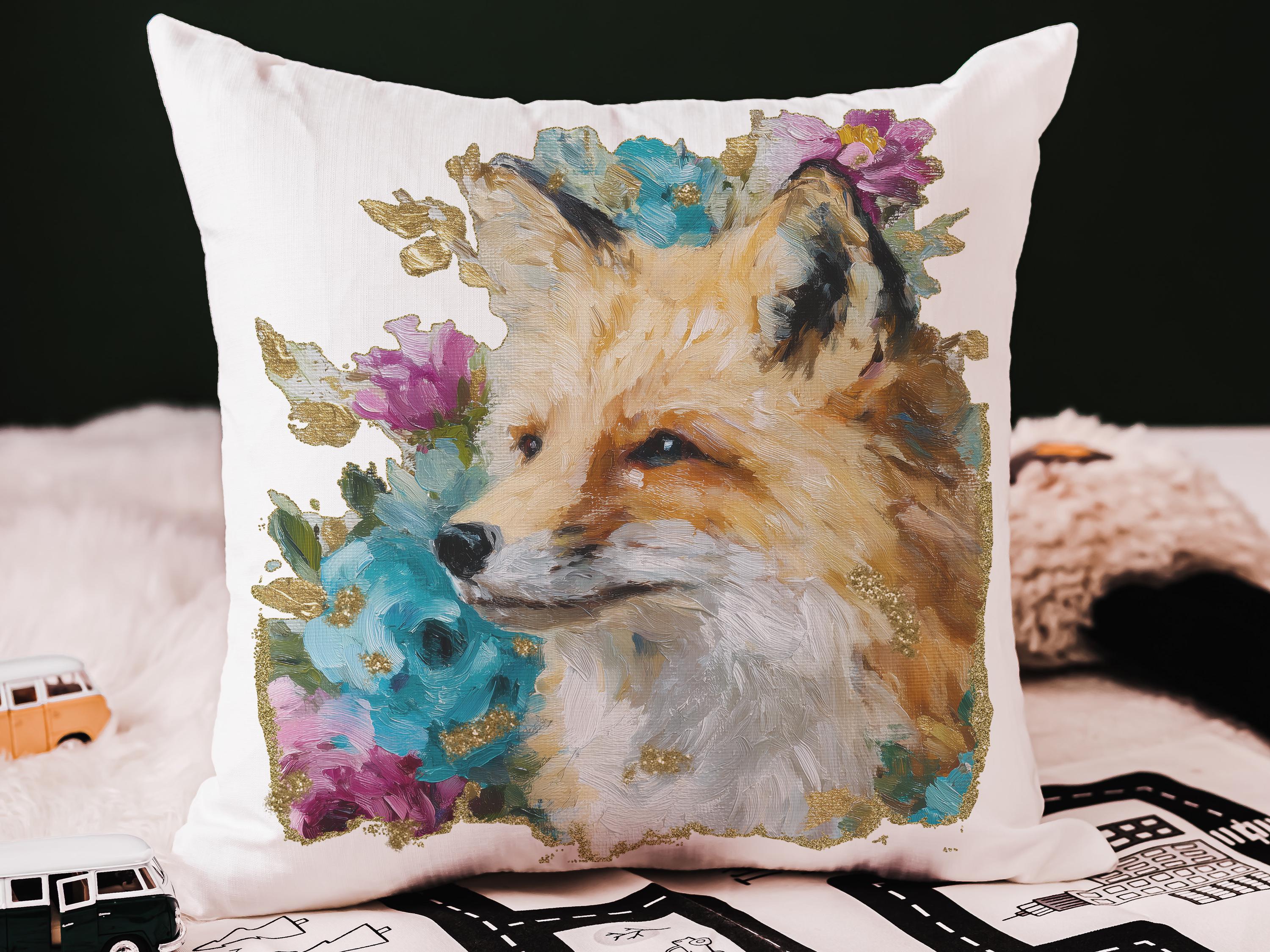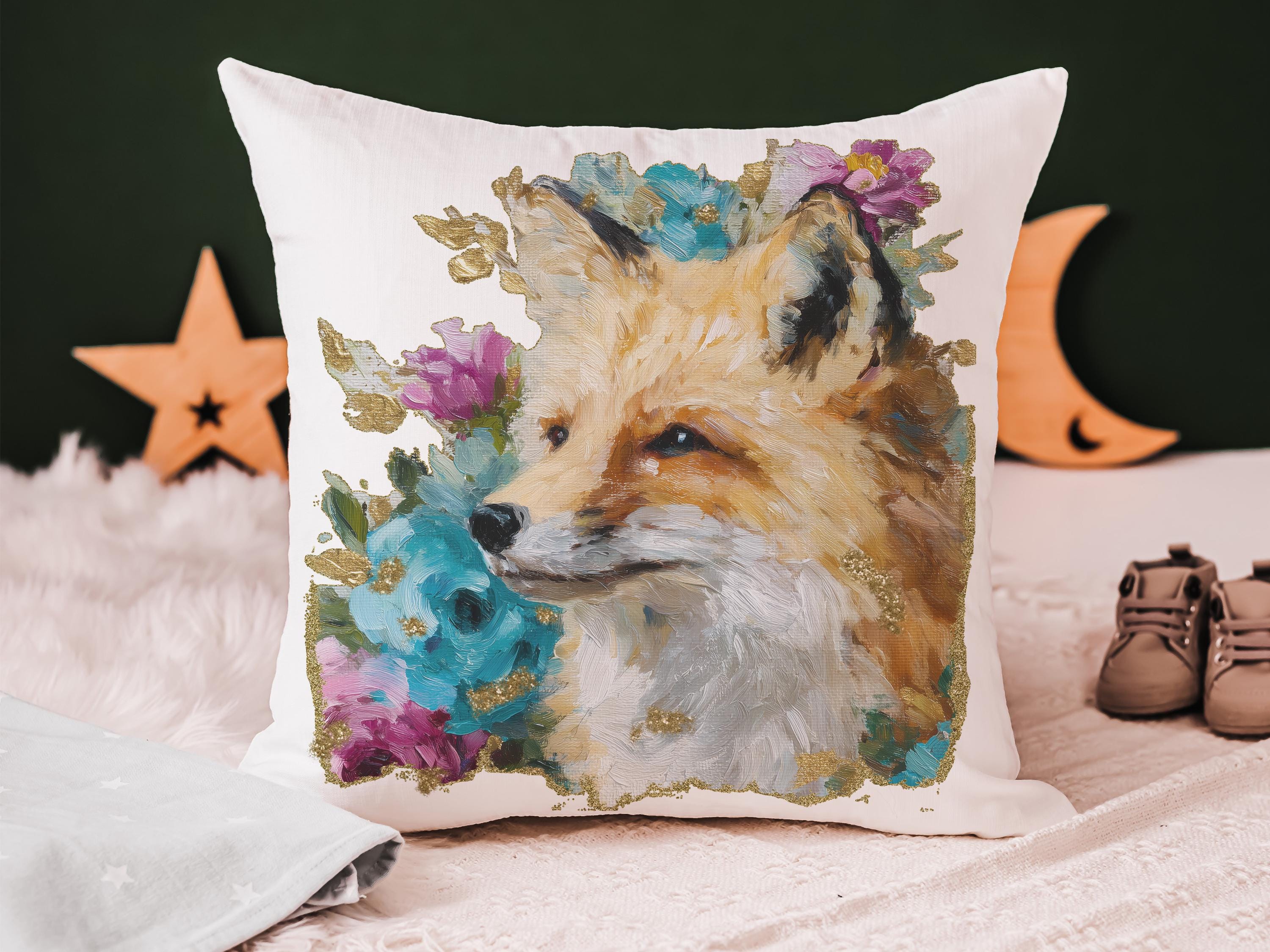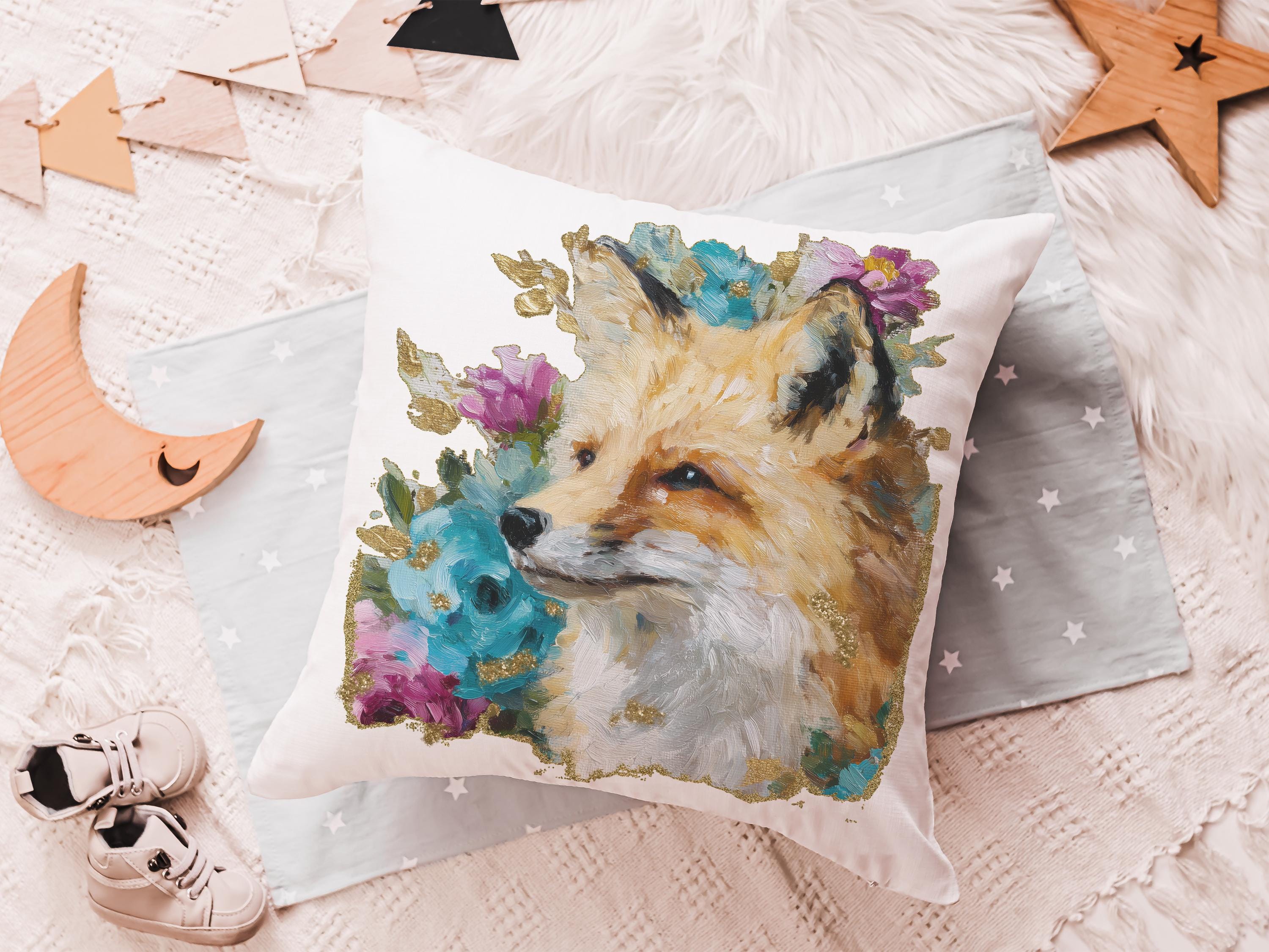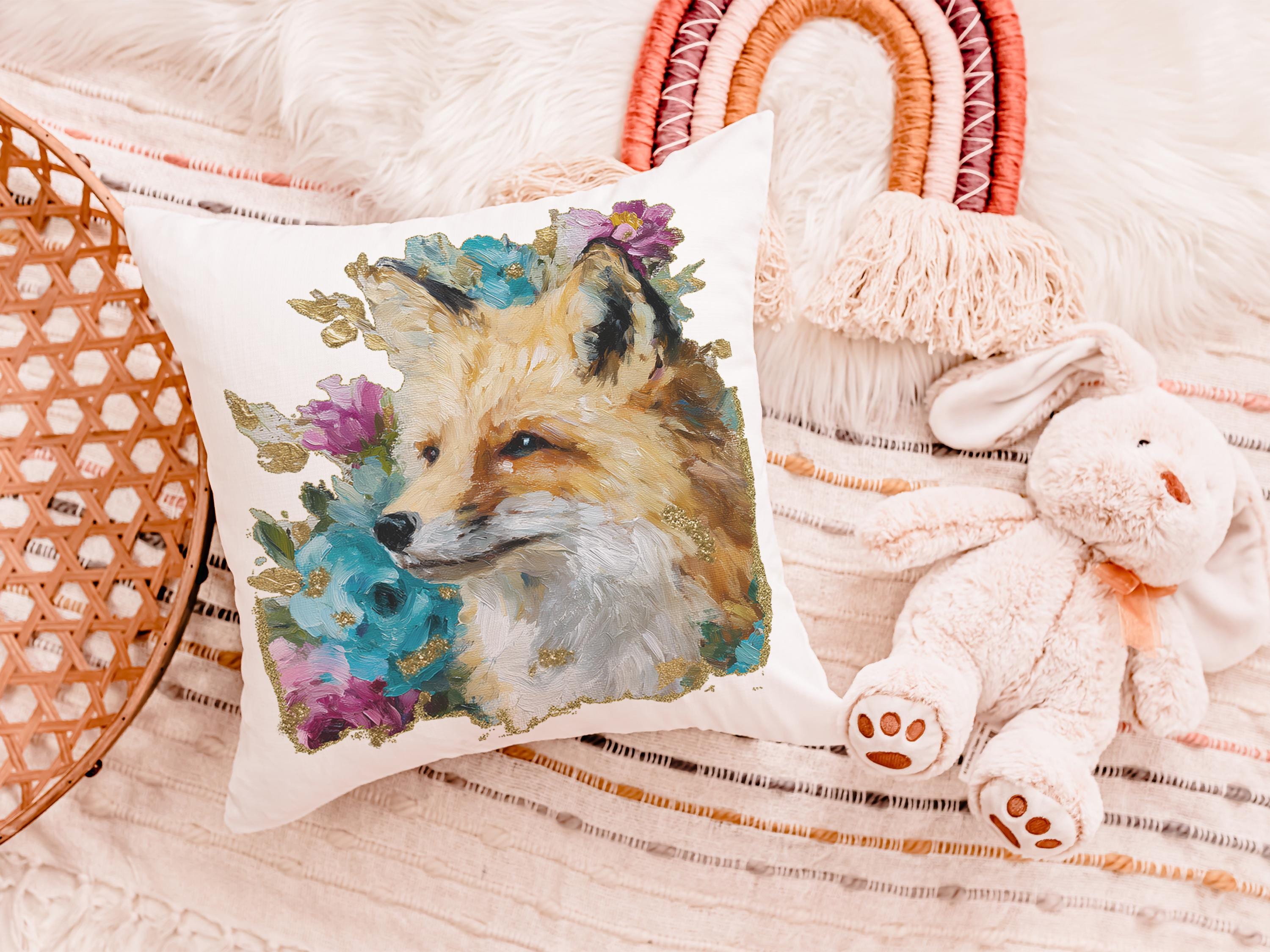 watercolor fox throw pillow for dorm, floral fox bedroom decor, fox gifts for women, whimsical woodland nursery decor, college gifts for