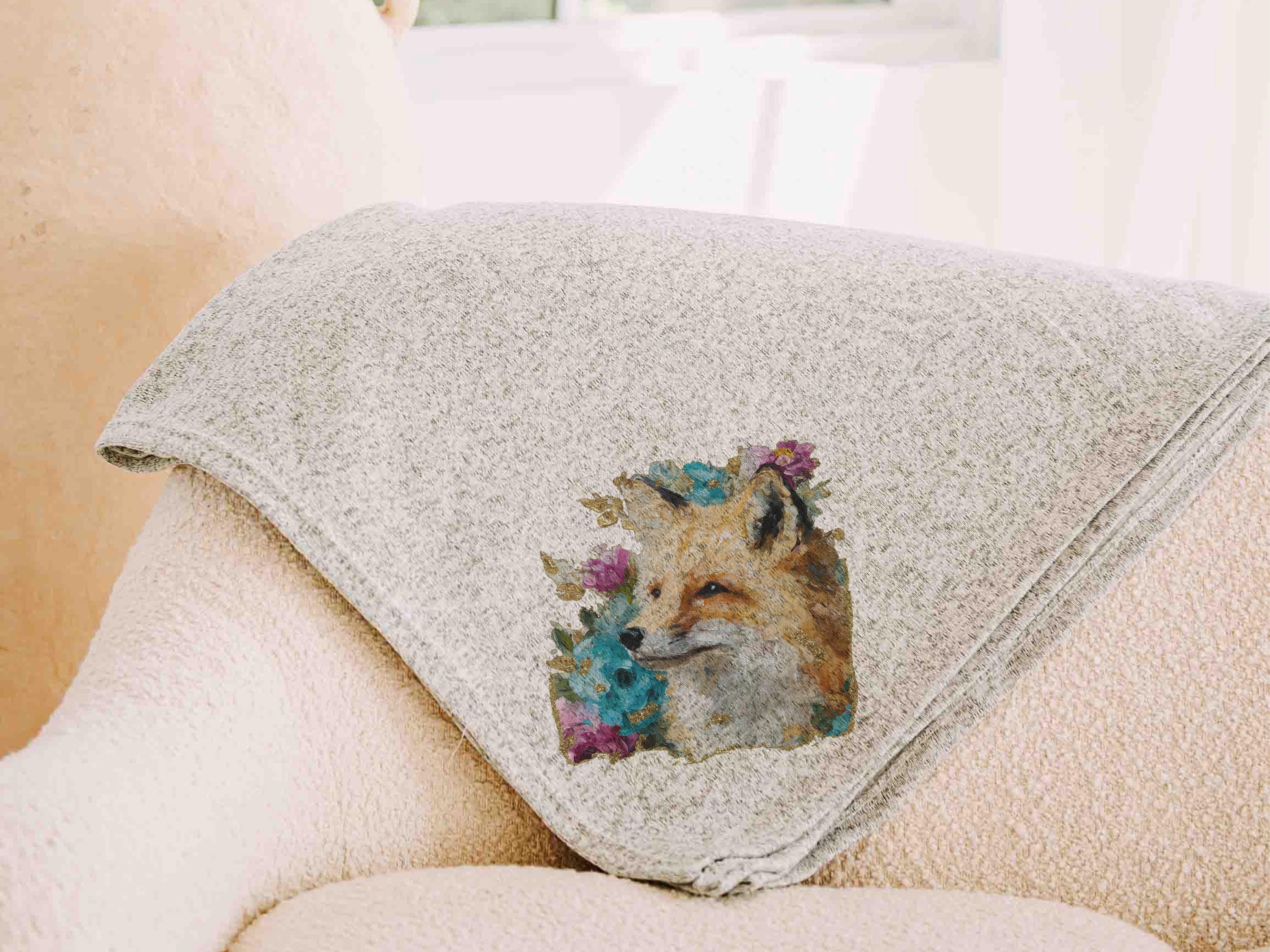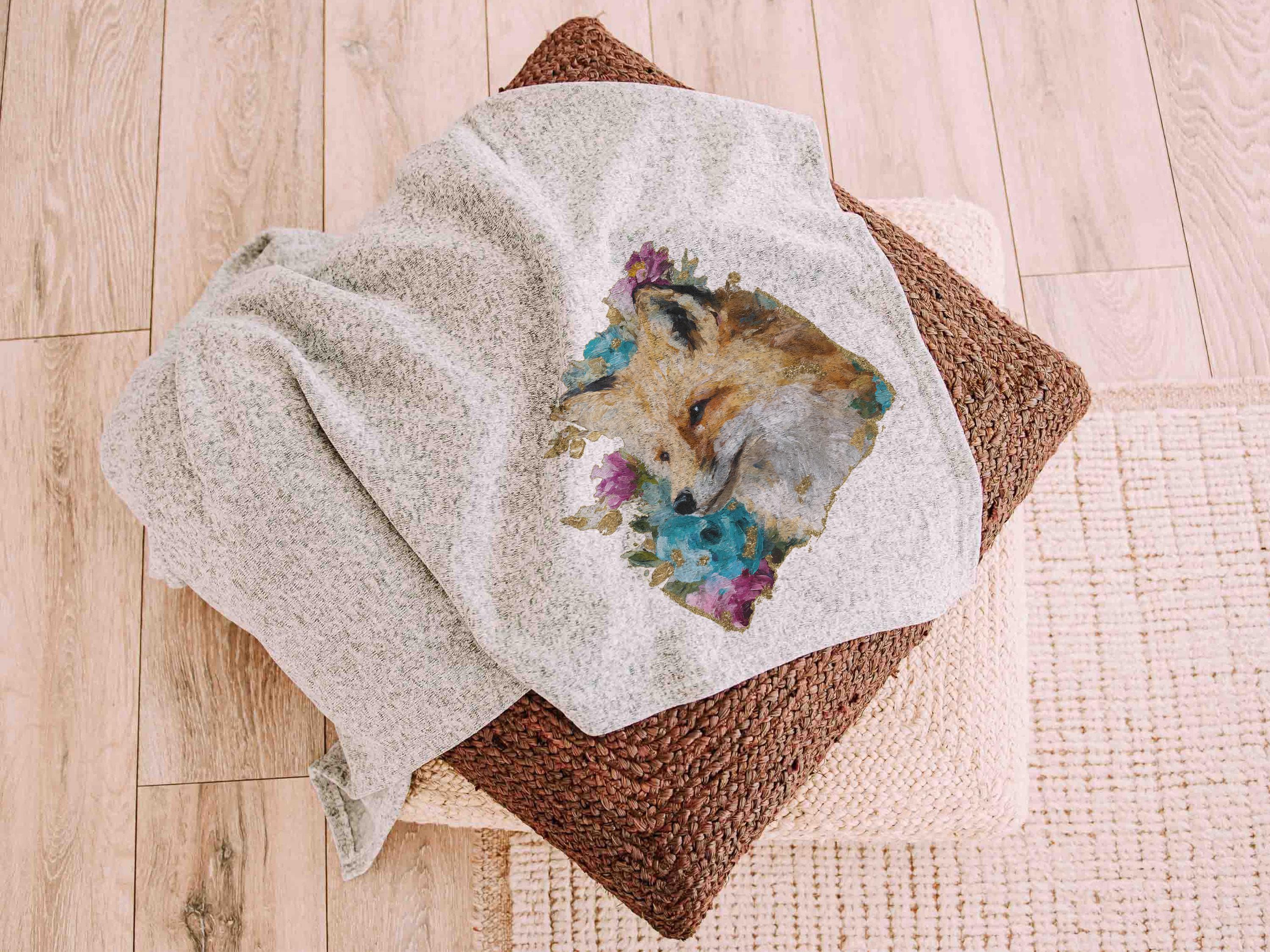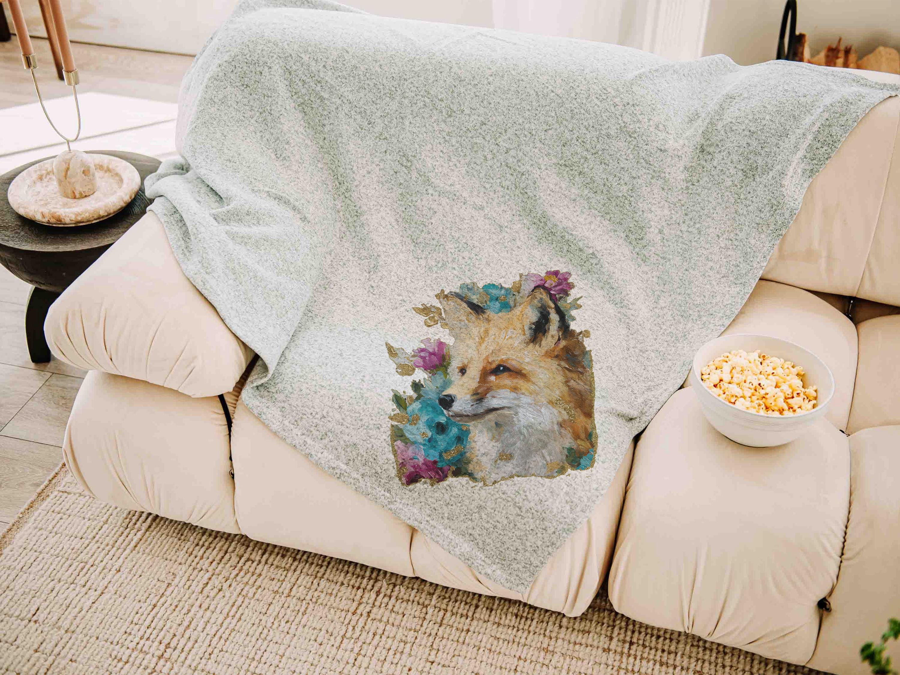 A cozy favorite with a floral watercolor fox, this 50x60 throw blanket is perfect for an armchair, dorm room, or reading nook. A thoughtful gift for your sister, a college girl, or any woman who loves charming fox decor. Available in grey or cream for just the right fit.