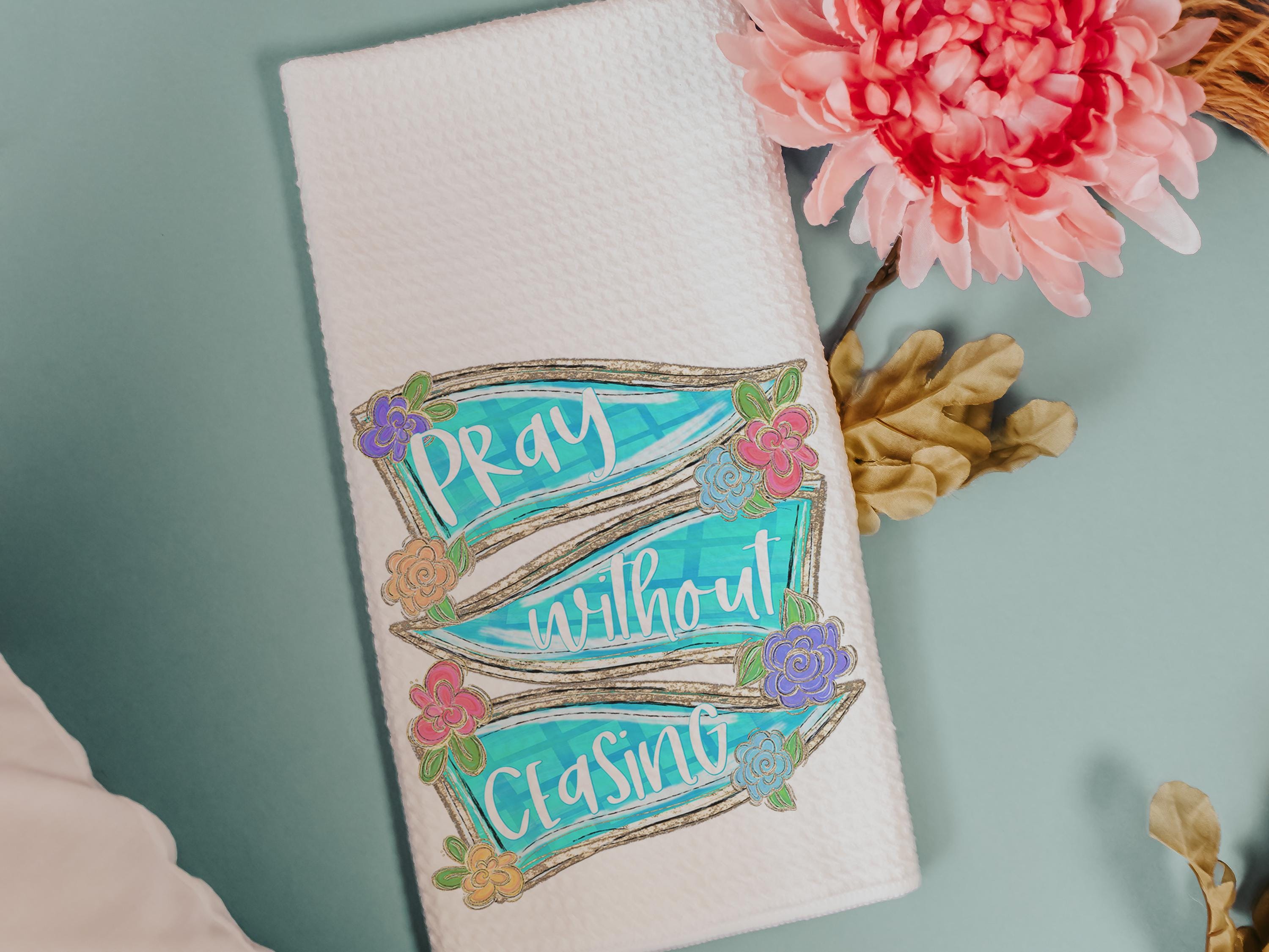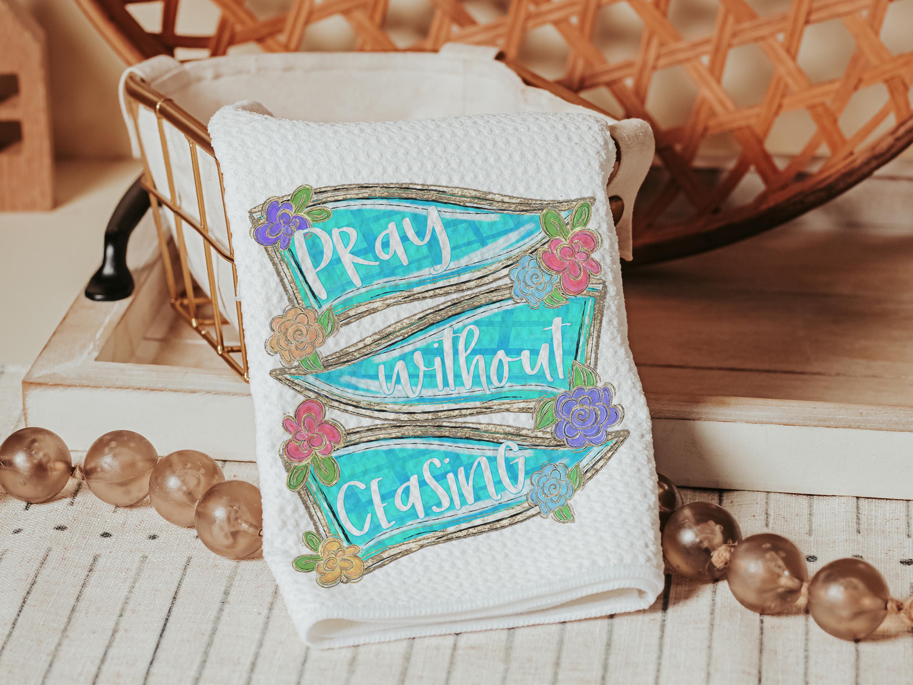 Encourage a life of steady faith with this pray without ceasing towel and the matching scripture throw pillow—perfect touches for the kitchen or bedroom. A meaningful gift inspired by 1 Thessalonians 5:17, this Bible verse set blends beautifully into faith kitchen decor or a quiet reading corner. As thoughtful Christian gifts this towel and pillow can be given together or separately.
