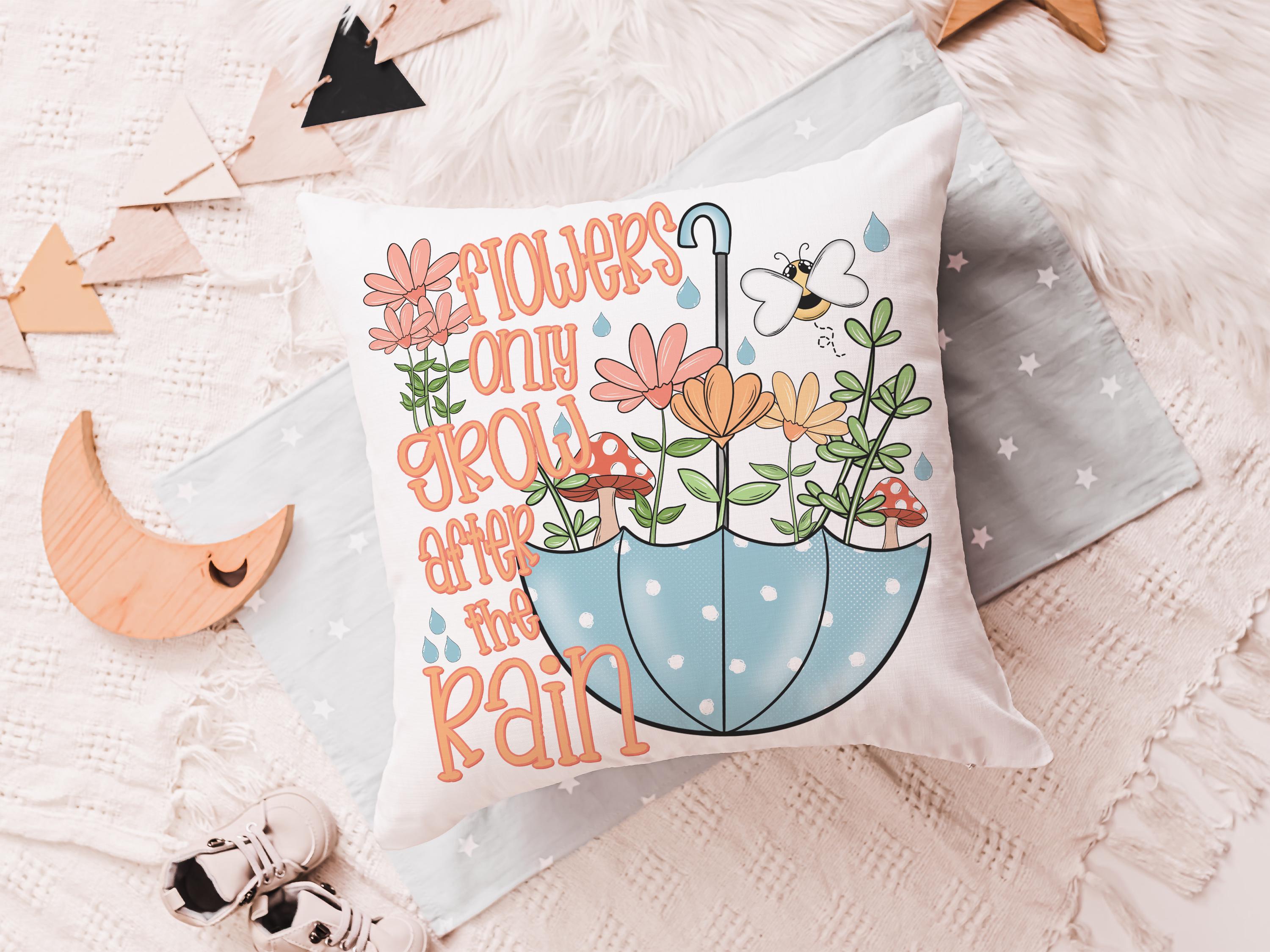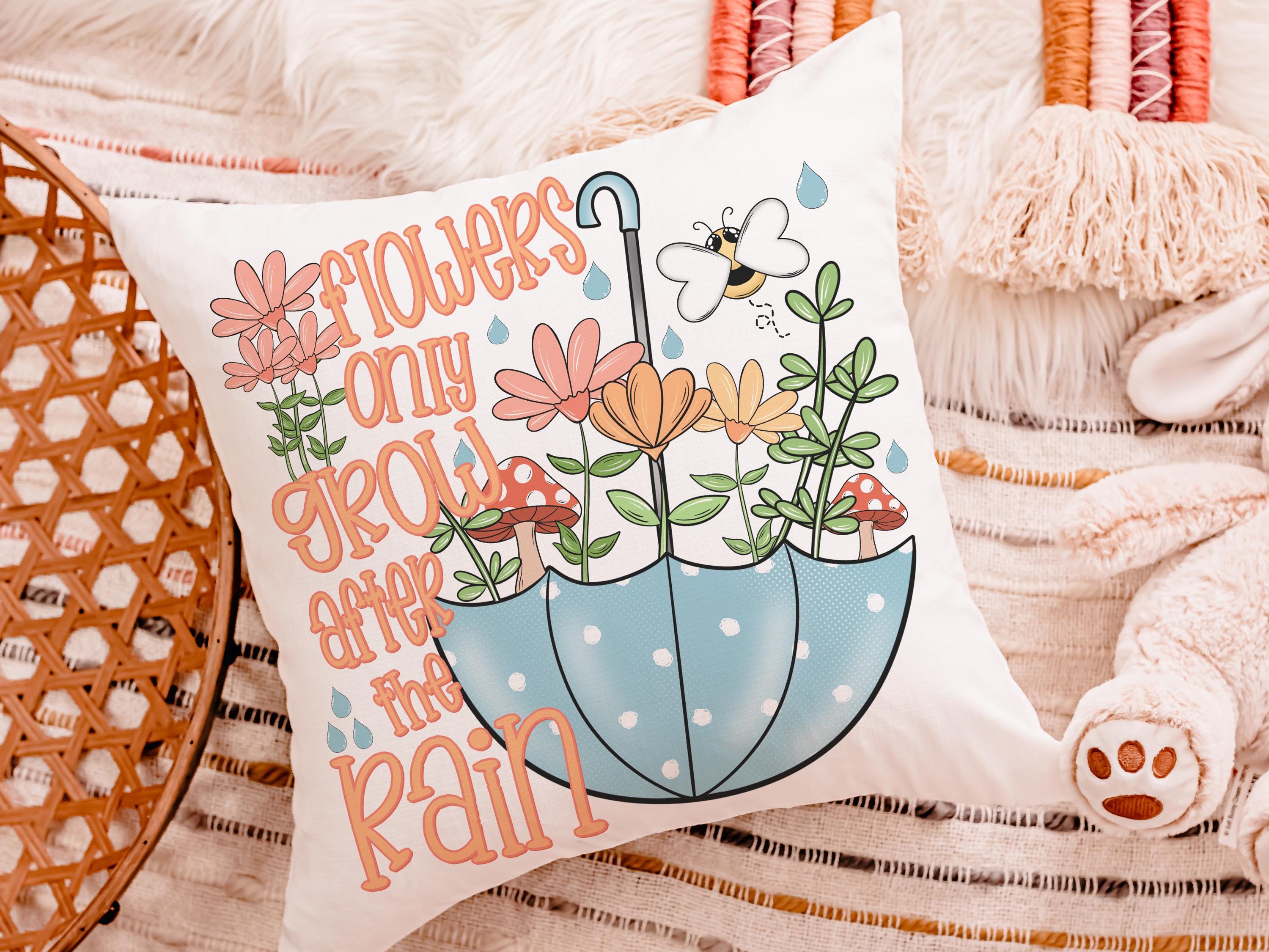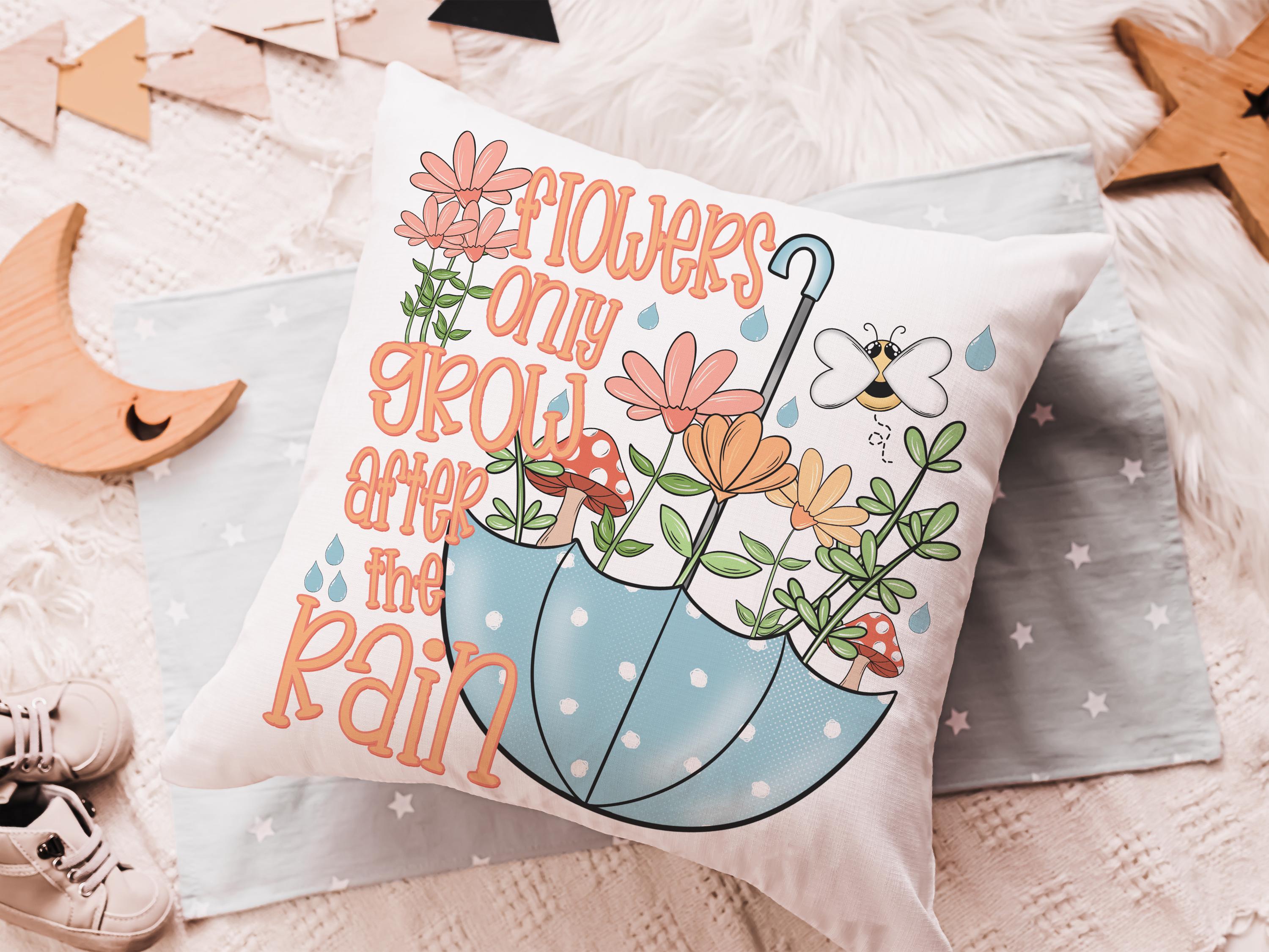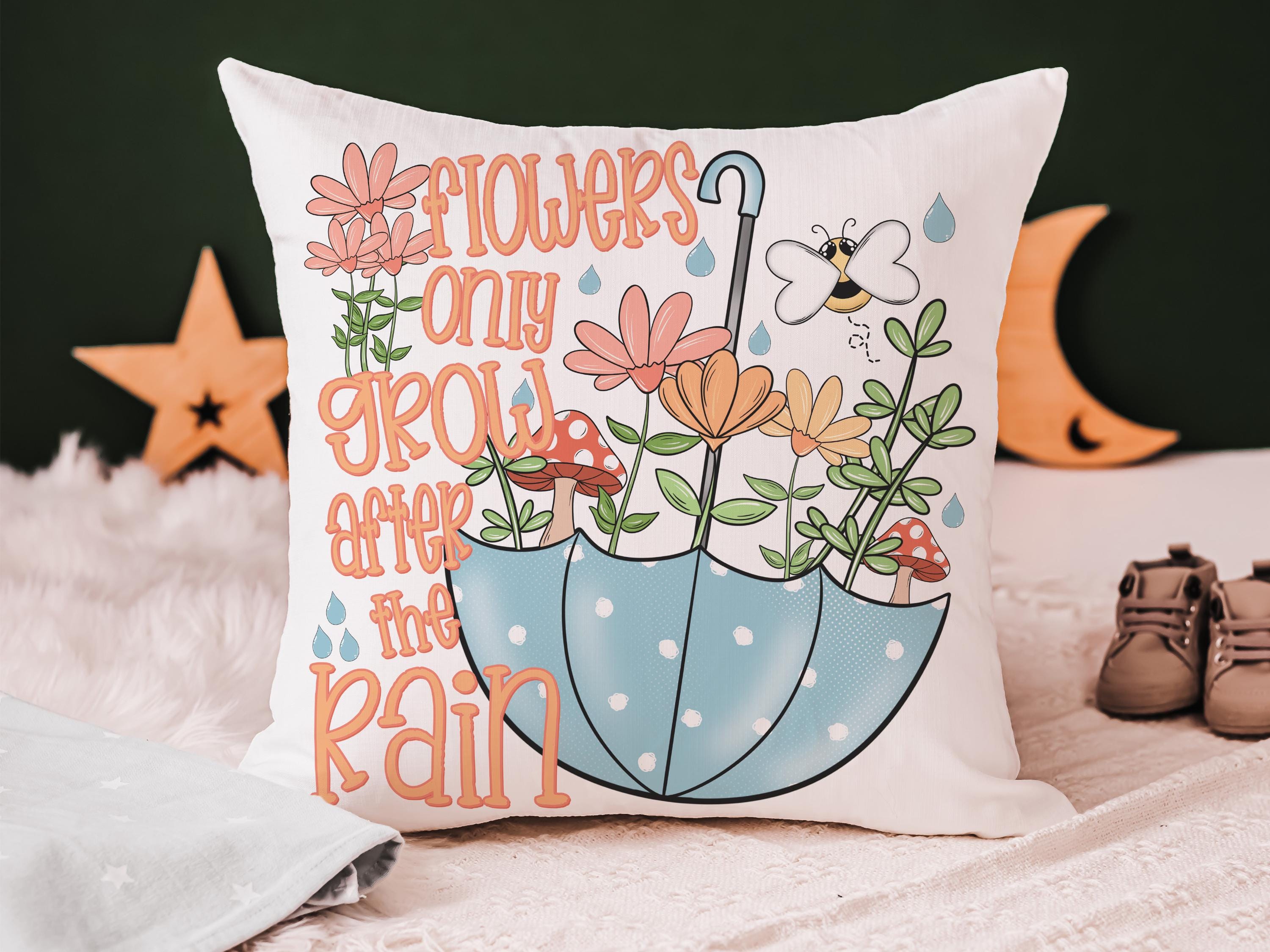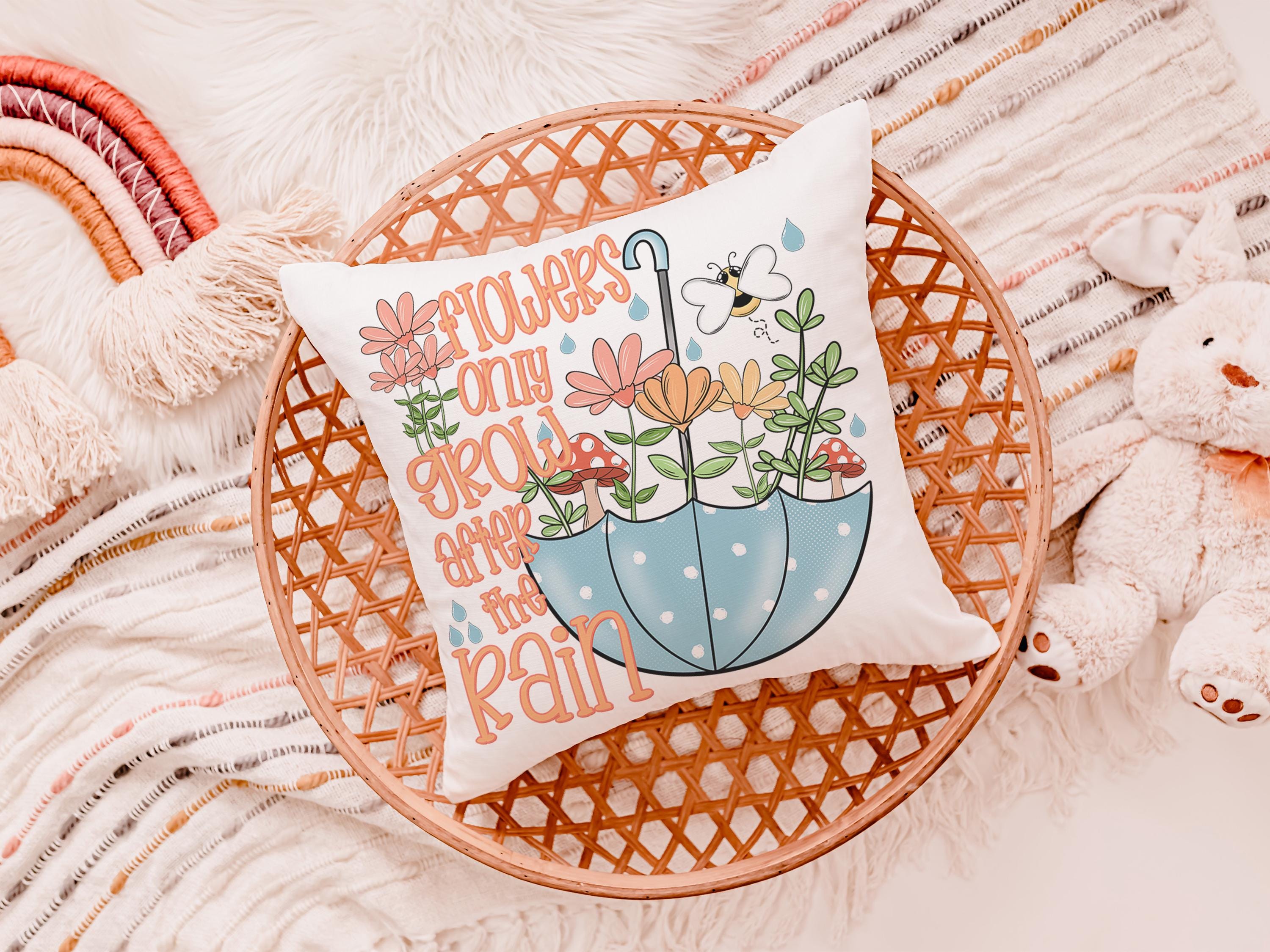 after the rain inspirational decorative pillows for girls, reading nook decor, floral throw pillow covers 18 x 18, wildflower nursery decor