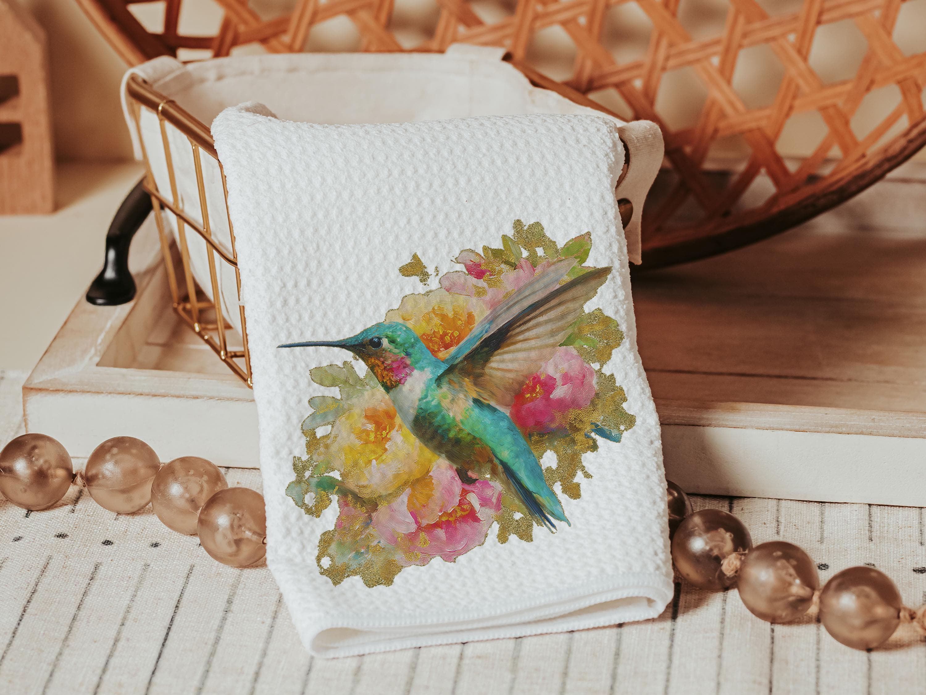 A watercolor hummingbird and cottage rose design bring charm to dorm rooms, kitchens, or powder rooms. This matching pillow and towel set makes a thoughtful gift for friends, college apartment decor, or a sweet surprise for women who love nature-inspired touches. Items available individually or as a set.
