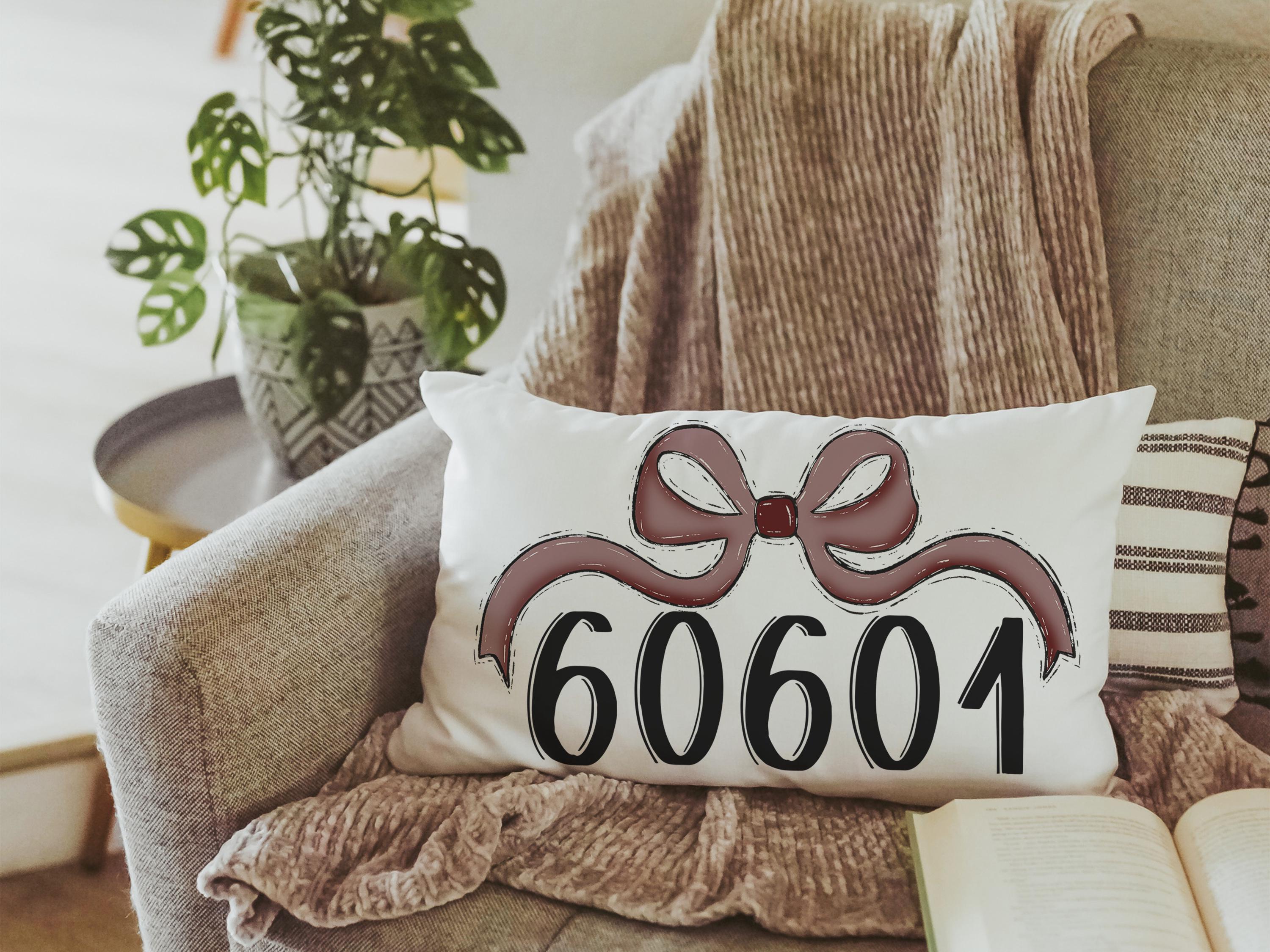 A maroon coquette bow and custom zip code add a personalized touch to this team spirit throw pillow—perfect for dorm beds or college apartment decor. A thoughtful gift for best friends or girls heading off to school, combining comfort with school pride.