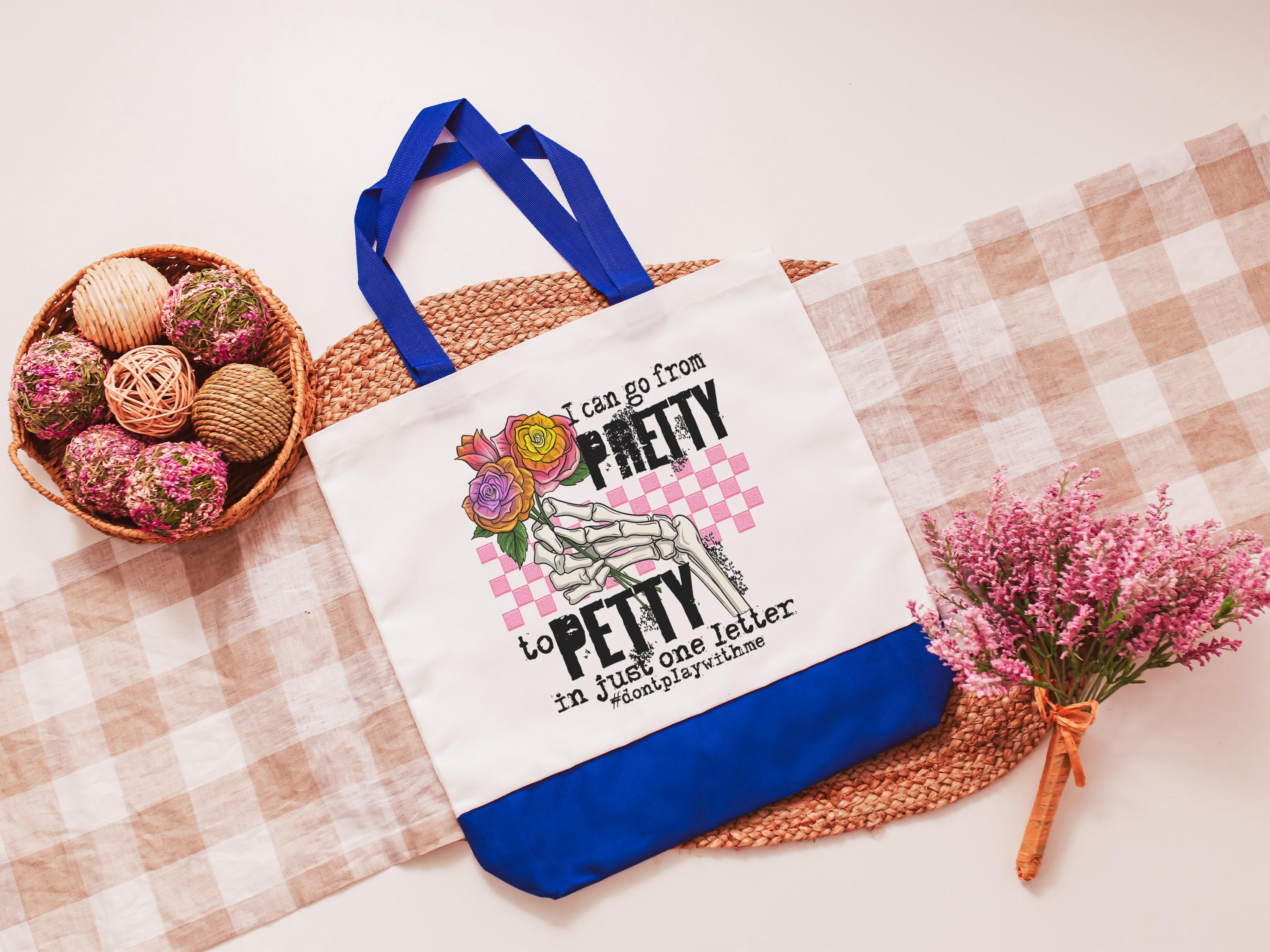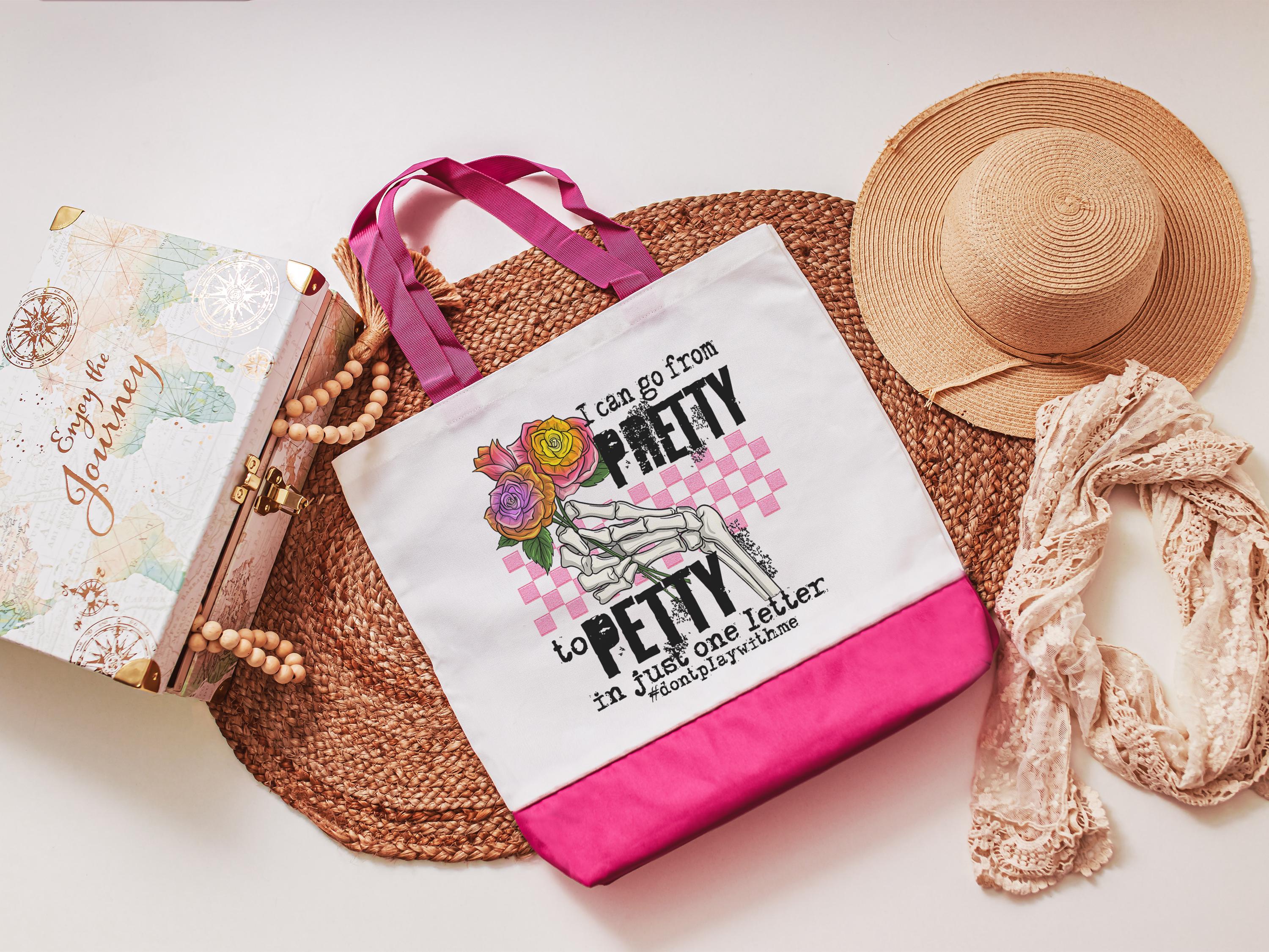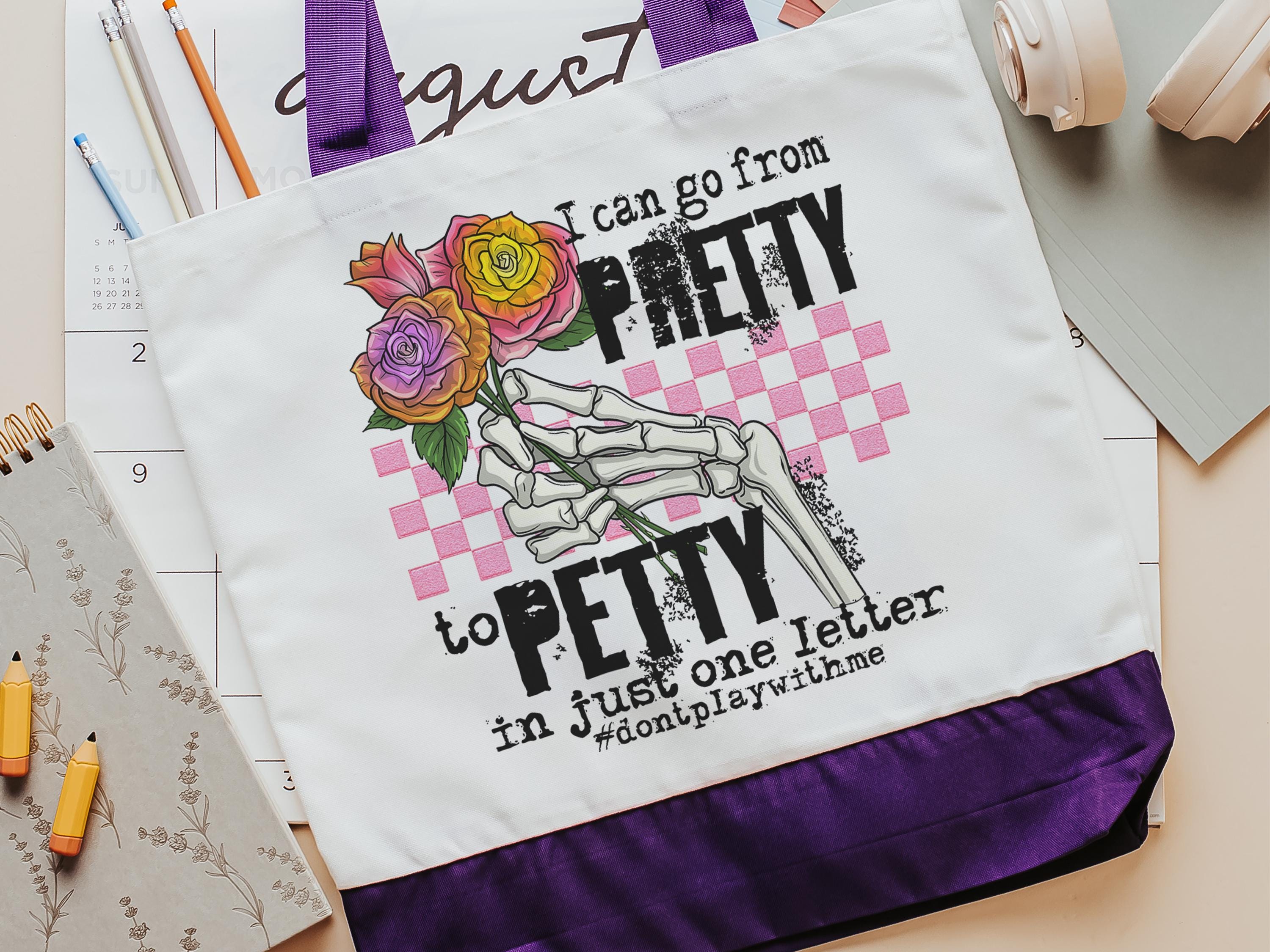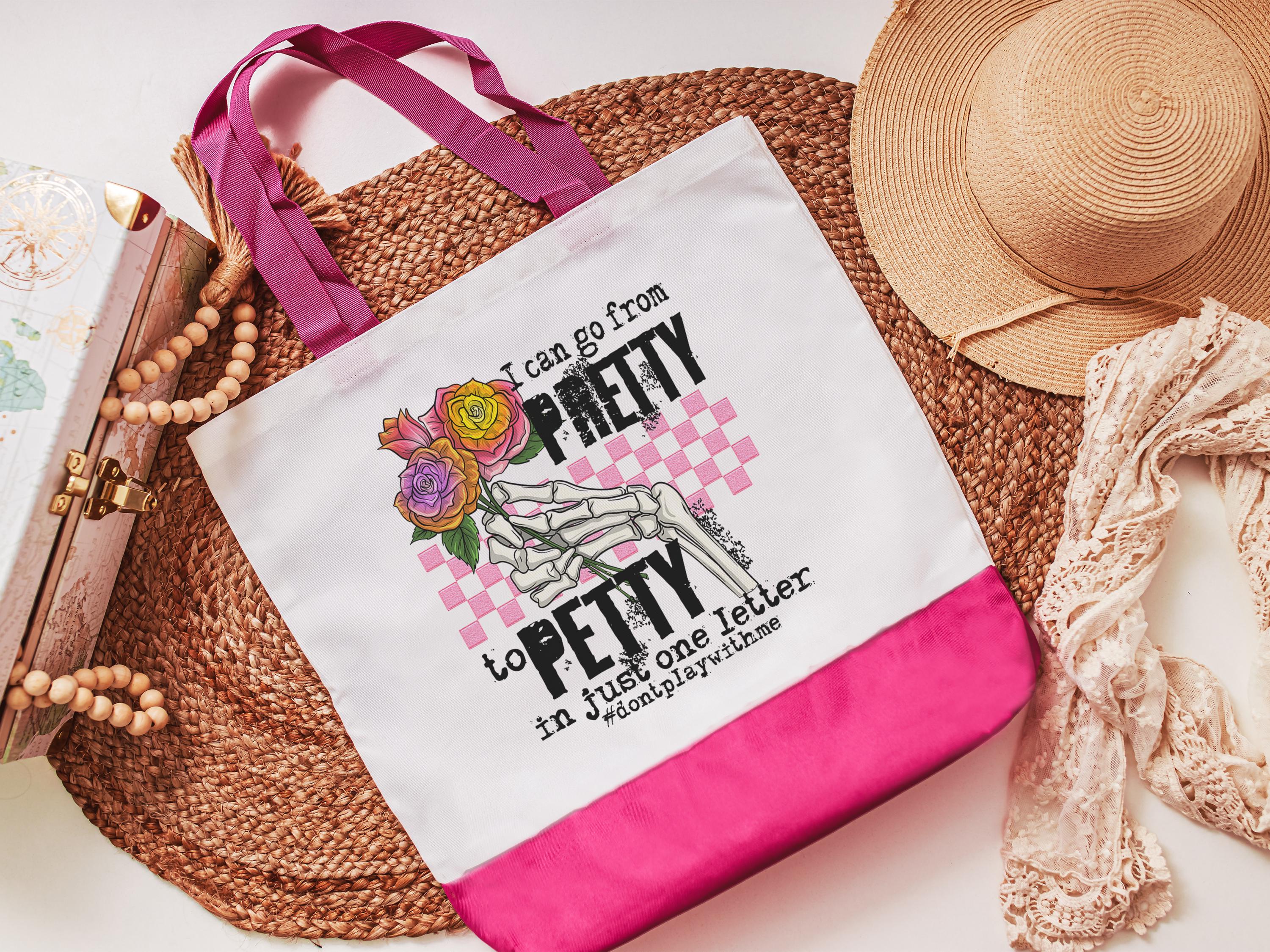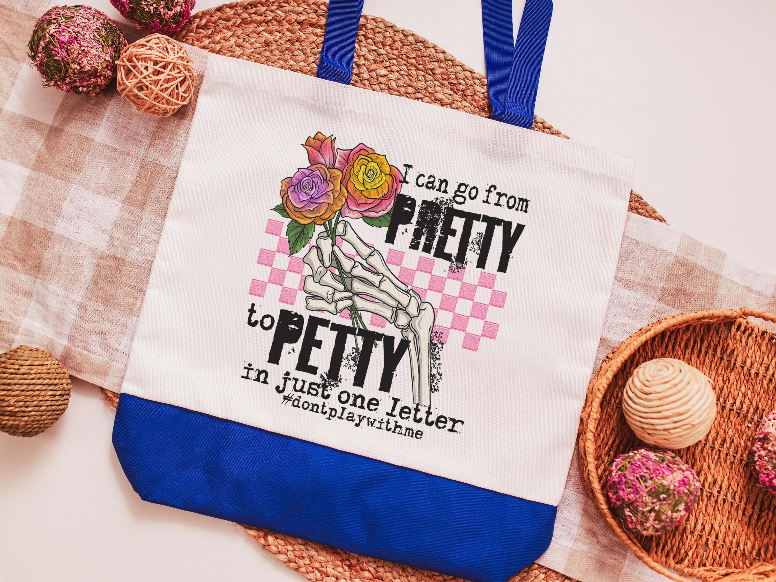 pretty to petty funny tote bag unique gifts for sisters, don't play with me sarcastic gifts for coworkers, trendy tote bags for women, best