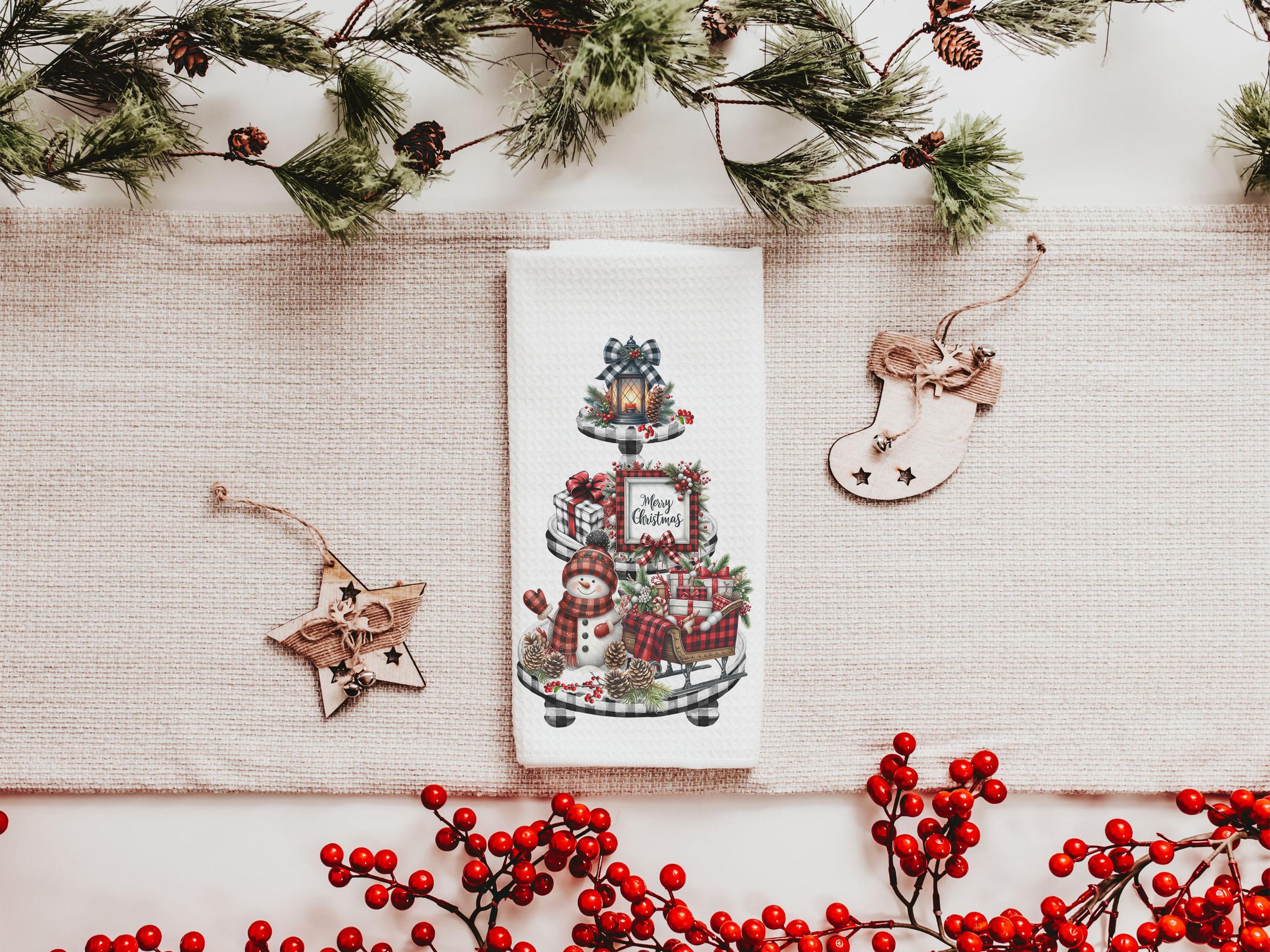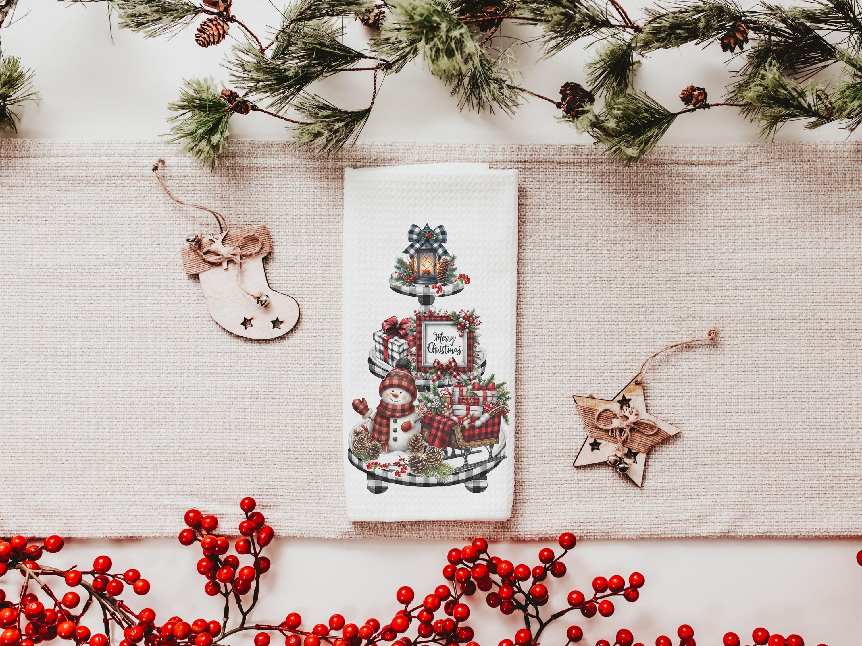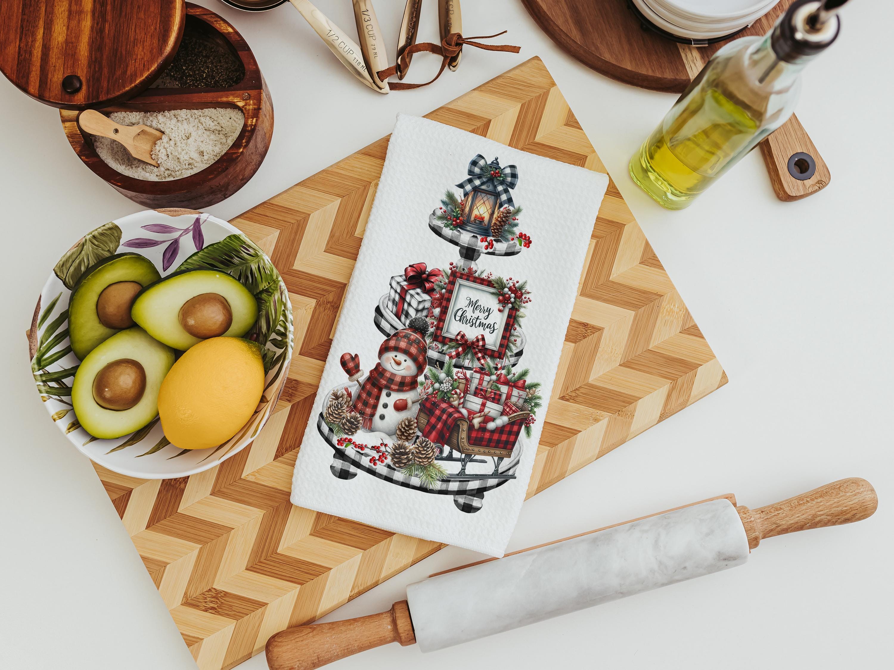 Add a fun touch to your kitchen with a snowman Christmas towel featuring a classic buffalo plaid design. Perfect for rustic holiday decorating, it makes a sweet Christmas gift or a thoughtful seasonal surprise for coworkers.